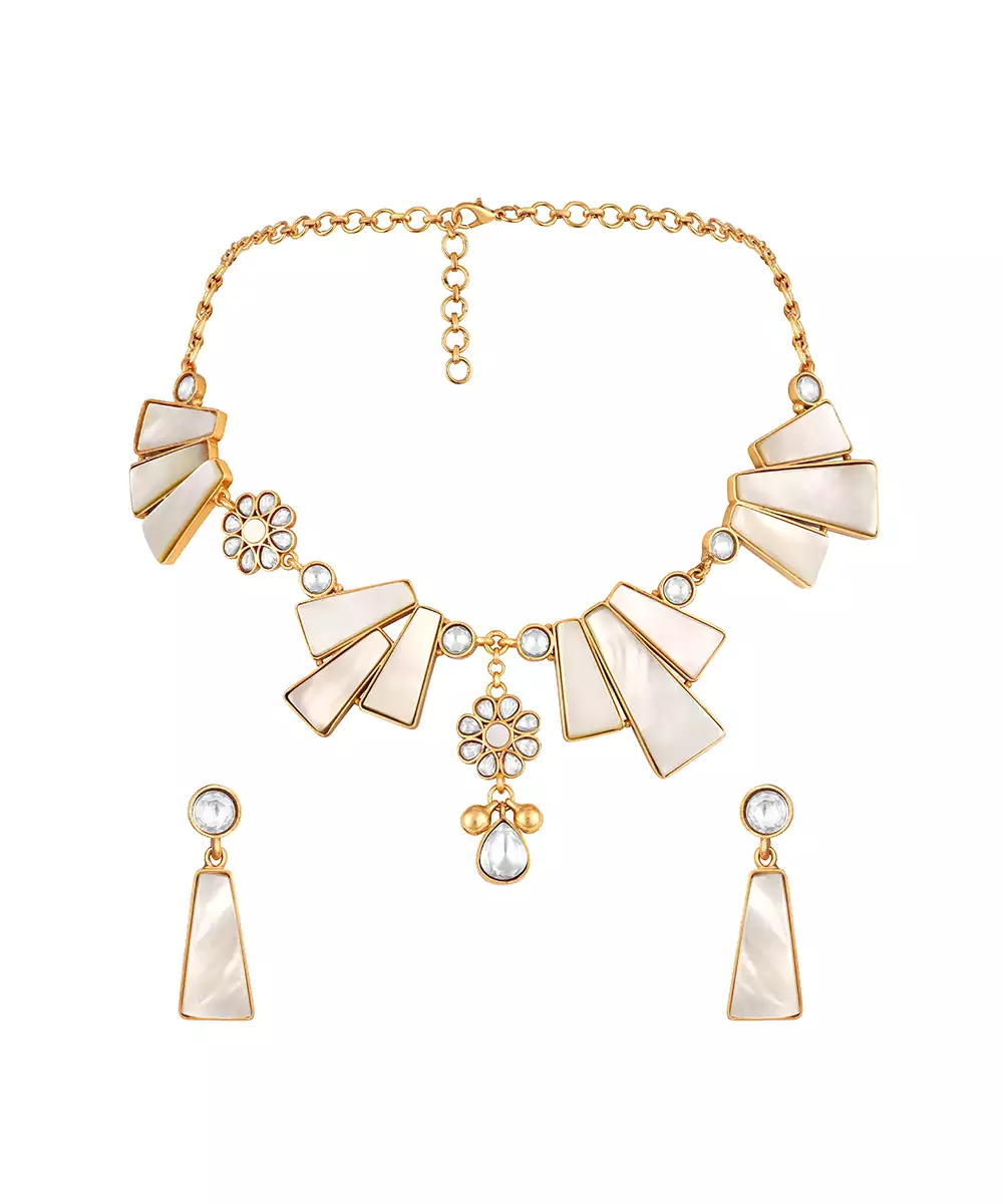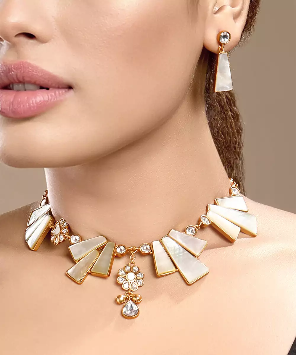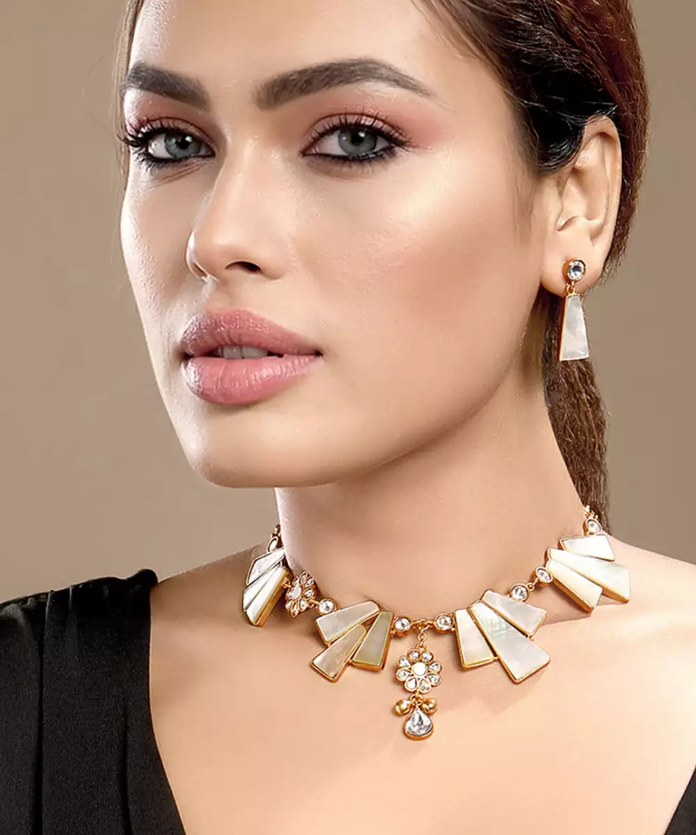 Enhance Your Traditional Look With This Gold Plated Kundan White Stones Necklace. Crafted With Intricate Detailing, It Features Striking White Stones Set In Classic Kundan Artistry. Perfect For Festive Occasions, Weddings, Or Evening Events, This Elegant Necklace Adds A Touch Of Royal Charm And Timeless Sophistication.