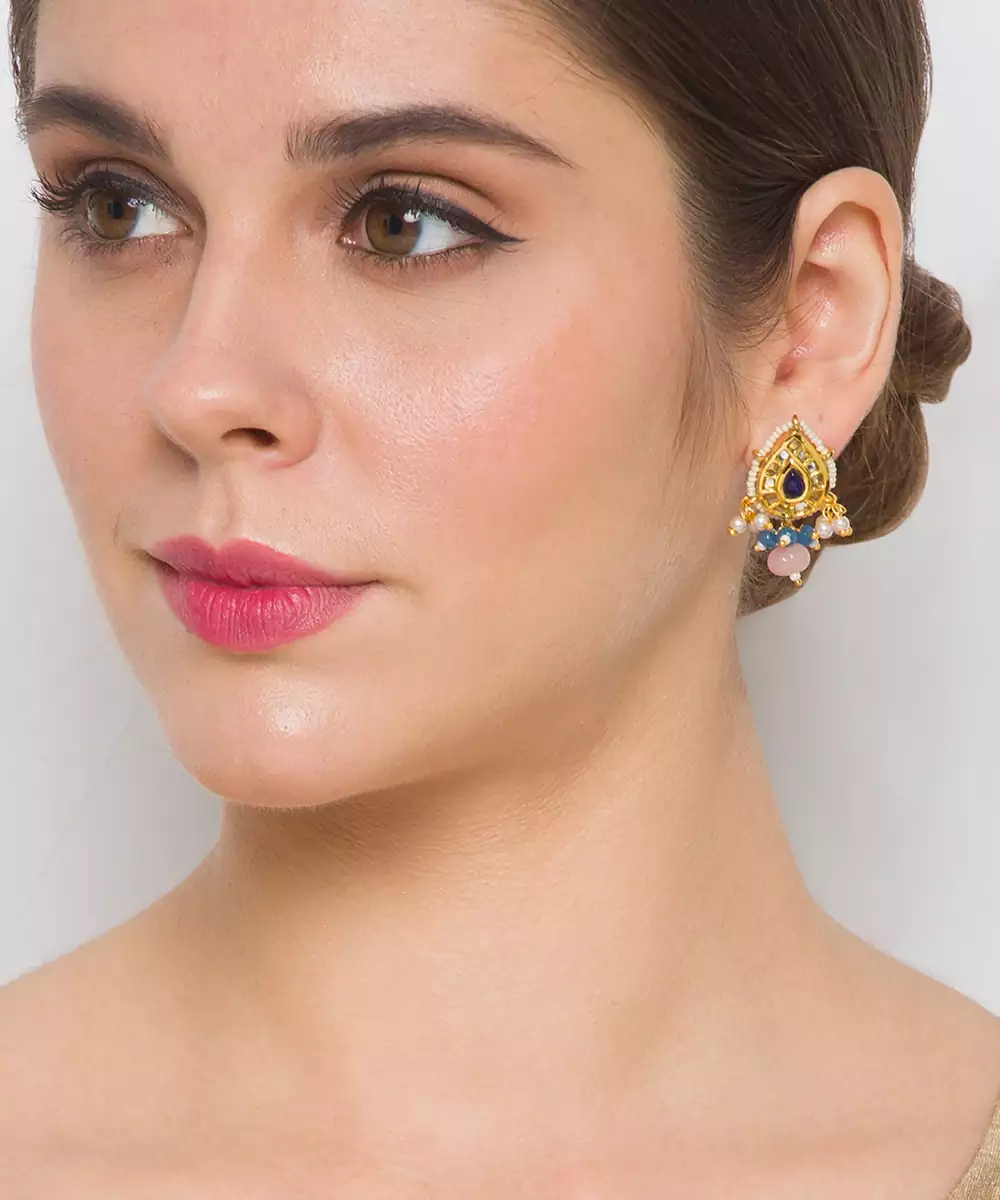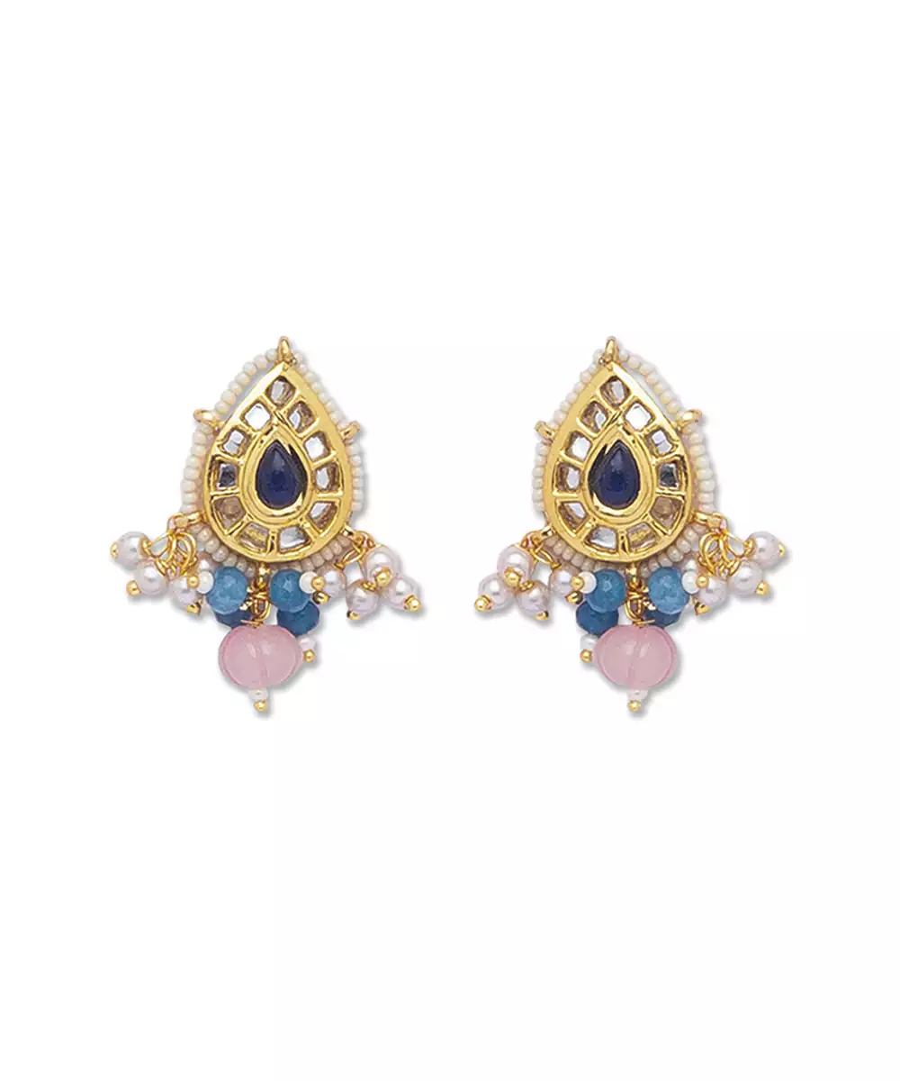 Golden Blue Brass Earrings