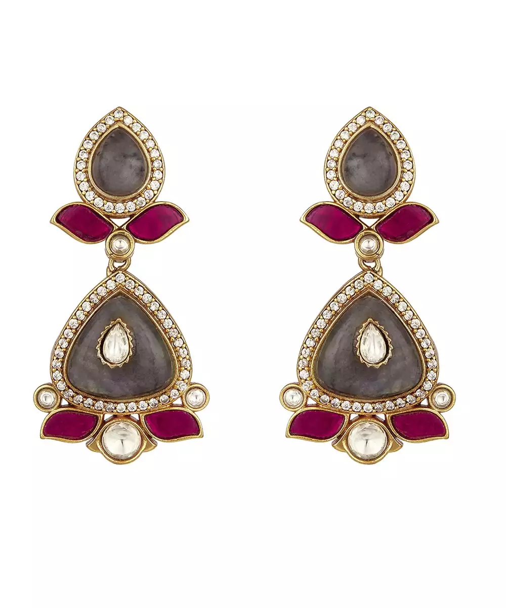 Micron Gold Polish Brass, Mosanite Kundan Polki, Synthetic Ruby ,Natural Moonstone, Zirconia, Natural Stone Have Little Variations In Shape, Shade And Can Differ From The Actual Image On Website