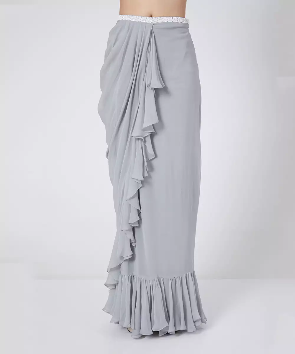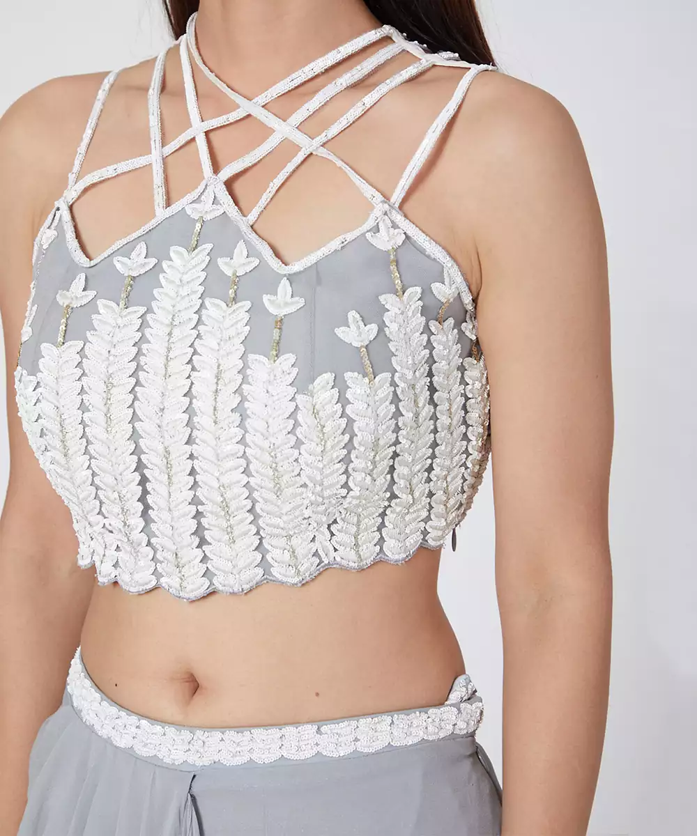 Ruffle Detailed Skirt And Embroidered Criss Cross Crop Top