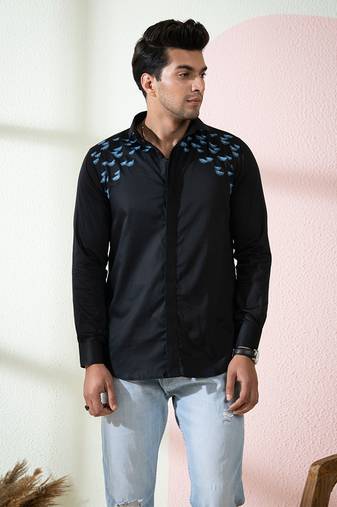Multi Panel Round Neck Shirt With Stitch Line Detailing Colour : Black Fabric : Cotton Satin Components : 1 Shirt Work : Embroidered