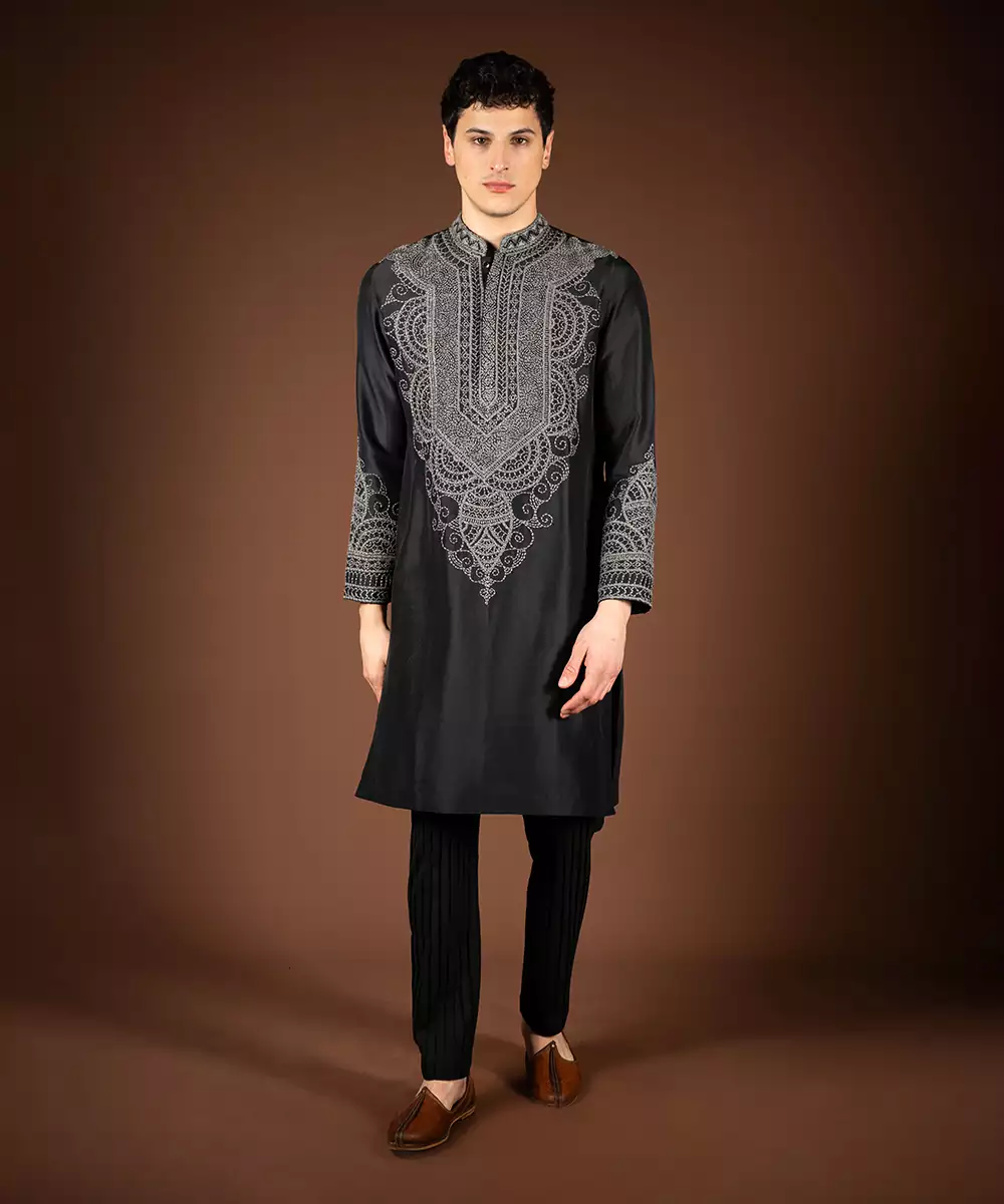 Hand Embroidered Thread Work Kurta Colour : Black Fabric : Silk Components : 1 Kurta Work : Embroidered