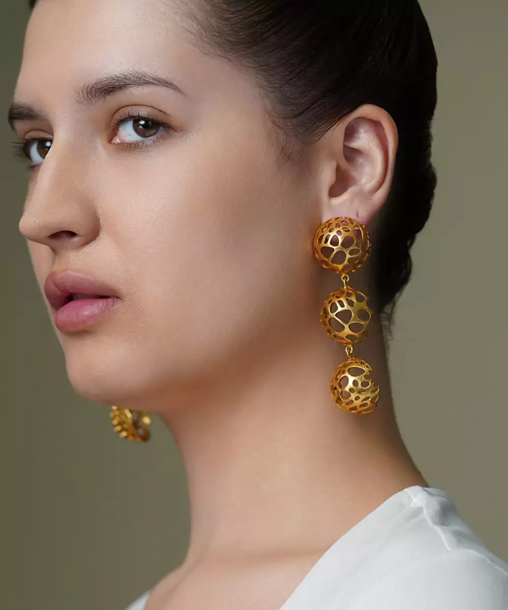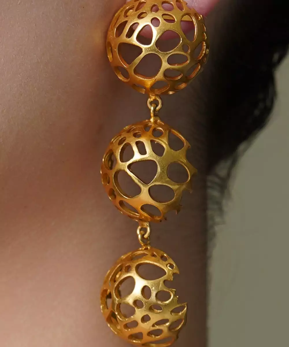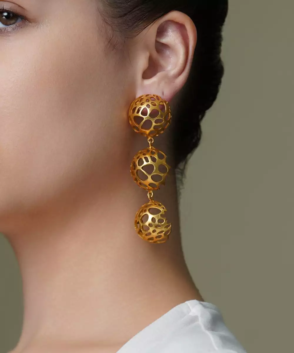Shine Bright With Golden Hive Dangler Earrings. Bold And Stylish Dangler Earrings Are Are Perfect For Adding Golden Elegance To Both Casual And Festive Looks.