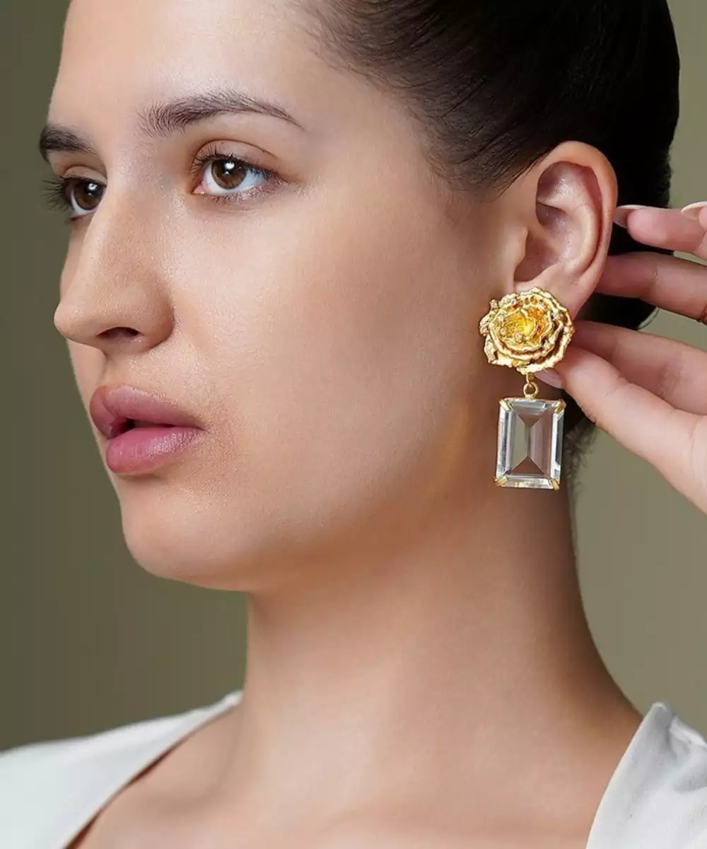 Levitate Your Style With Our Stunning Luxe Rose Drop Earrings, Handcrafted By Our Fine Artisans To Embrace The Timeless Beauty. A Minimal Lightweight That Adds A Touch Of Sophistication