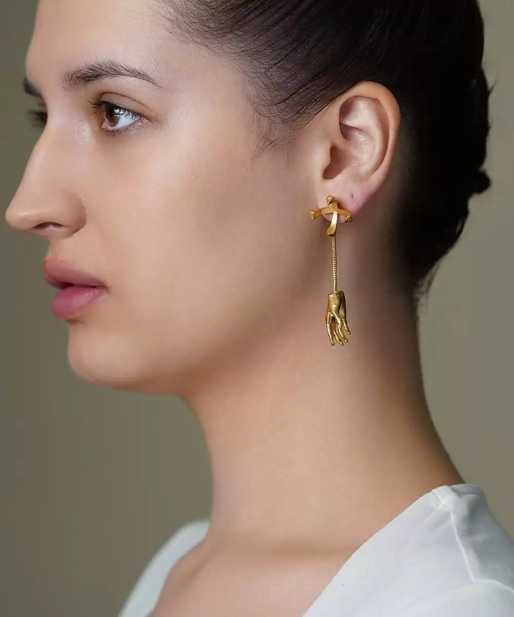 The Natural Design Of A Gold Toned Metal Elora Leaf Drop Earrings Embraces Femininity. Perfect For A Casual Outing And Regular Wear.