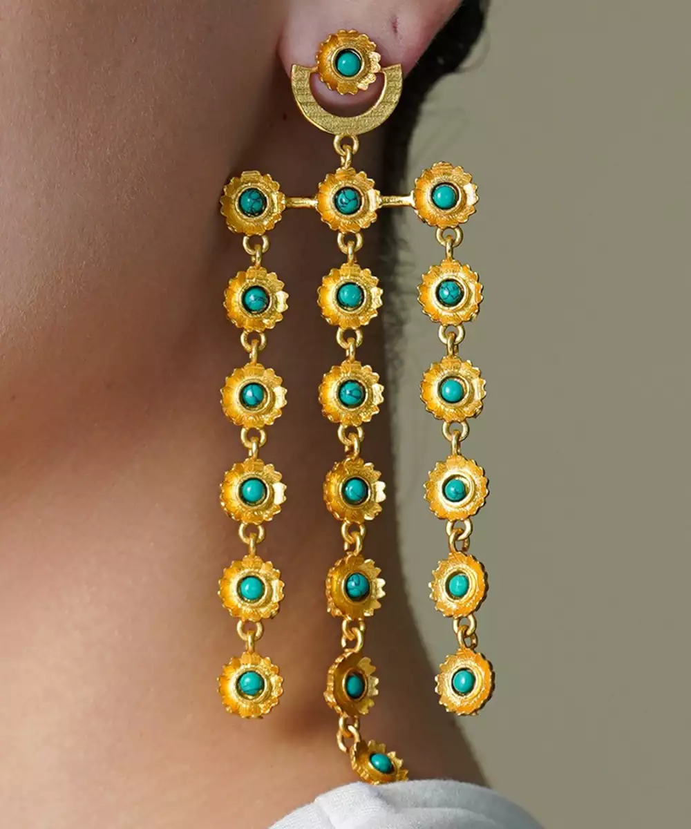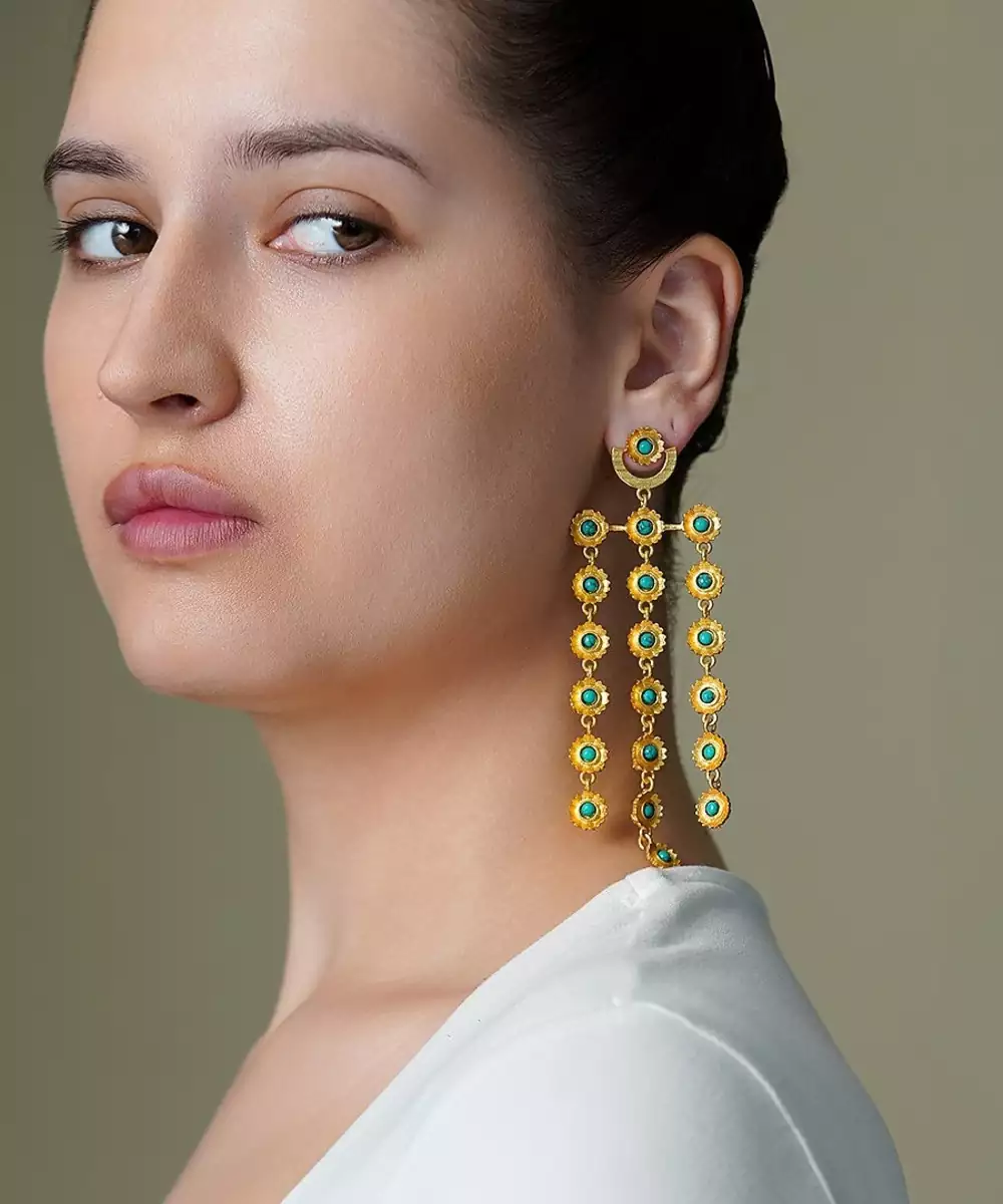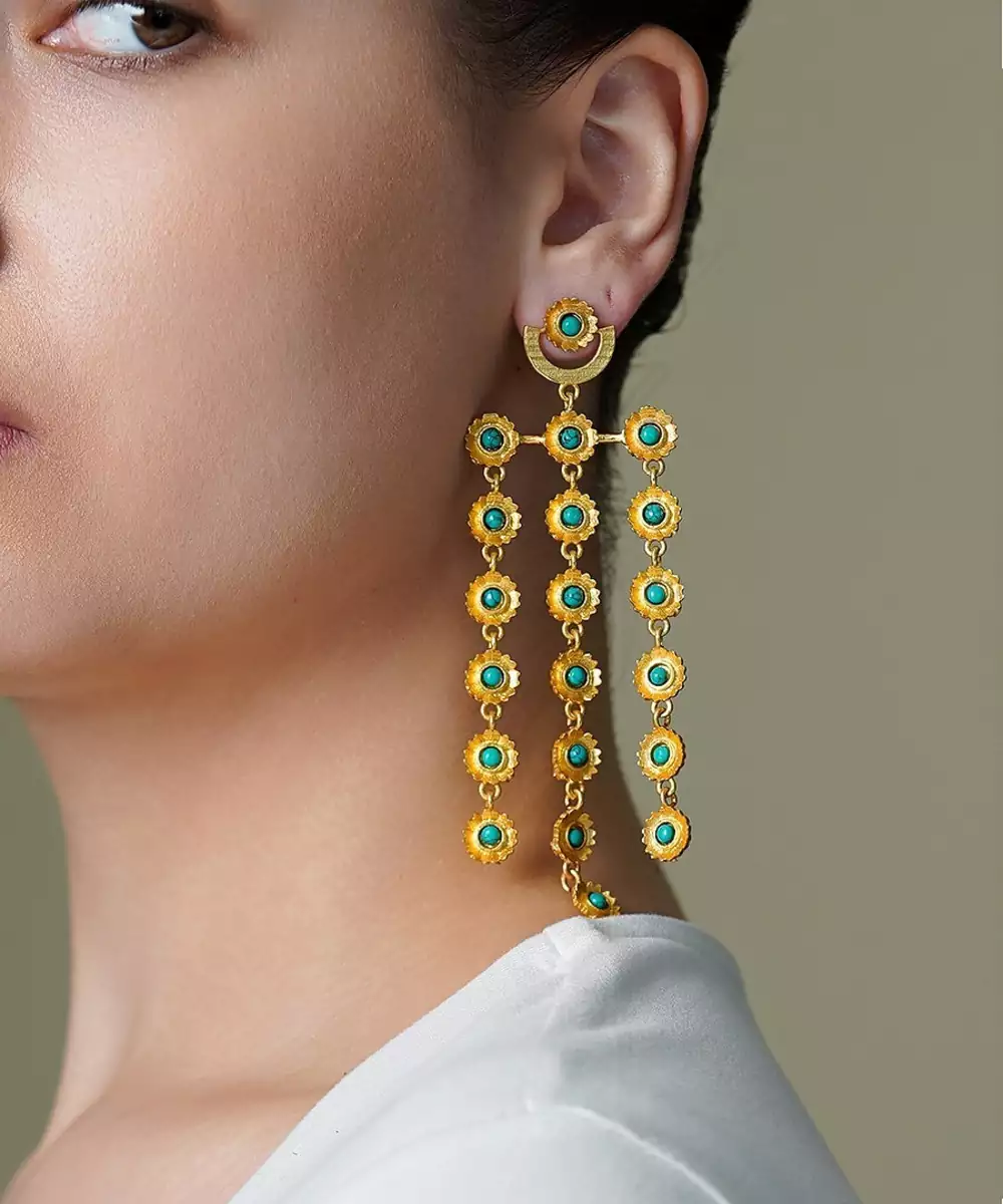 Dazzle Effortlessly With Zyrune Chandeliers Earrings With Joules By Radhika. Luxurious Chandelier Earrings Are Crafted To Bring Dramatic Sparkle And Timeless Elegance To Your Festive And Evening Attire.