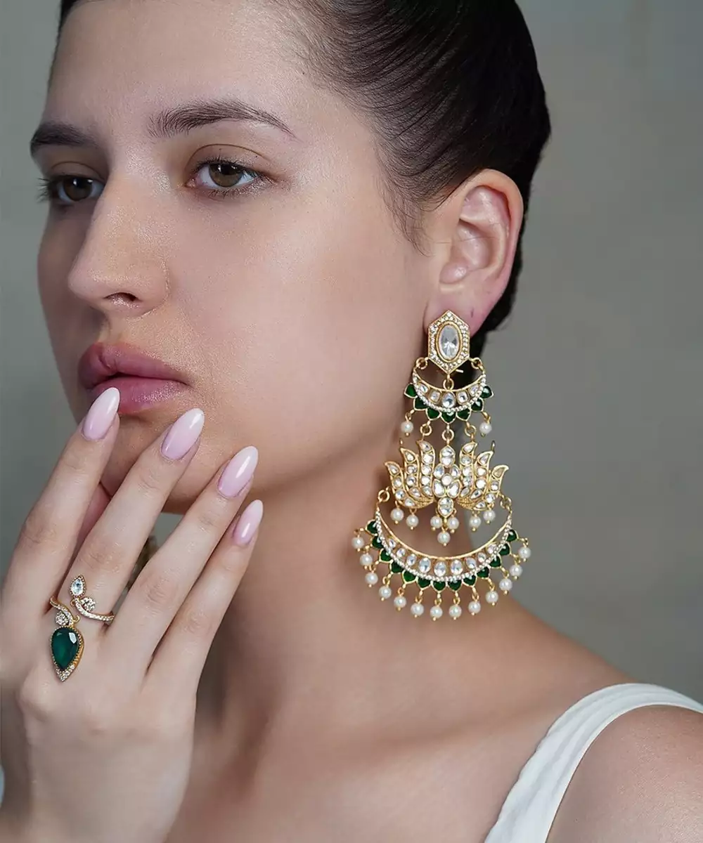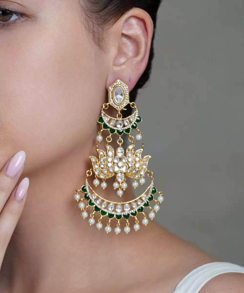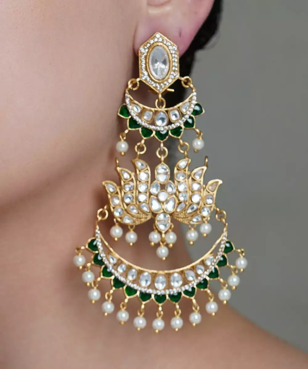 Chandbali Pearl Cascade Earrings Are Pearl Drops Which Are Layered With A Delicate Design, Combining Tradition With Elegance. These Chandbali Earrings Are Perfect For Weddings, Festivals, And Adding A Royal Touch To Ethnic Wear.