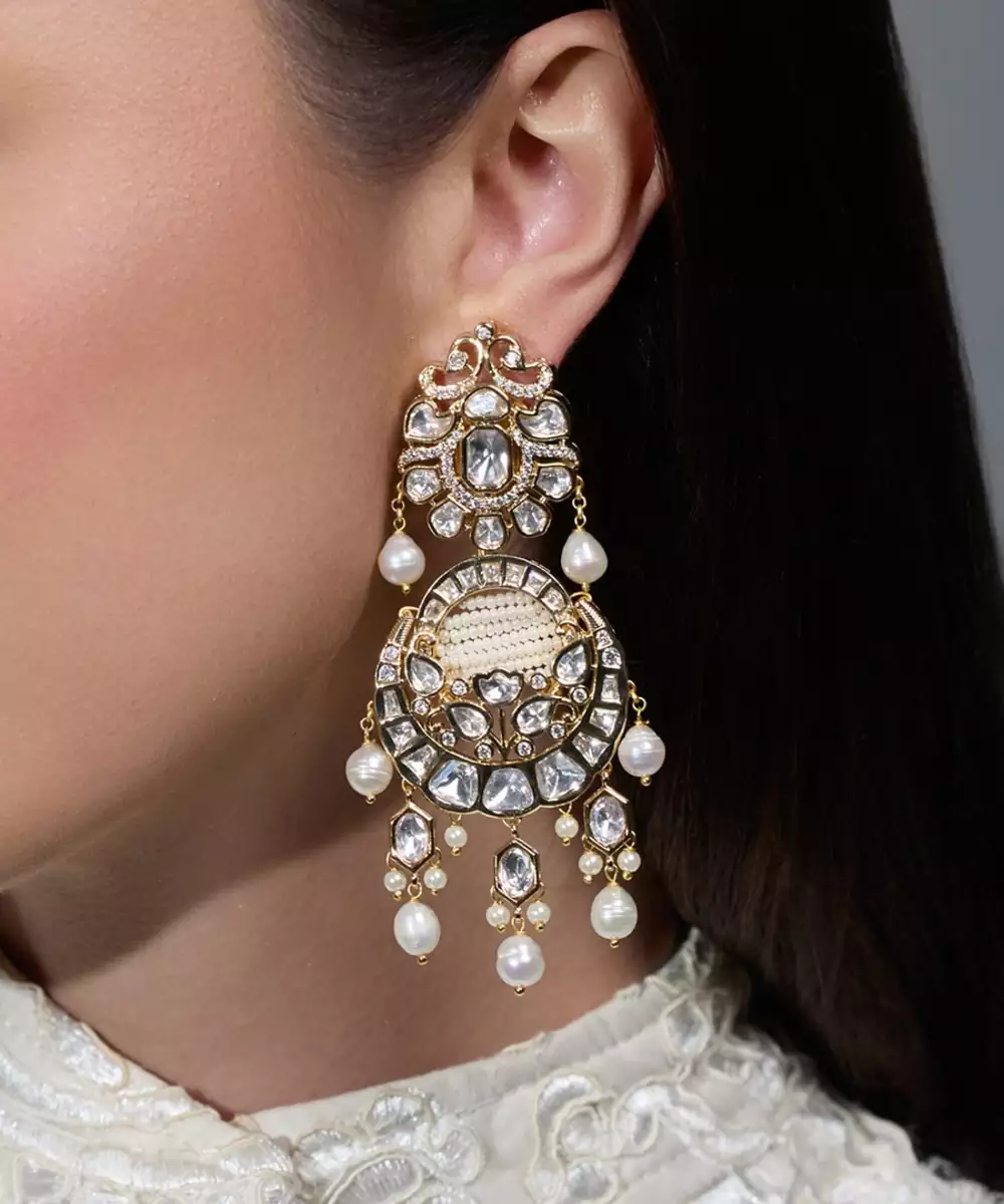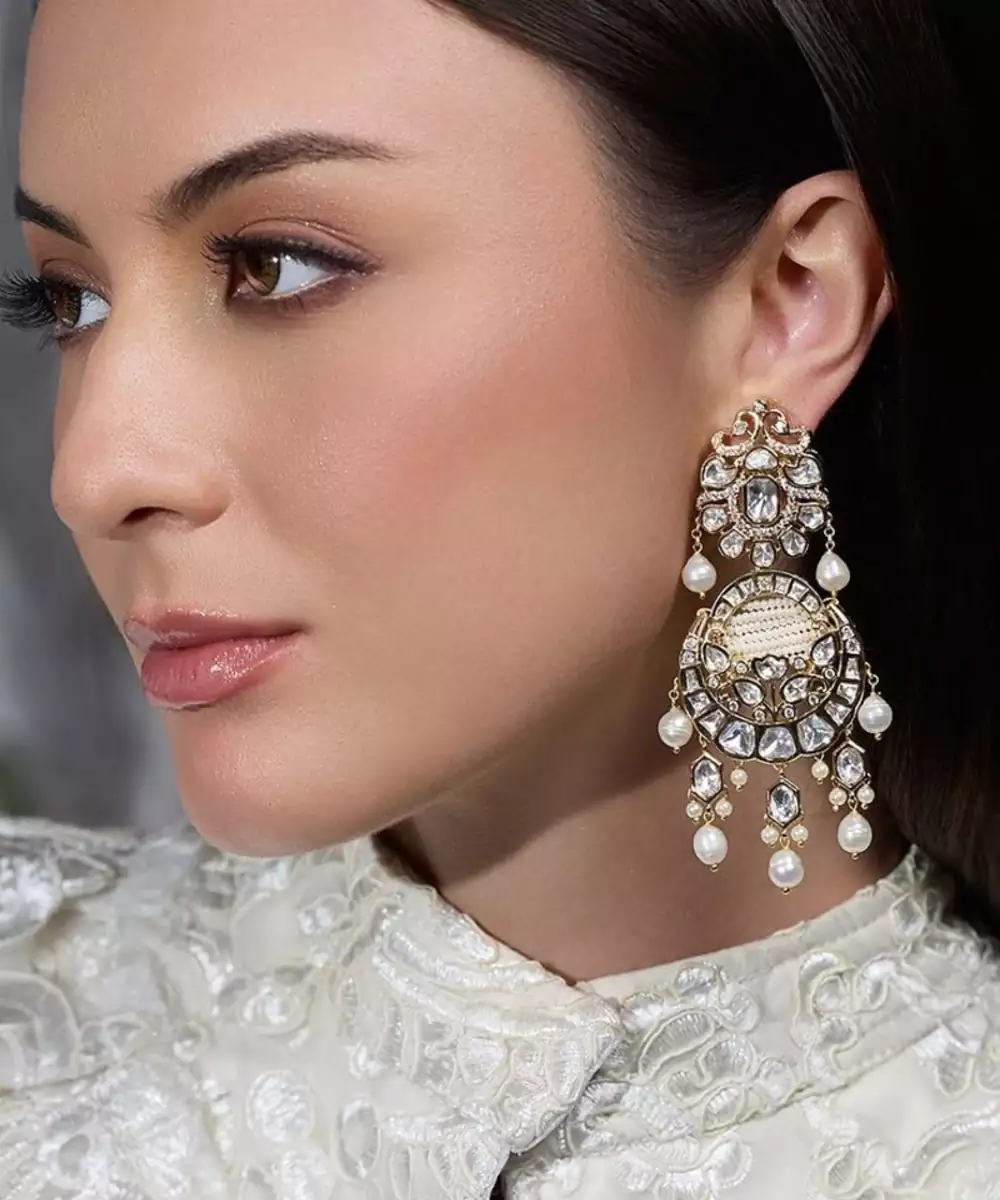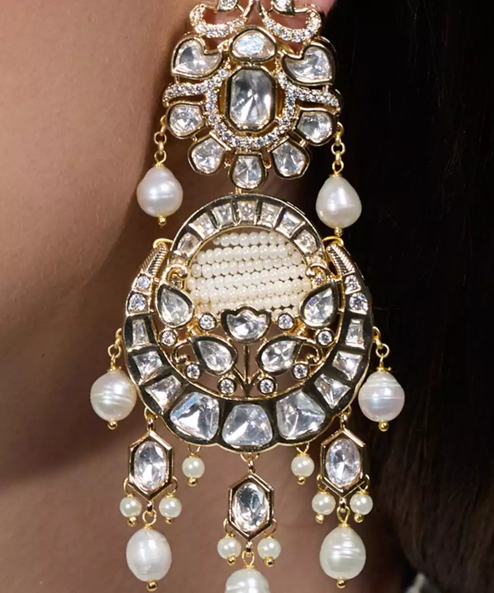 Stunning Pearl Kundan Circular Drop Earrings Offering Timeless Elegance For Weddings, Festivities, And Traditional Celebrations.