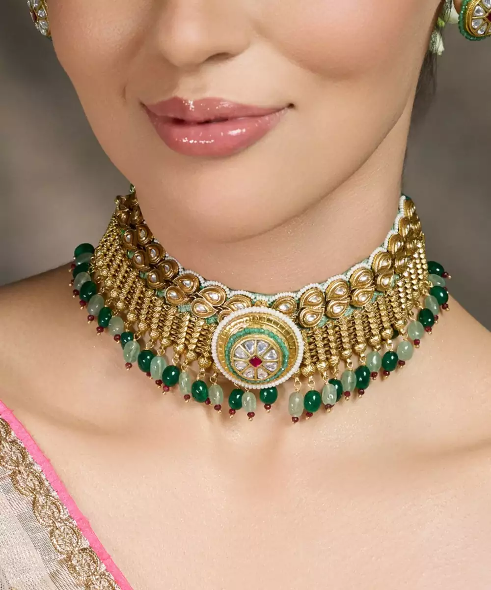 Add A Royal Charm To Your Look With The Graceaura Antique Choker, Featuring Intricate Detailing, Antique Finish, And Traditional Elegance — Perfect For Weddings, Festivals, And Grand Celebrations.