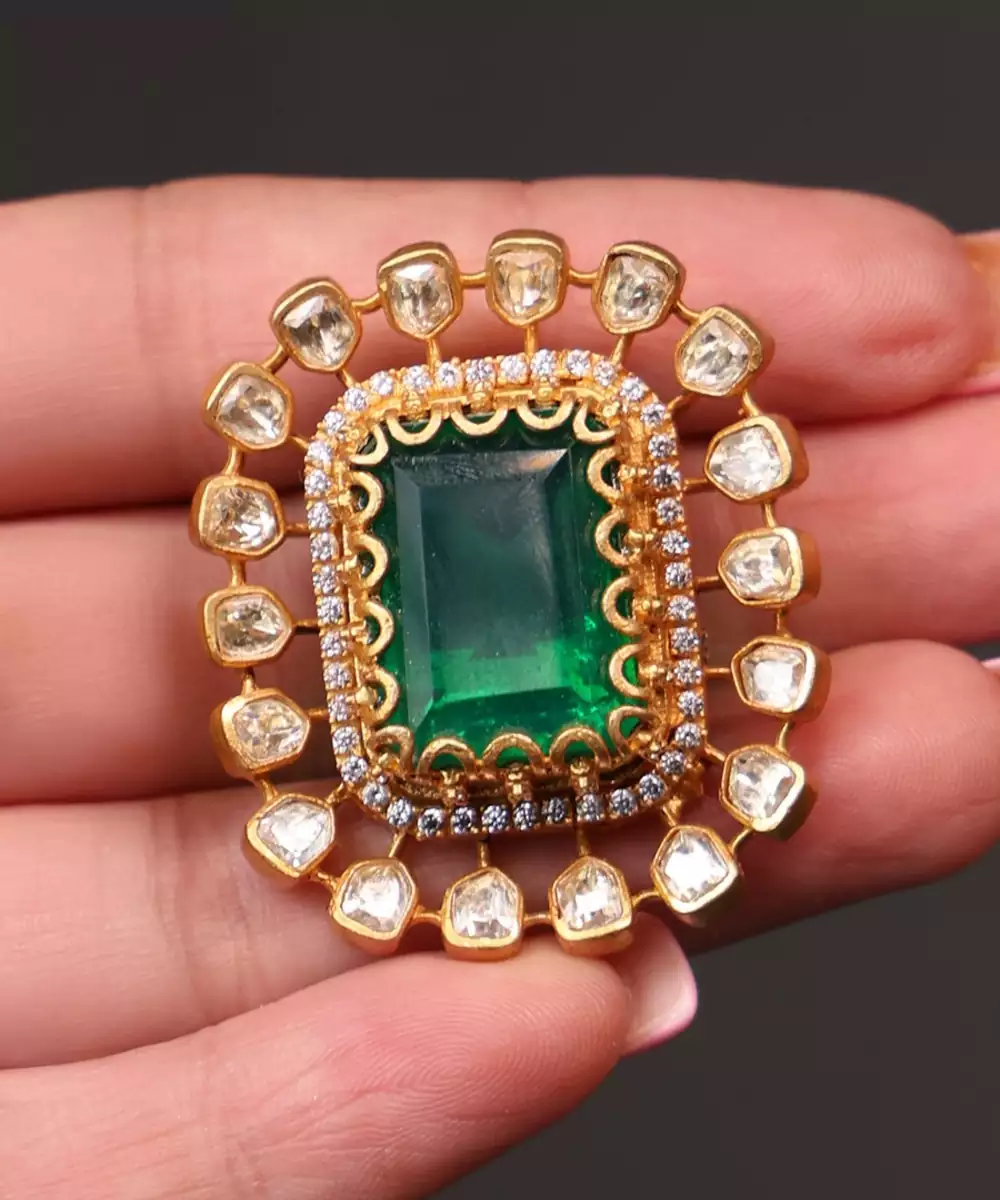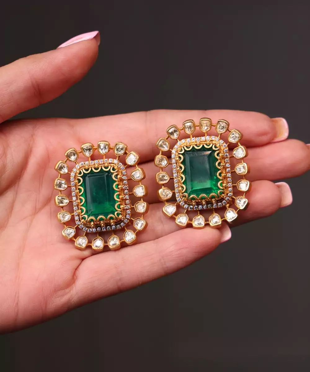 The Stud Earring Is Made With Radiant Green Gemstone Framed With Sparkling Crystals. These Enchanted Emerald Royale Stud Earrings Bring A Royal Look. Perfect For Festive Events Or Elegant Gatherings, They Represents Timeless Charm With A Luxurious Glow.