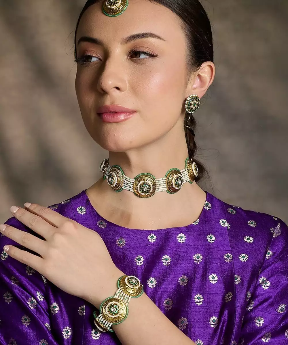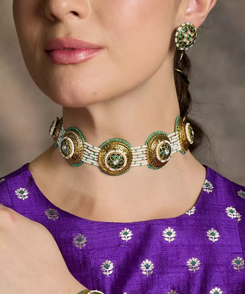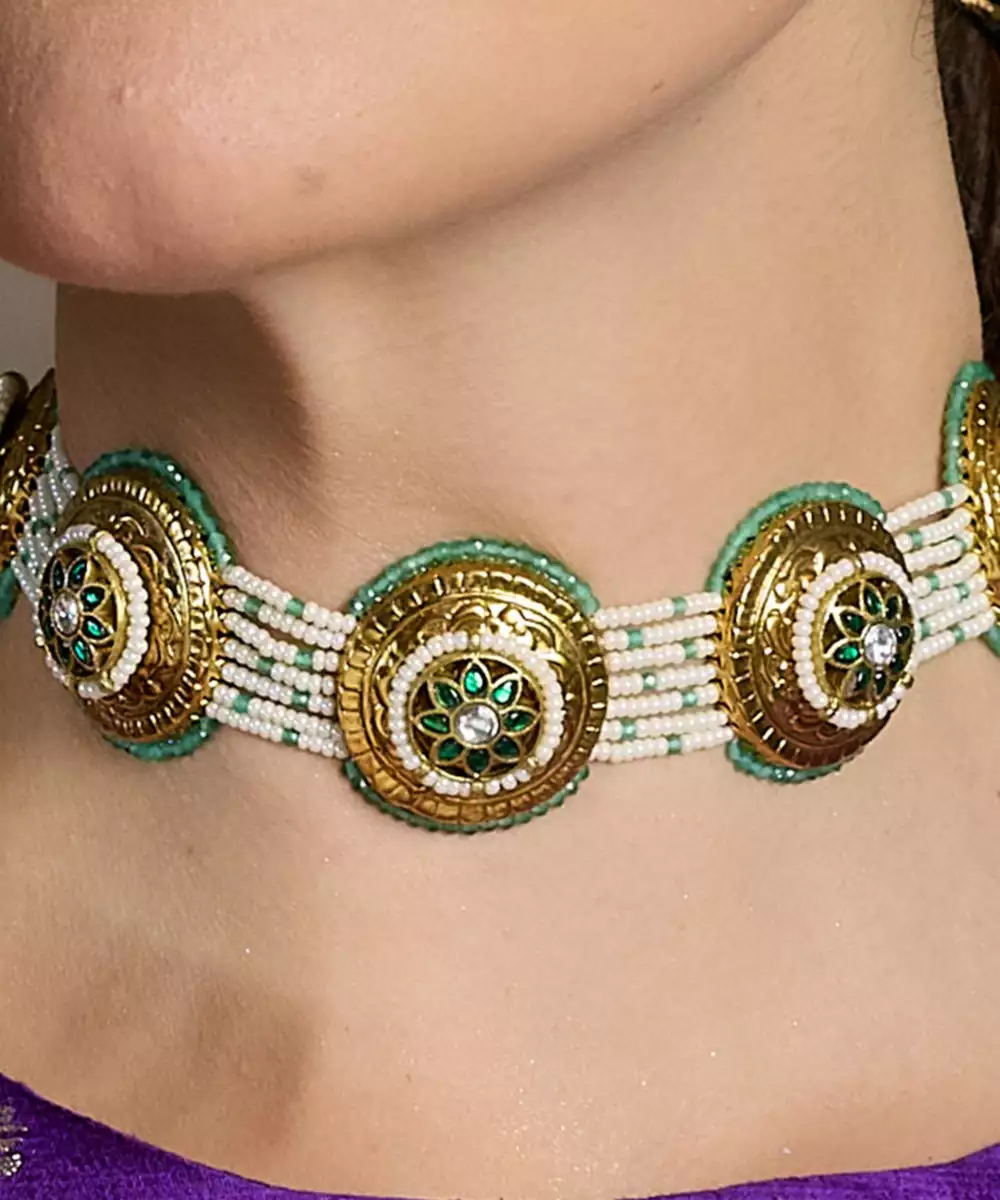 Adorn Yourself With Elegance In This Handcrafted Floral Necklace, Featuring Golden Detailing And Sparkling Accents. Perfect For Festive Wear Or Special Occasions, It Radiates Charm And Timeless Tradition.