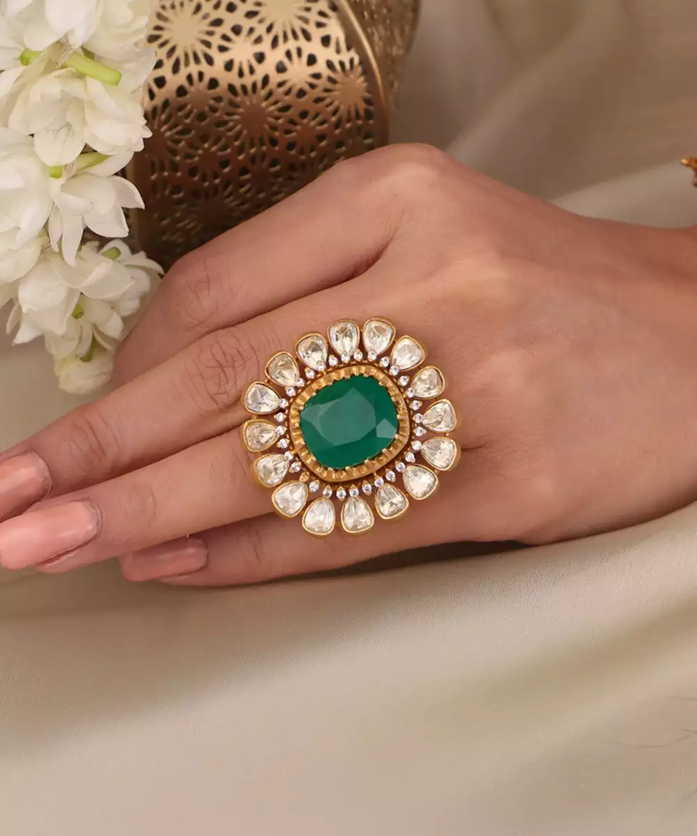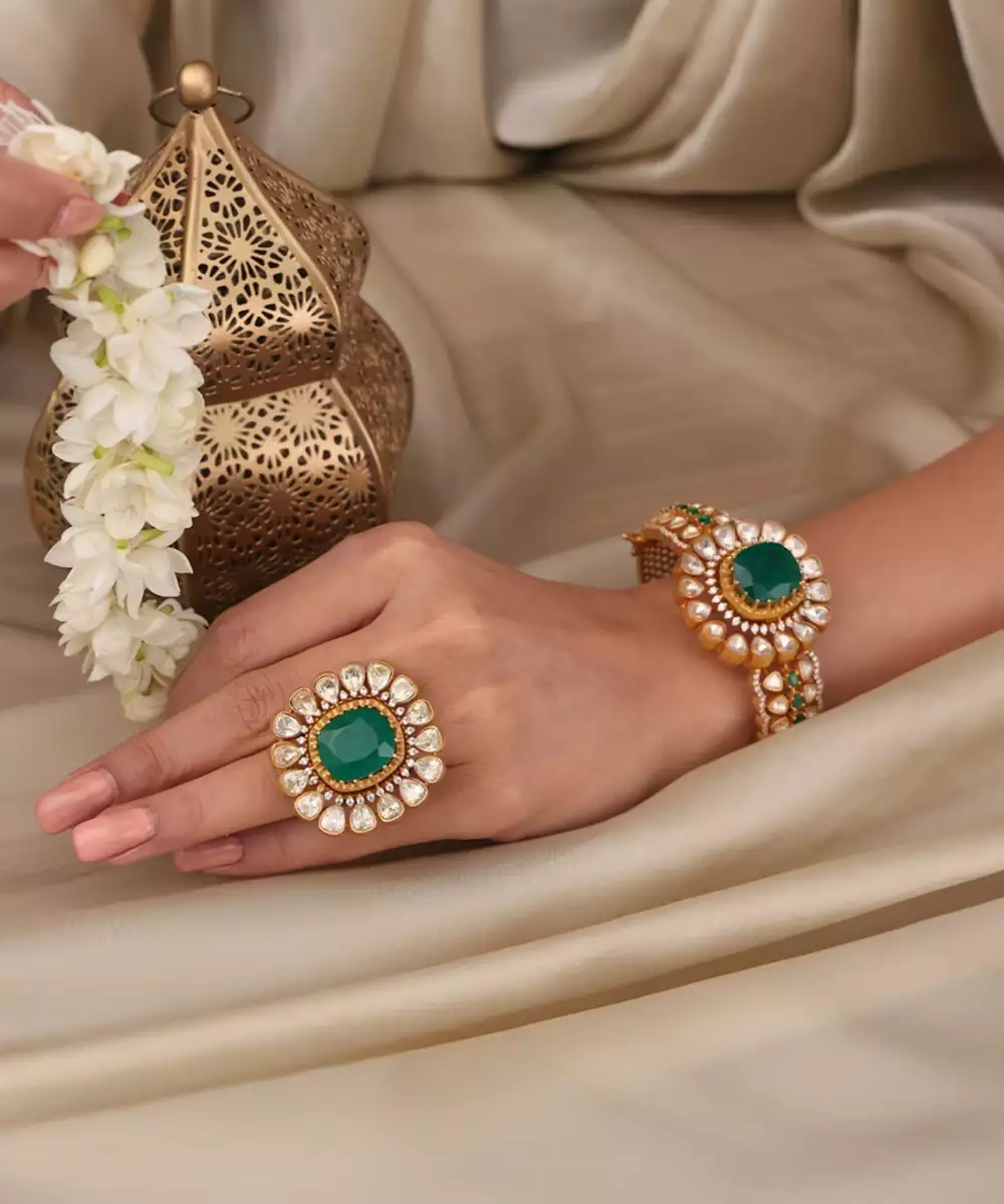 Add A Hint Of Charm To Your Style With Emerald Bloom Kundan. Designed With Care Using Gold Plated Premium Alloy That Refines Your Look. Wear It With Sarees, And Ethnic Wear To Elevate Your Look.