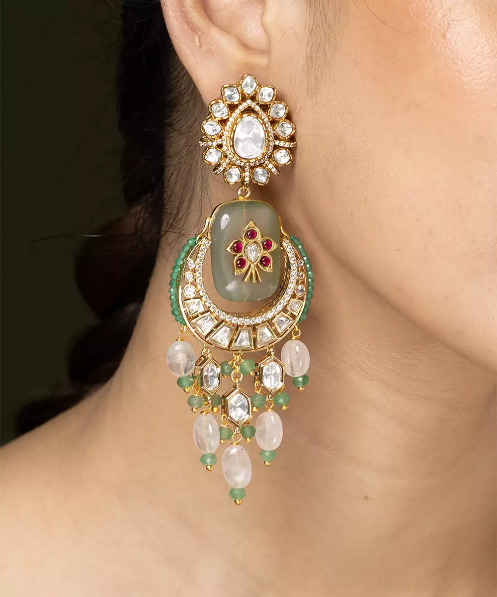 The Earrings Are An Opulent And Colour Rich Homage To Traditional Indian Artistry. These Majestic Drop Earrings Feature A Striking Blend Of Soft Pastels, Vibrant Jewel Tones, And Timeless Brilliance, Making Them An Essential Center Piece For Any Festive Wardrobe.