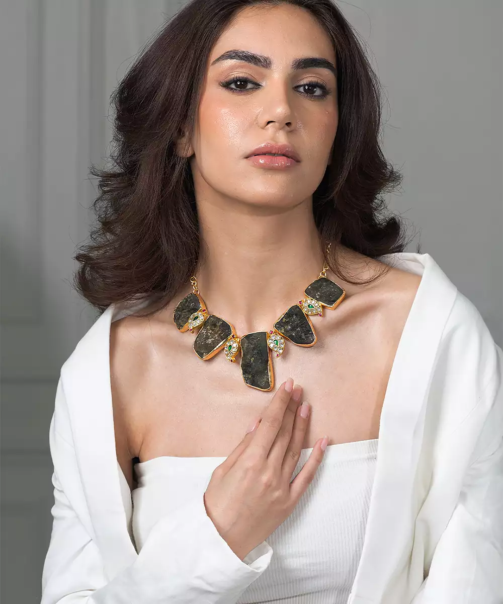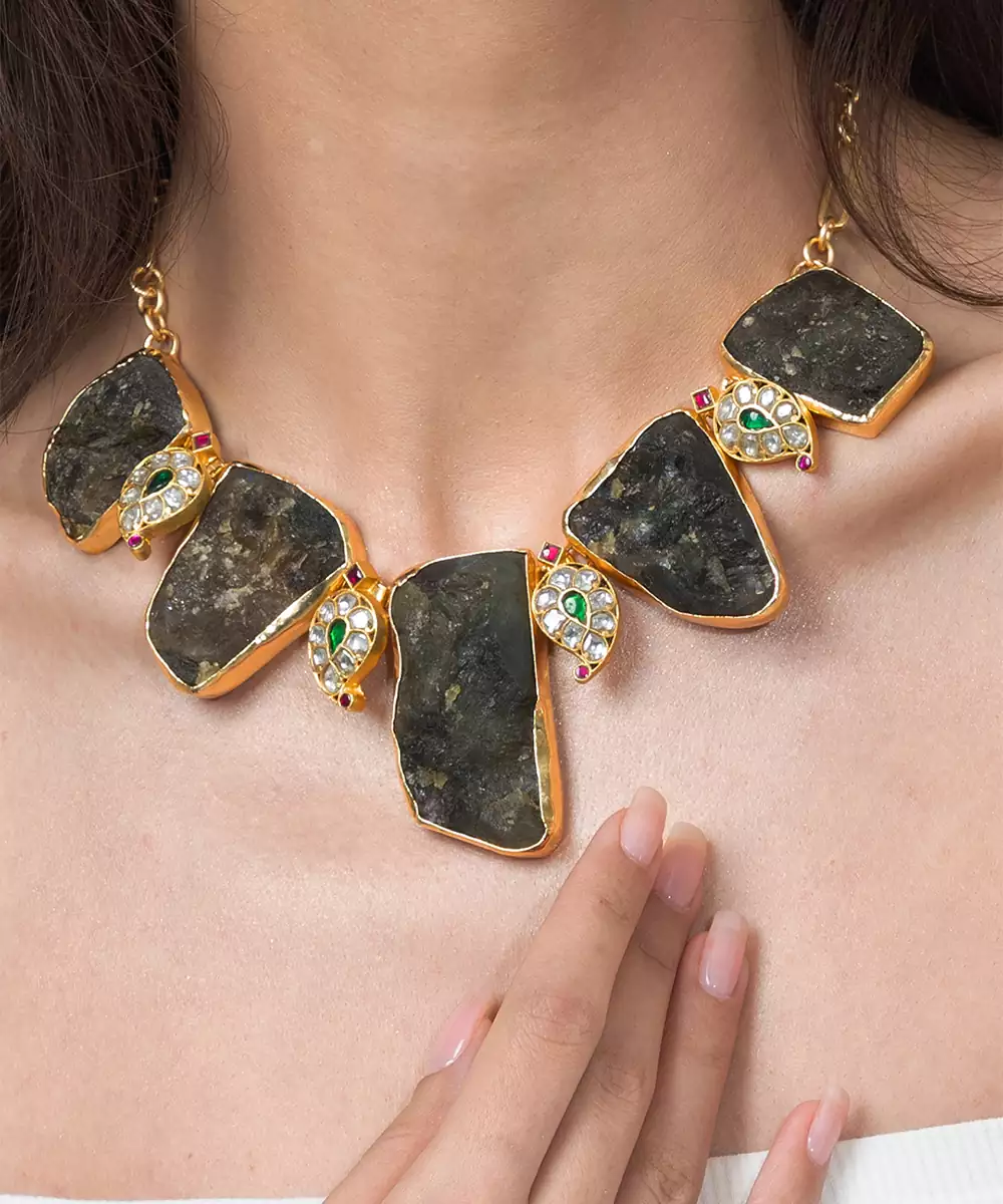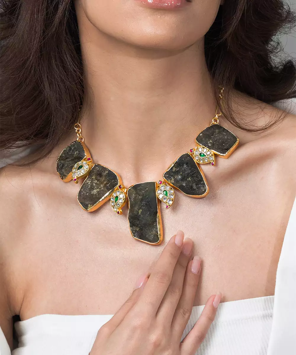 This Necklace Is A Stunning Fusion Of Raw, Organic Materials And Refined Elegance. Each Element Is Completely Unique With Its Own Natural Texture And Mesmerizing Internal Landscape Of Grey And Brown Hues.