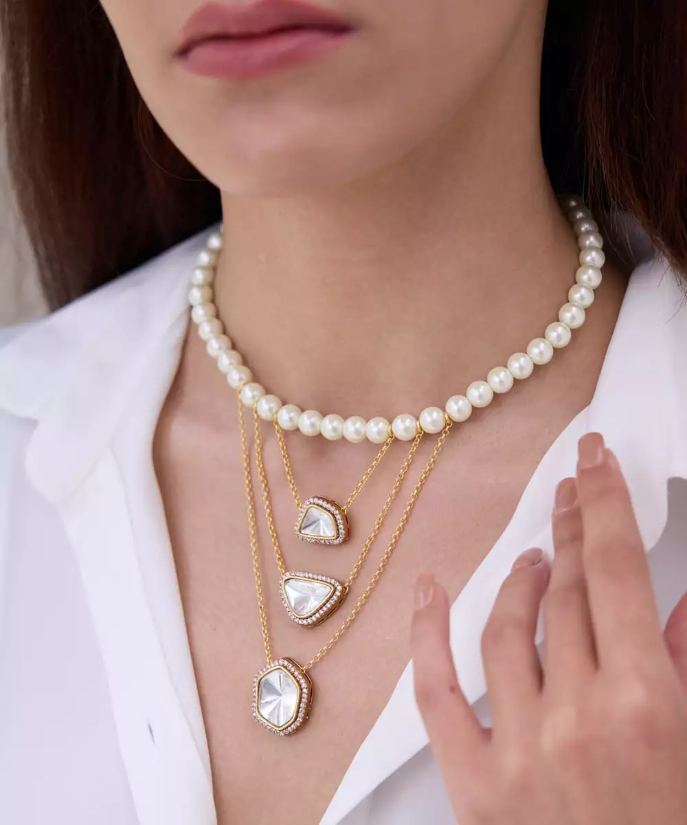 With A Cascading Silhouette Of Pearl Strands And Gold Disc Pendants, This Necklace Offers Layered Opulence. A Modern Heirloom Feel Makes It Perfect For Pre Wedding Celebrations Or Statement Daywear.