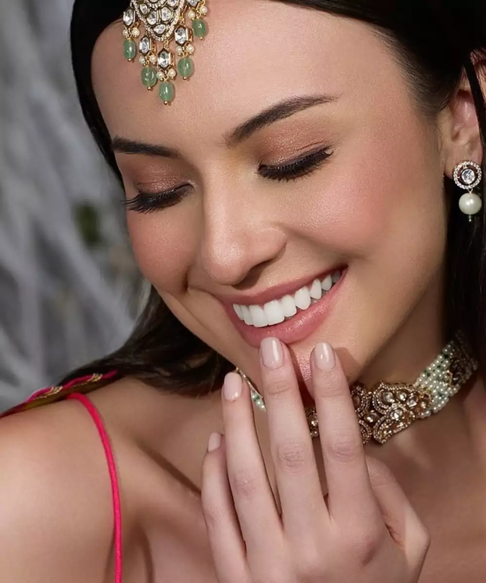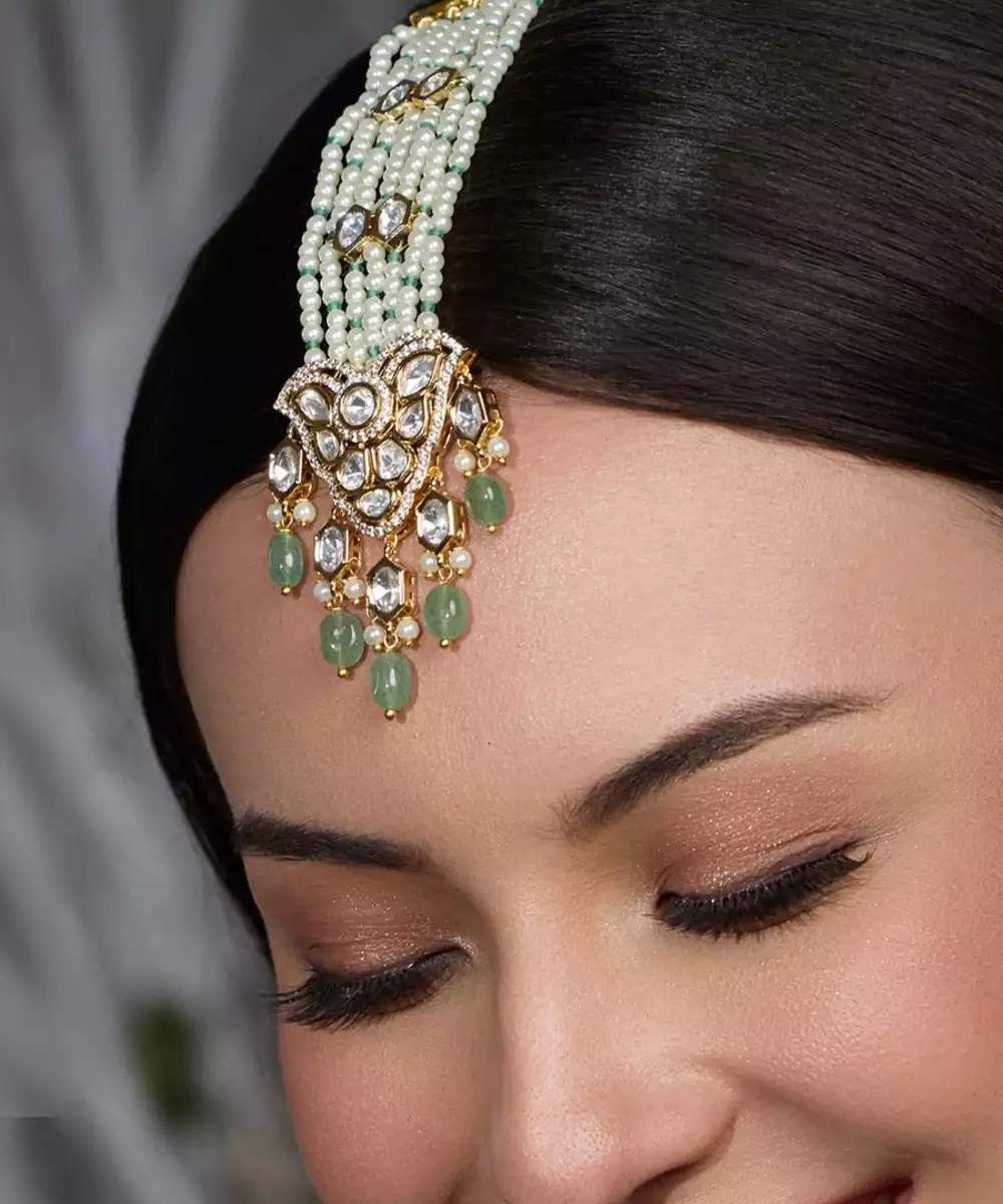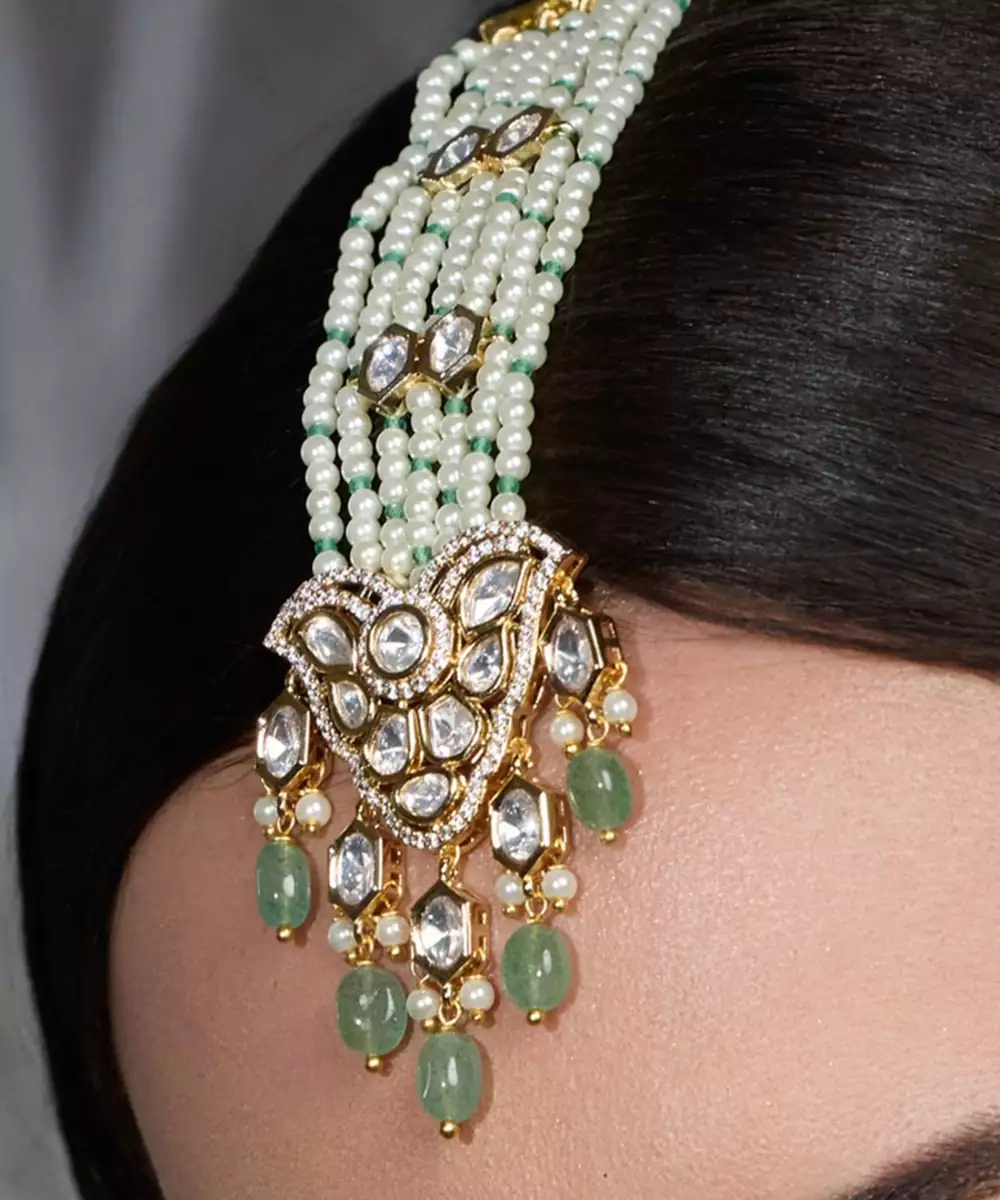 Enhance Your Ethnic Charm With The Majestic Bloom Maang Tikka. Featuring Floral Inspired Detailing And Sparkling Stones, Perfect For Weddings And Festive Occasions.