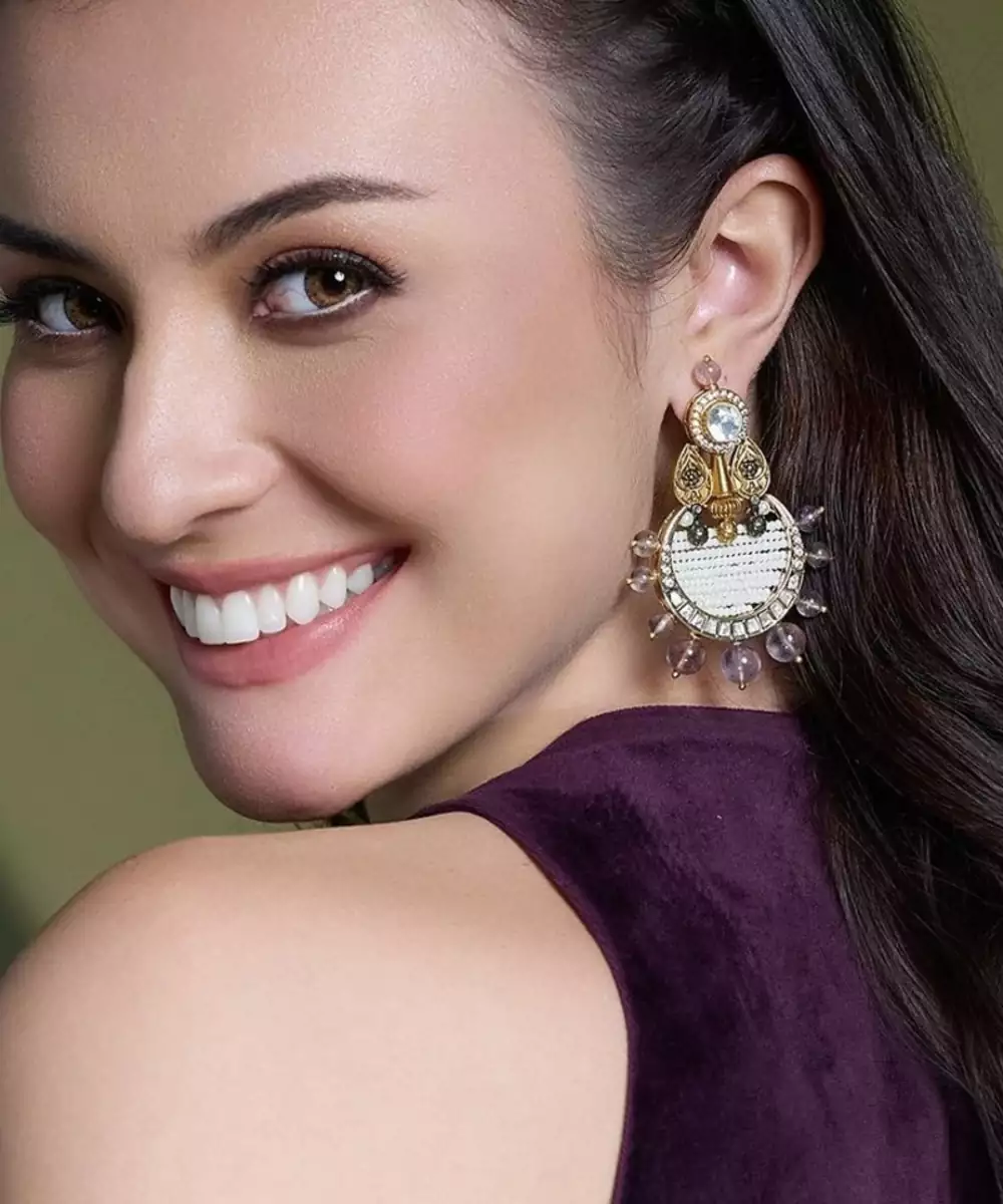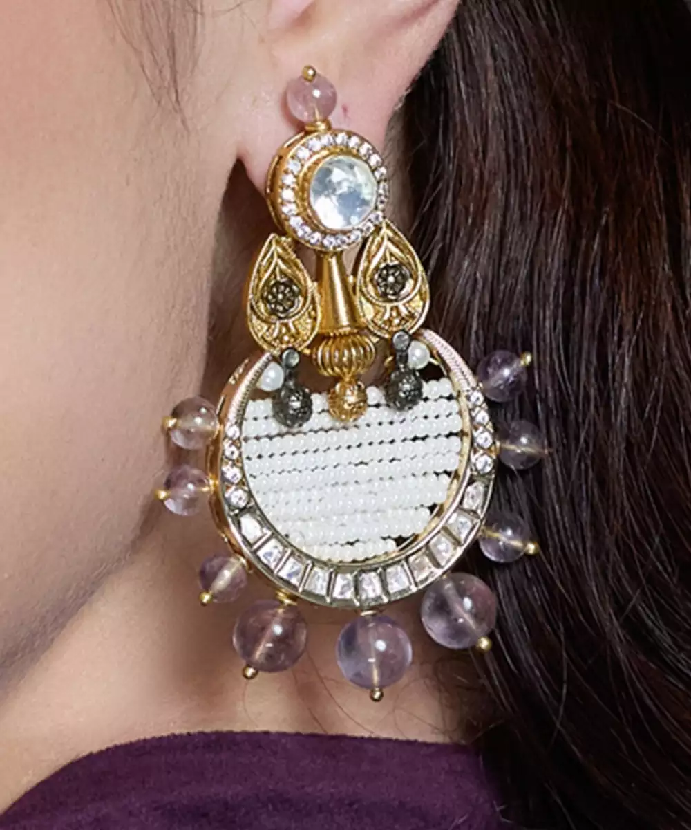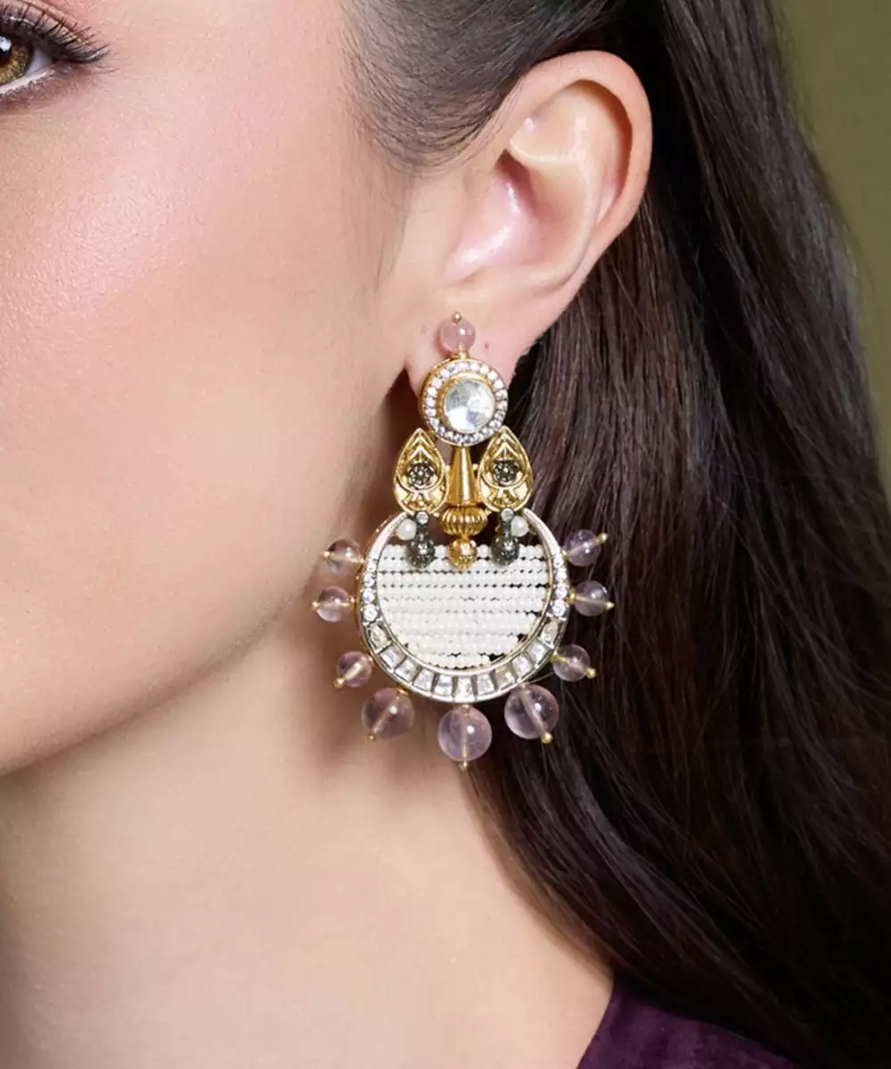 Enhance Your Elegance With Amethyst Grace Kundan Drop Earrings With A Stunning Fusion Of Royal Kundan Craftsmanship And Vibrant Amethyst Stones, Perfect For Timeless Festive Charm.