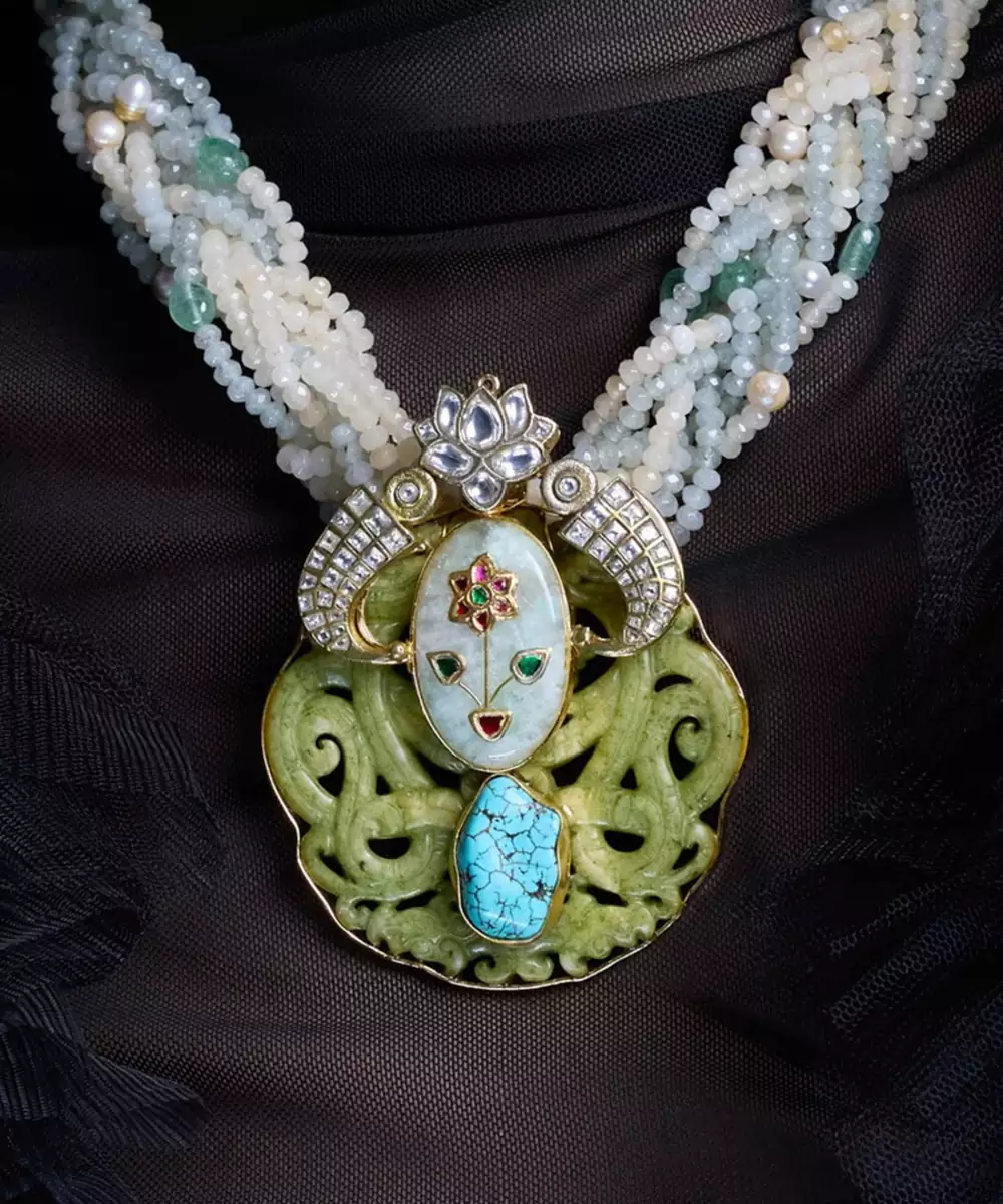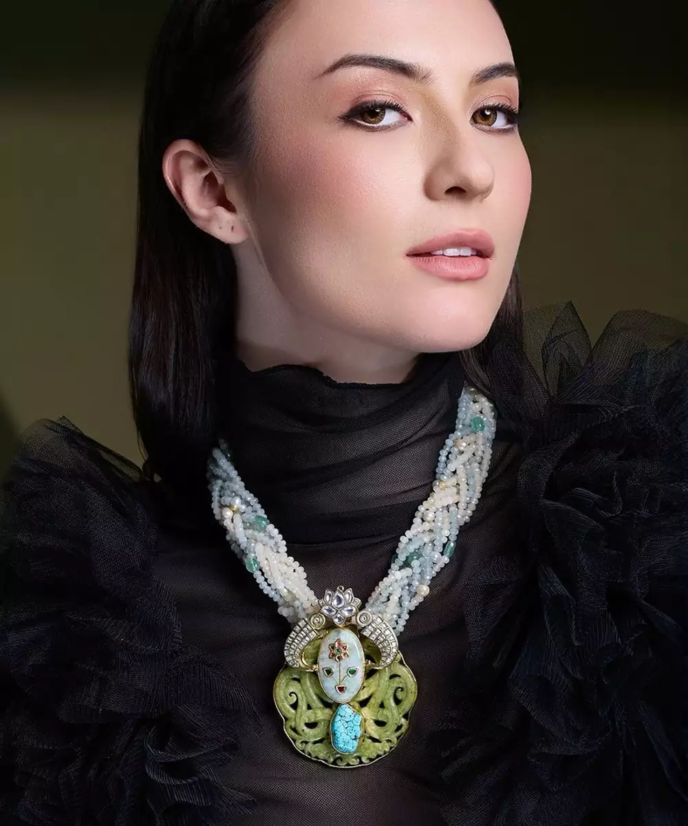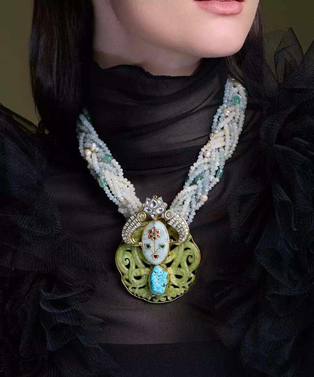 Elevate Your Spiritual Style With The Mystic Man Pendant Necklace, A Handcrafted Statement Piece Designed To Channel Peace, Power, And Presence. Featuring A Divine Central Figure Intricately Set Within A Meditative Green Base And Adorned With Turquoise And Pearl Accents, This Necklace Is A Perfect Fusion Of Tradition And Elegance.