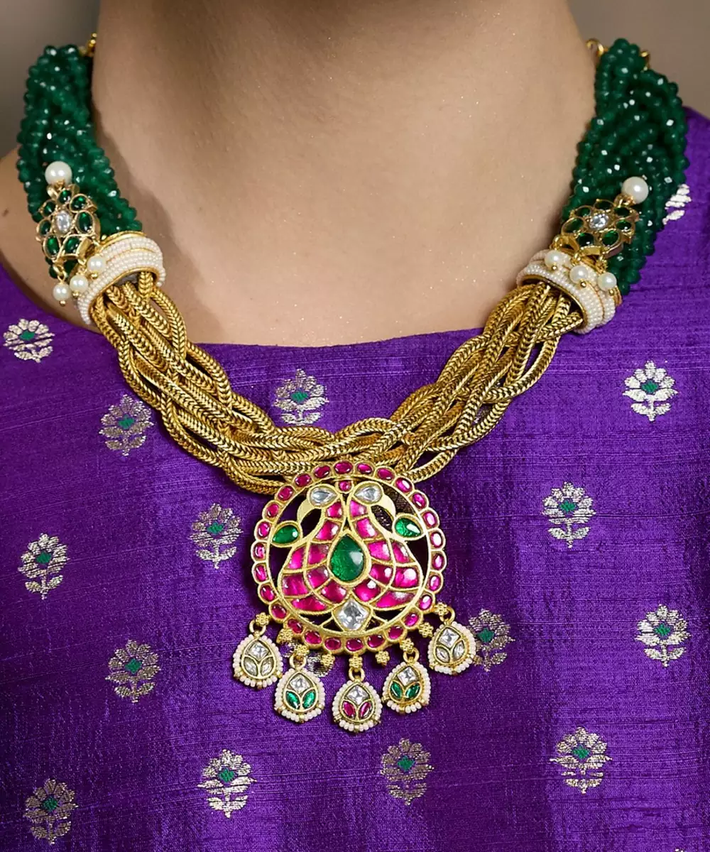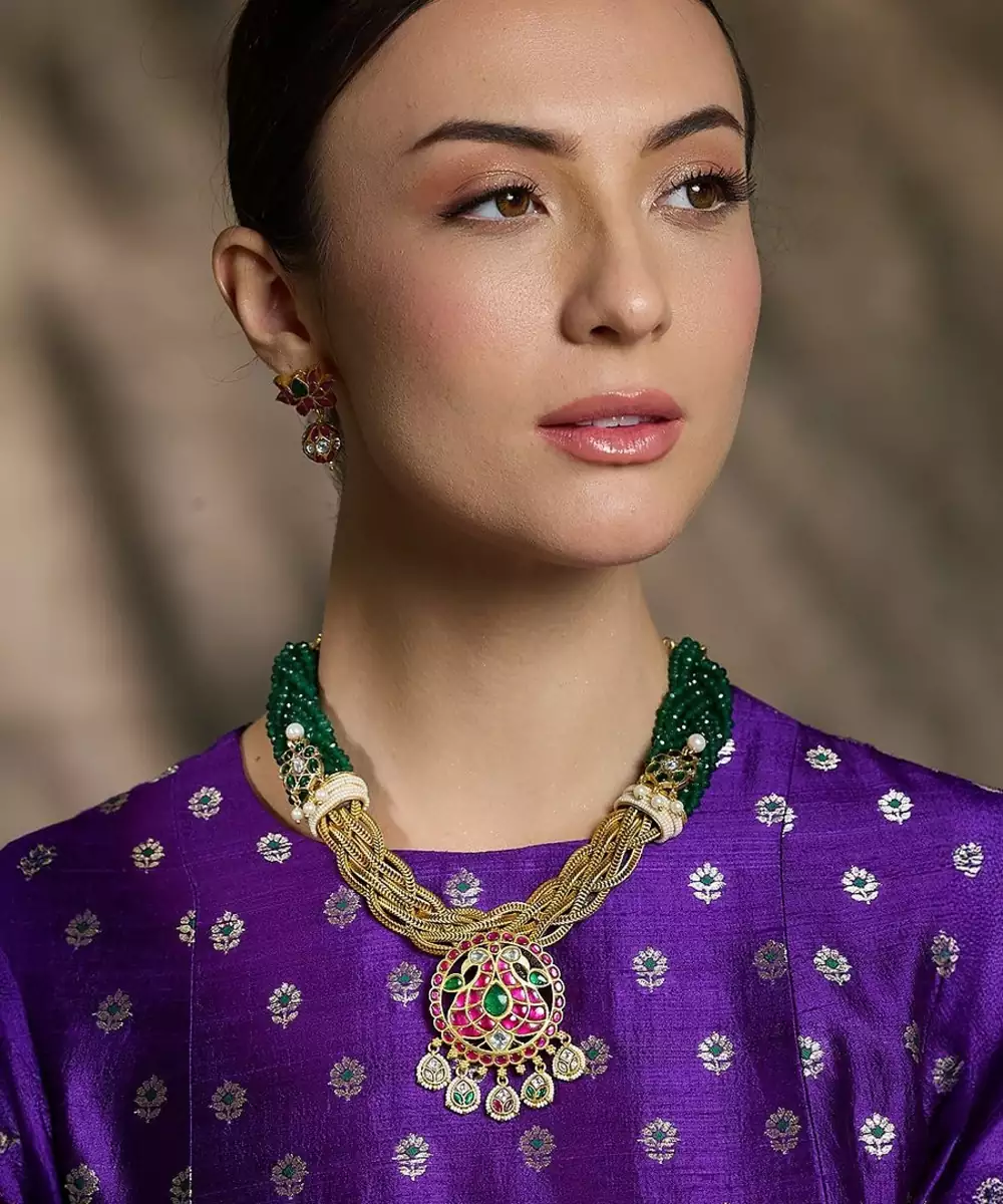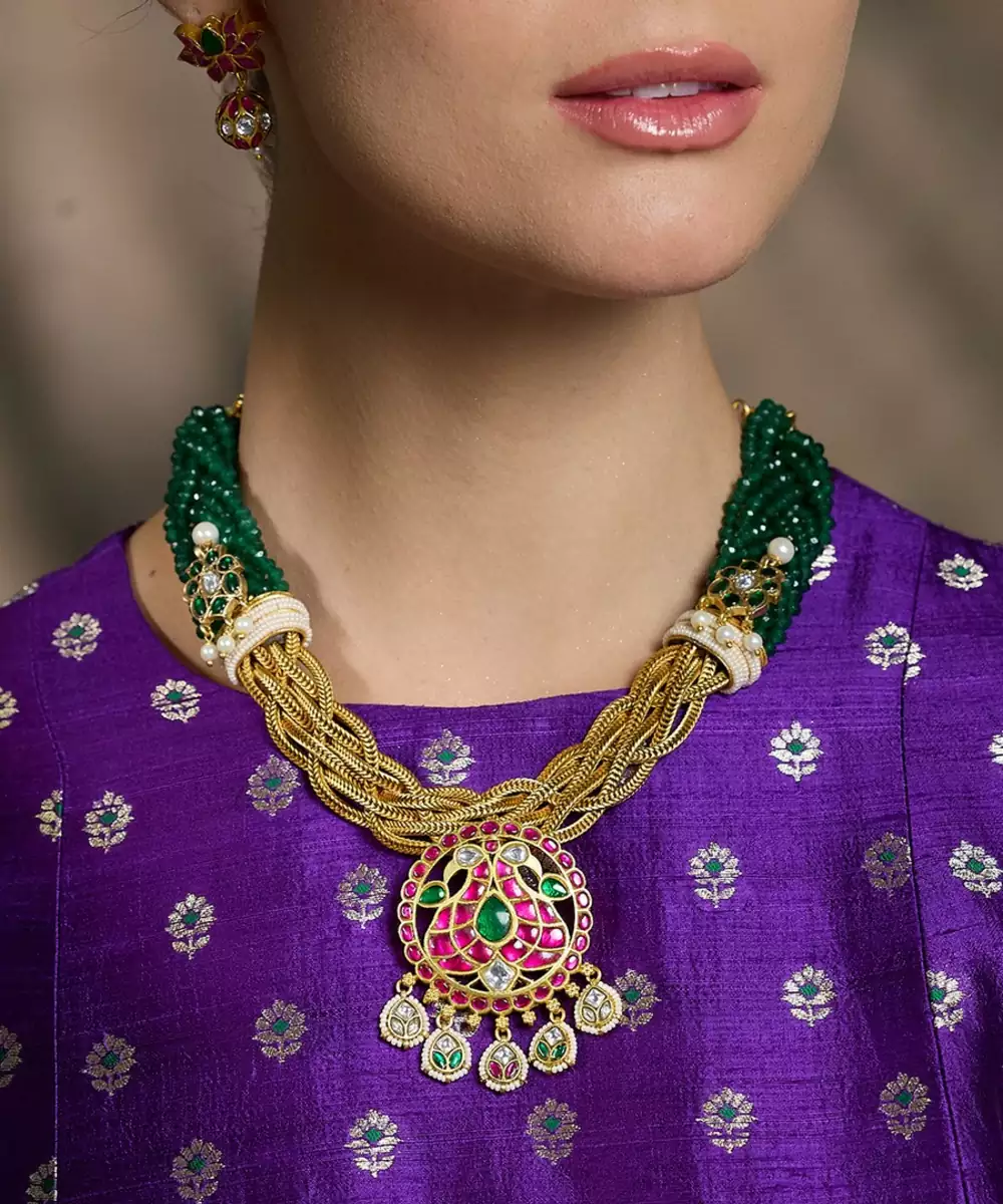 Turn Heads With This Opulent Necklace And Earring Duo, Featuring Shimmering Green Stones, Sparkling Red Gems, And Lavish Gold Accents. Perfectly Crafted To Exude Royal Elegance, It's A Timeless Treasure For Festive Occasions And Graceful Appearances. Add Matching Earrings & Accessories To Complete The Look.