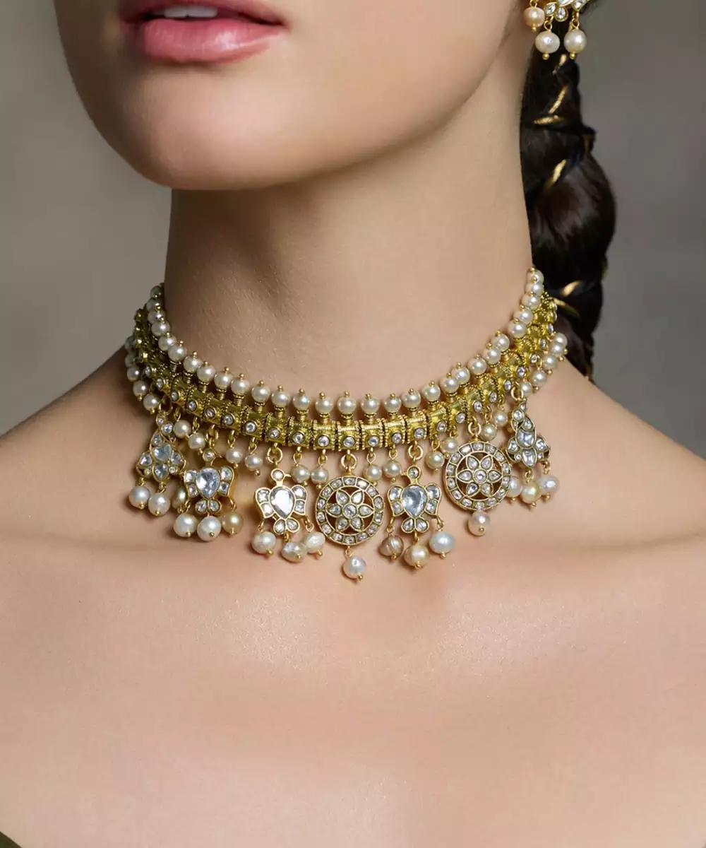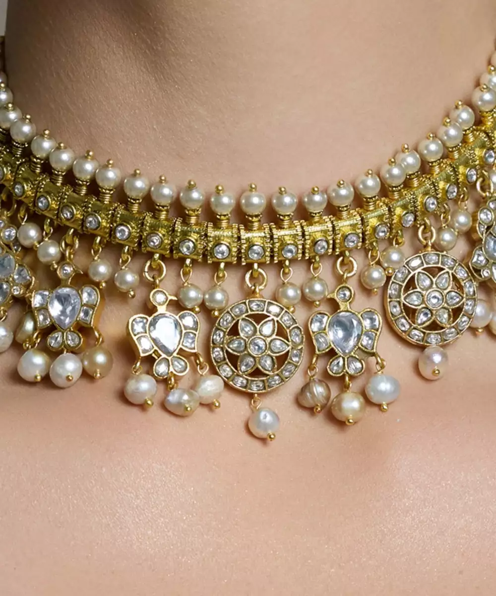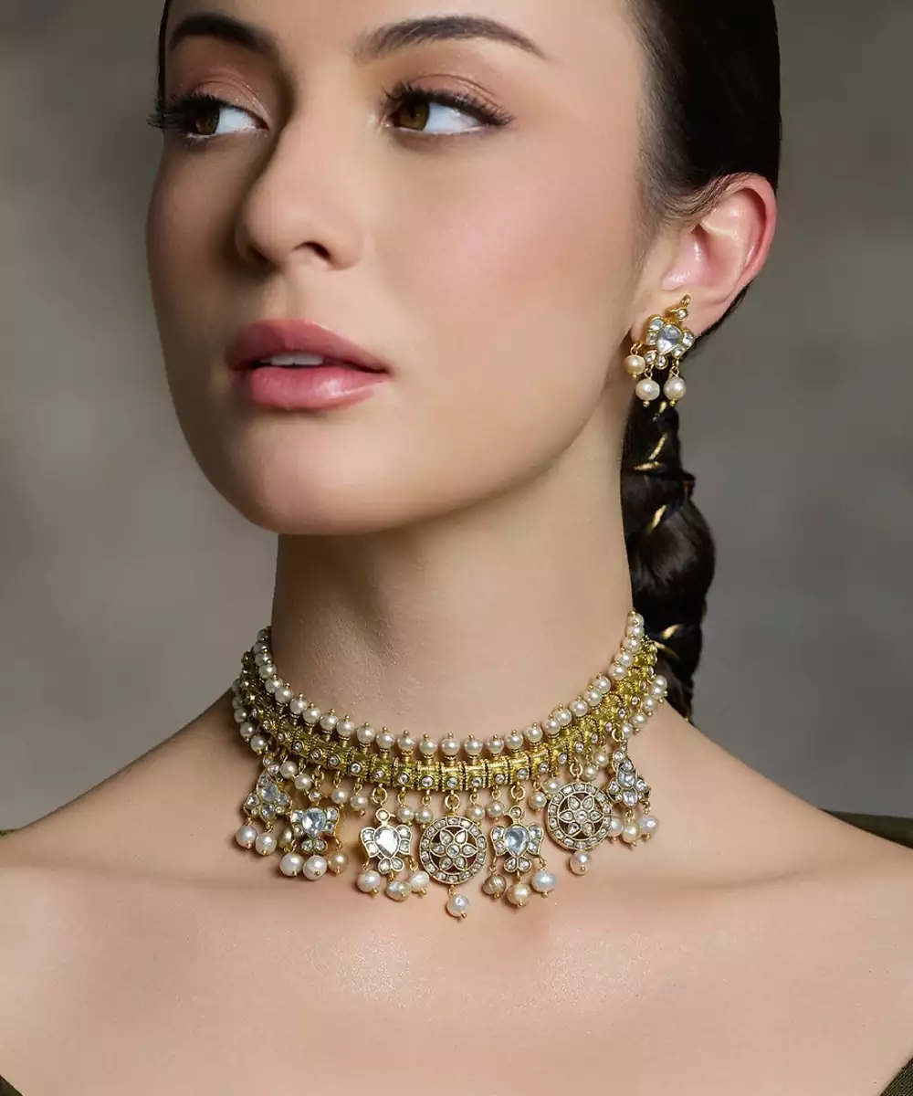 This Radiant Gold Plated Pearl Necklace Elevates Your Look And Adds Charms With A Square Stone. It Is A Mixture Blend Of Tradition And Modernity, Fit For All Types Of Outfits.