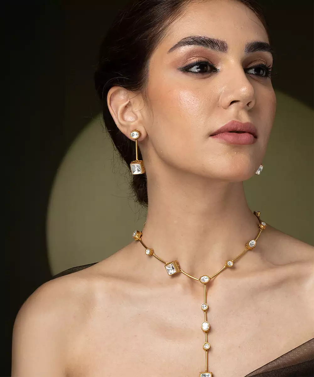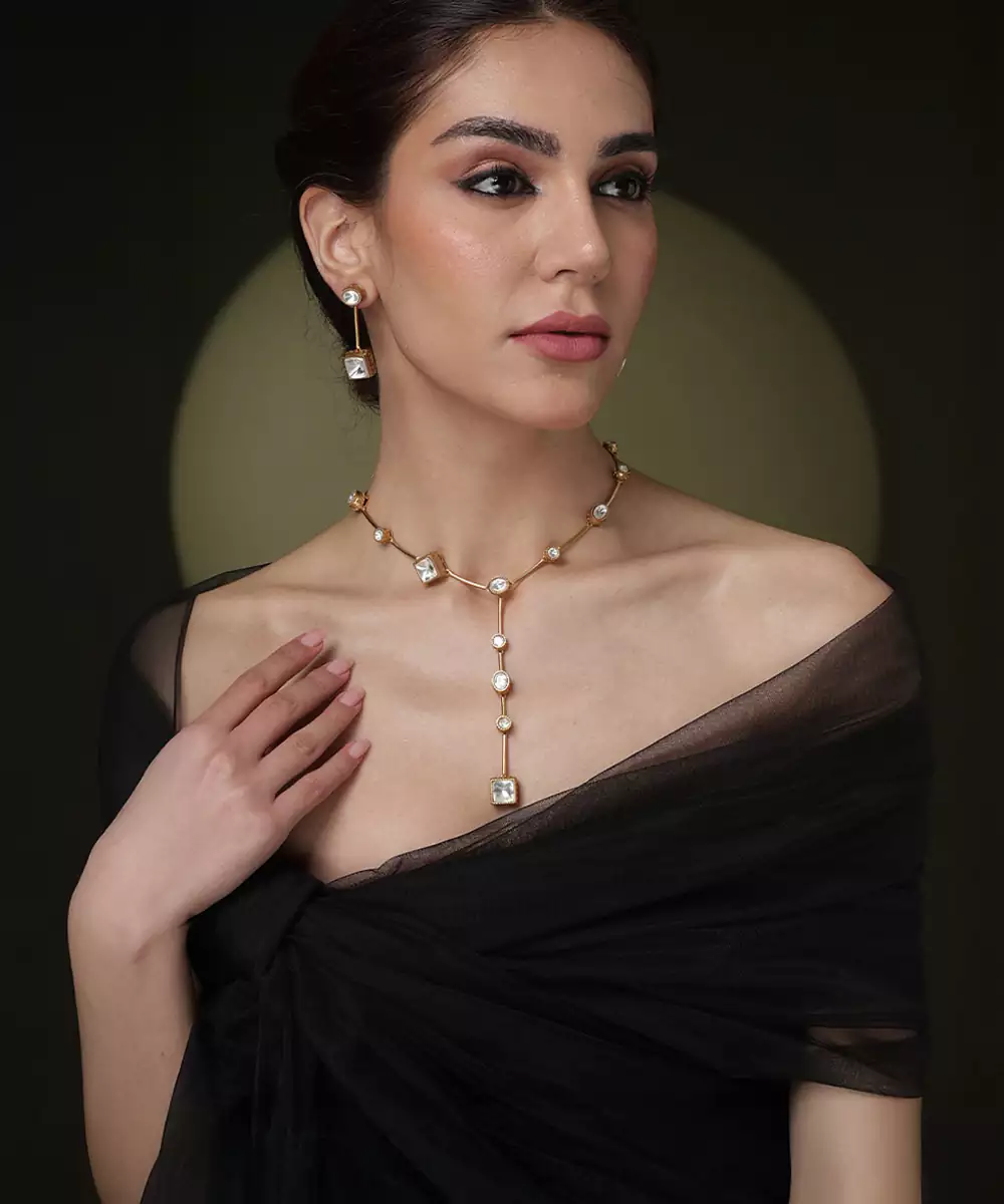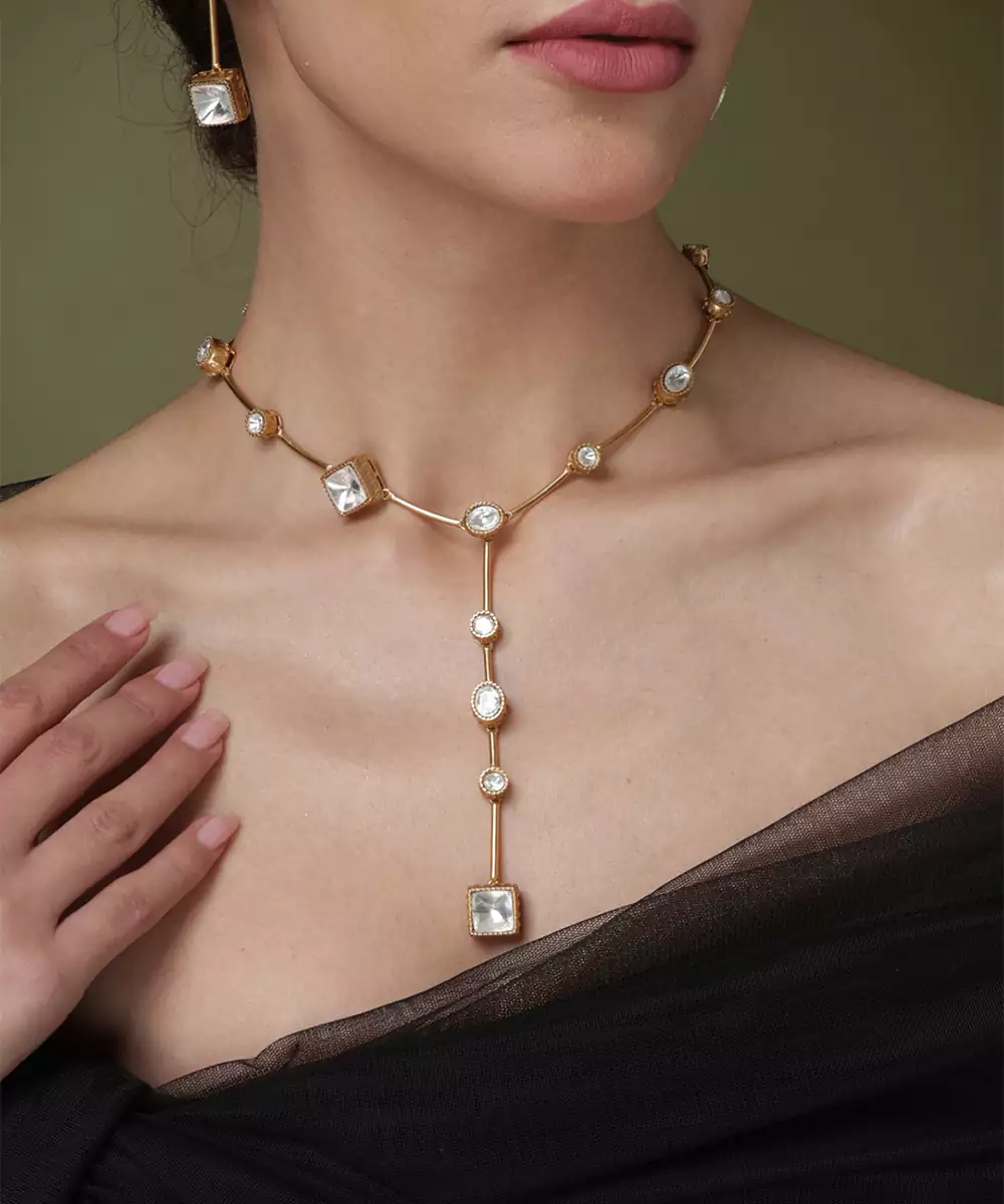 Your Go To Piece For Polished Simplicity. This Graceful Lariat Necklace Set Shifts Effortlessly From The Office To Evening, Adding Subtle Sparkle And Modern Shape To Every Neckline.