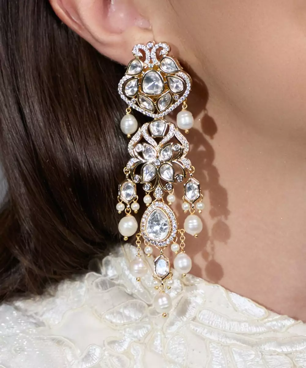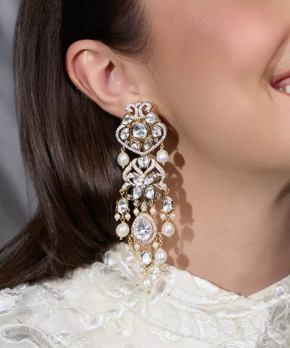 These Elegant Earrings Sparkle With Sets Of Crystals And Intricate Gold Toned Detailing, Cascading Into A Delicate Drop Design. Ideal For Evening Wear, Bridal Glam, Or Festive Sophistication.