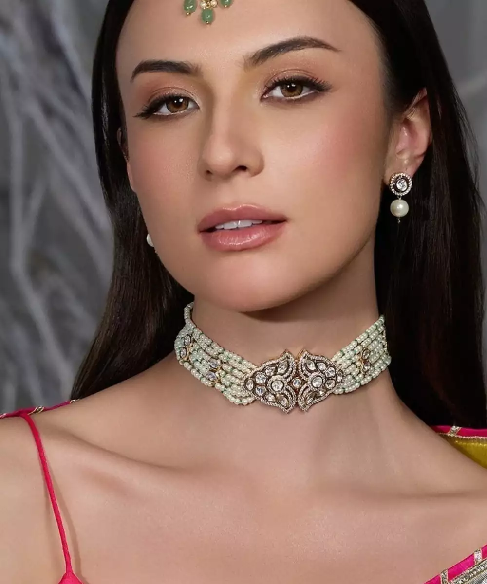 Embrace Timeless Elegance, A Stunning Blend Of Luxurious Craftsmanship And Calming Beauty. Featuring A Delicately Designed Necklace And Matching Earrings, This Set Showcases Refined Detailing, Subtle Shimmer, And A Soothing Color Palette—Perfect For Weddings, Festive Occasions,