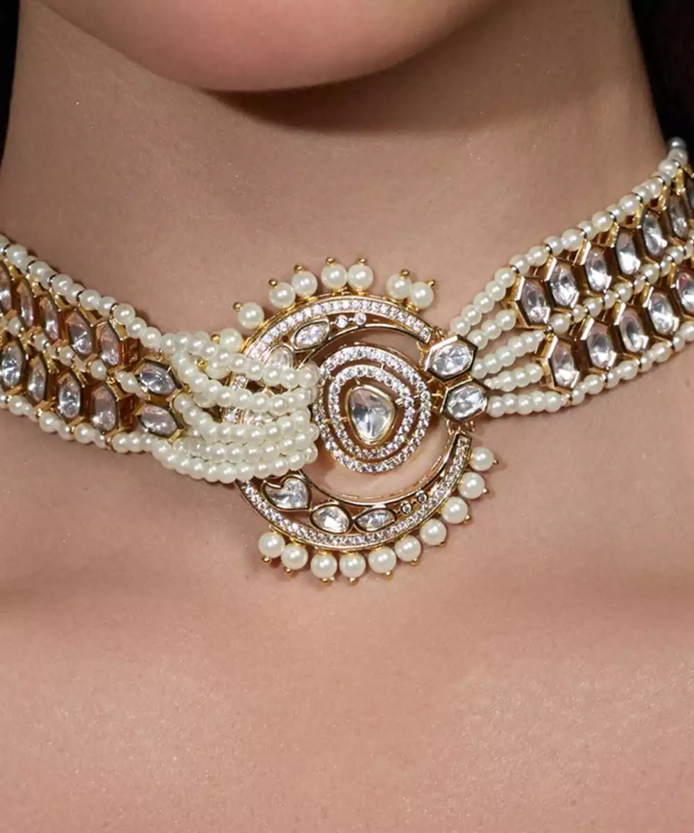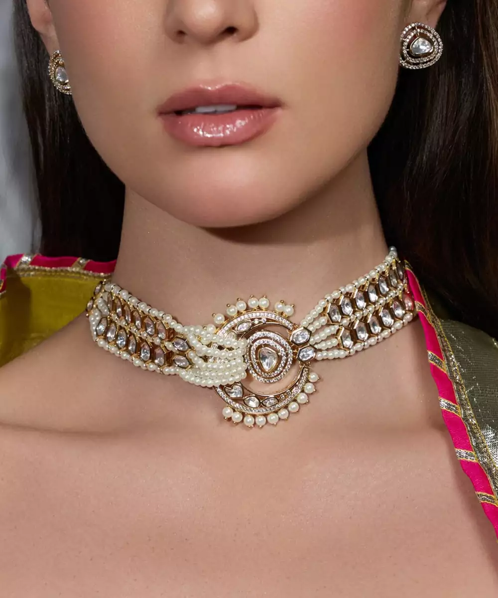 The Golden Aura Set Radiates Royal Elegance With Its Intricate Gold Toned Necklace And Matching Earrings