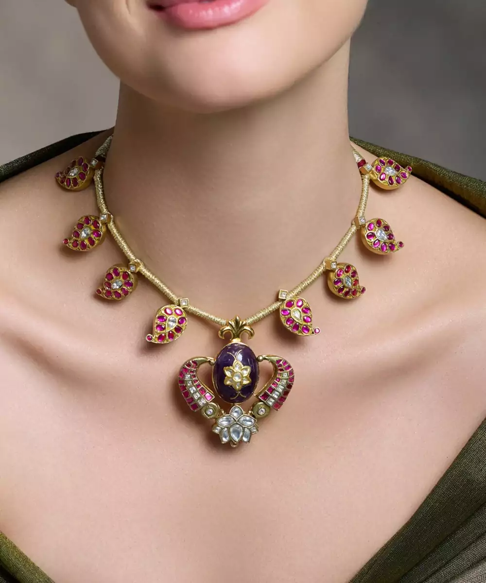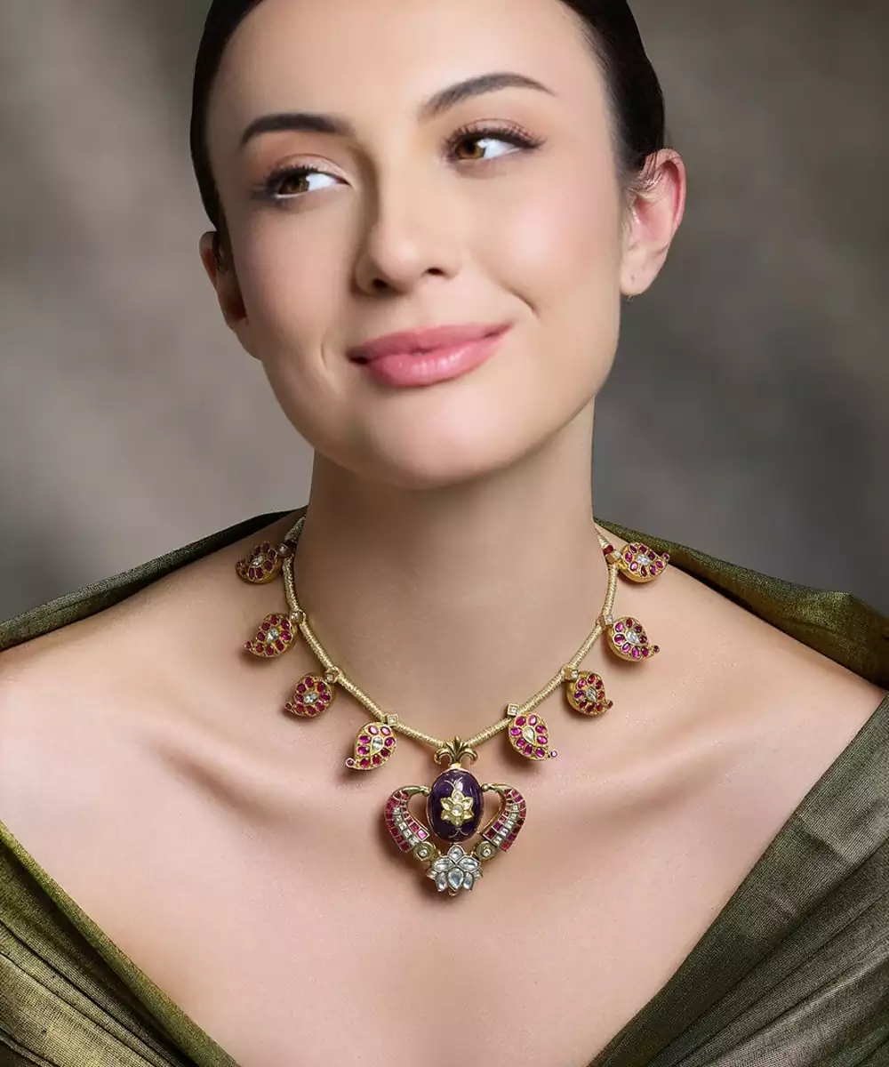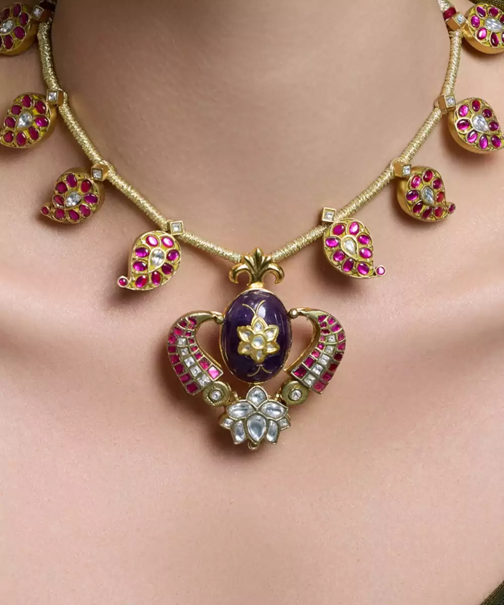 This Kundan Temple Necklace Is Inspired By The Elegance Of Tradition And Artistic Work—An Eye Catching Piece For Cultural Celebrations And A Graceful Style.
