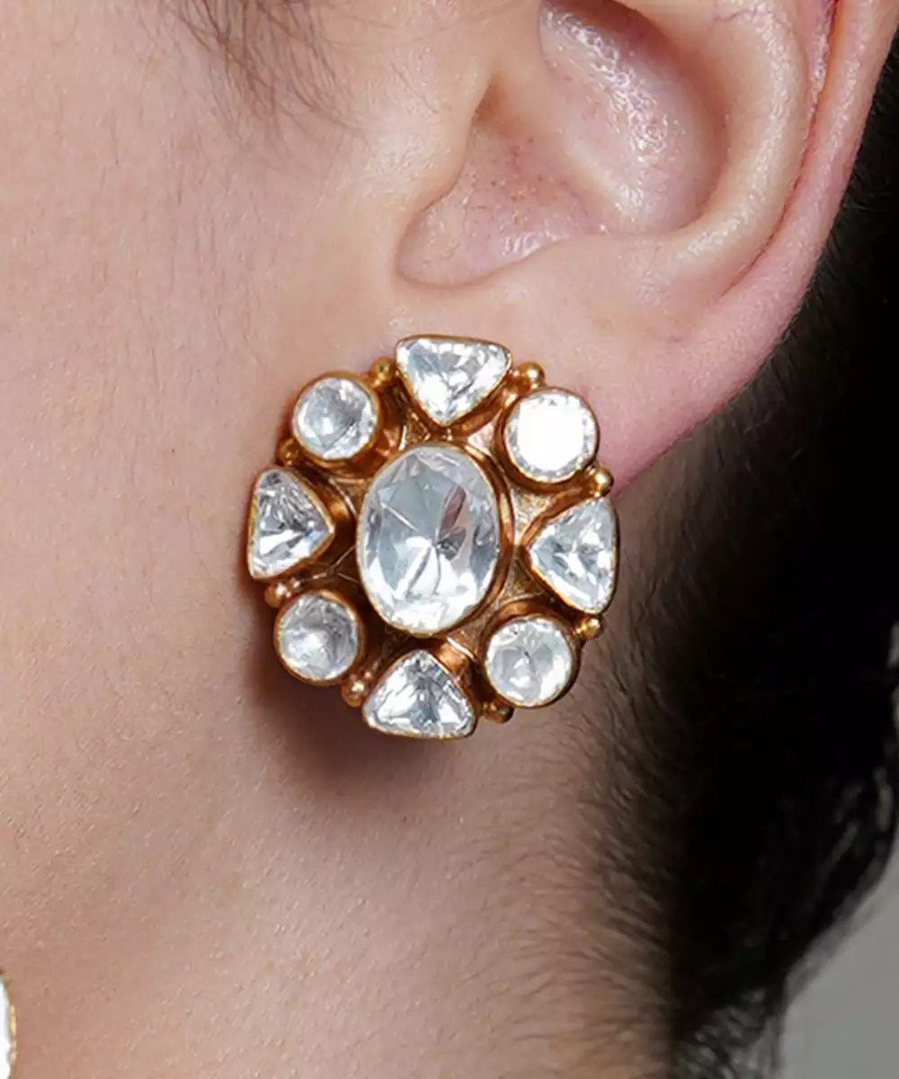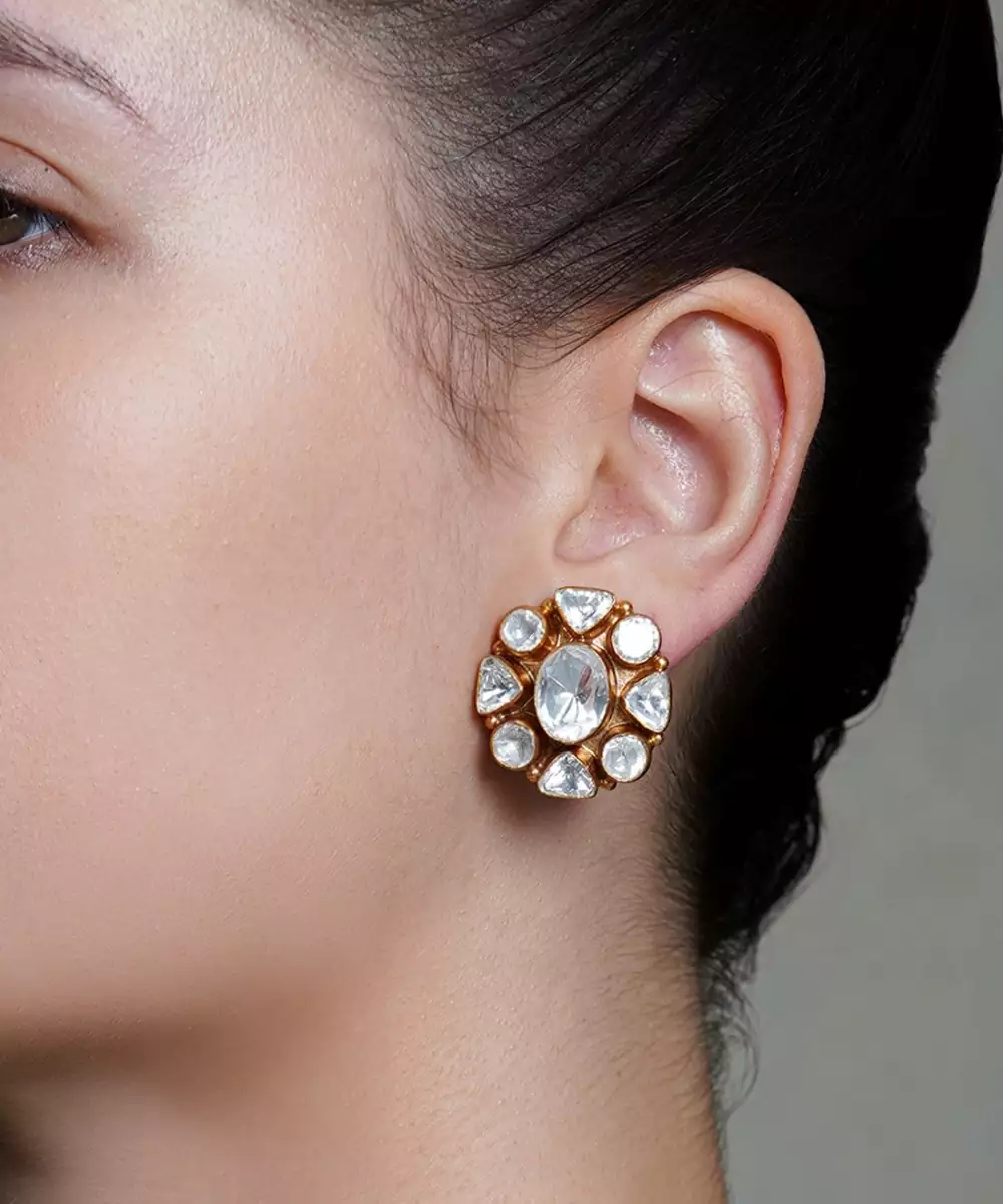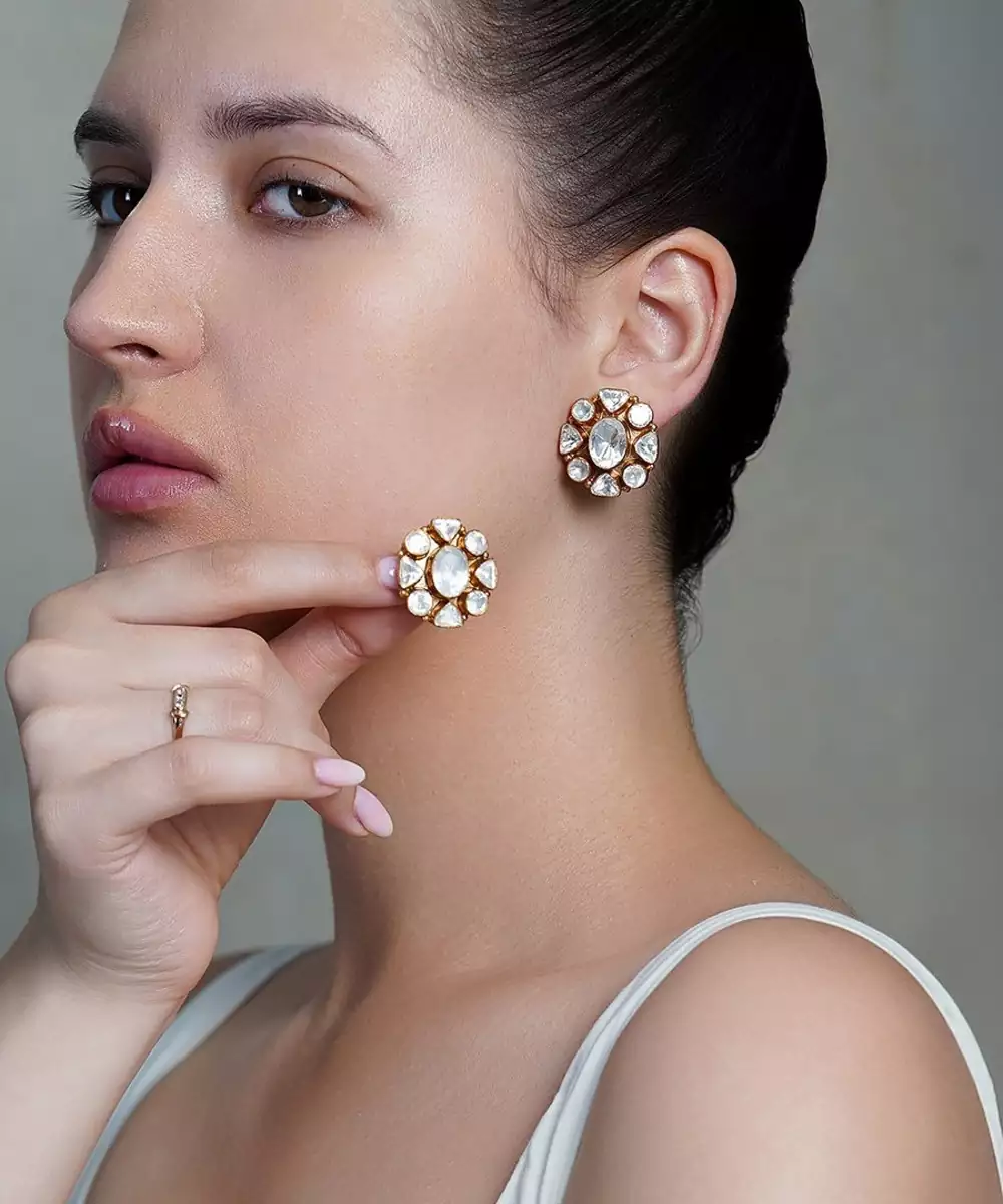 Add Royal Allure With Glimmer Nest Kundan Stud Earrings—Exquisite Kundan Earrings Crafted To Blend Timeless Tradition With A Touch Of Contemporary Elegance.
