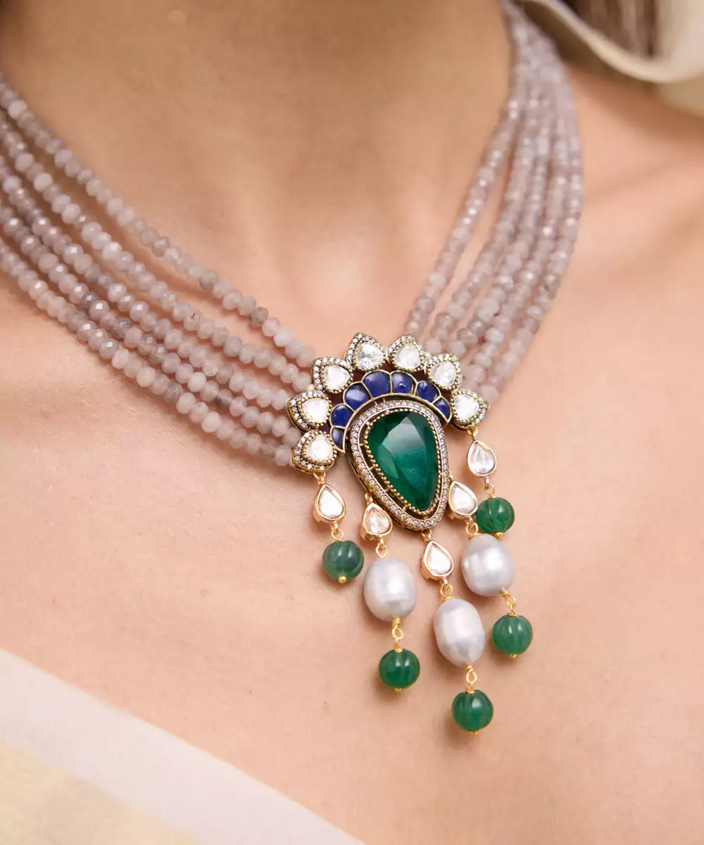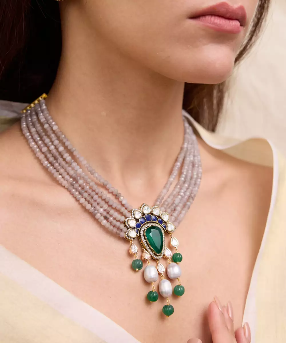 A Delicate Gold Necklace Strung With Pearl And Kundan Accents, Paired With Matching Drop Earrings. Understated And Elegant—Great For Haldi Ceremonies, Day Events, Or Classic Styling.