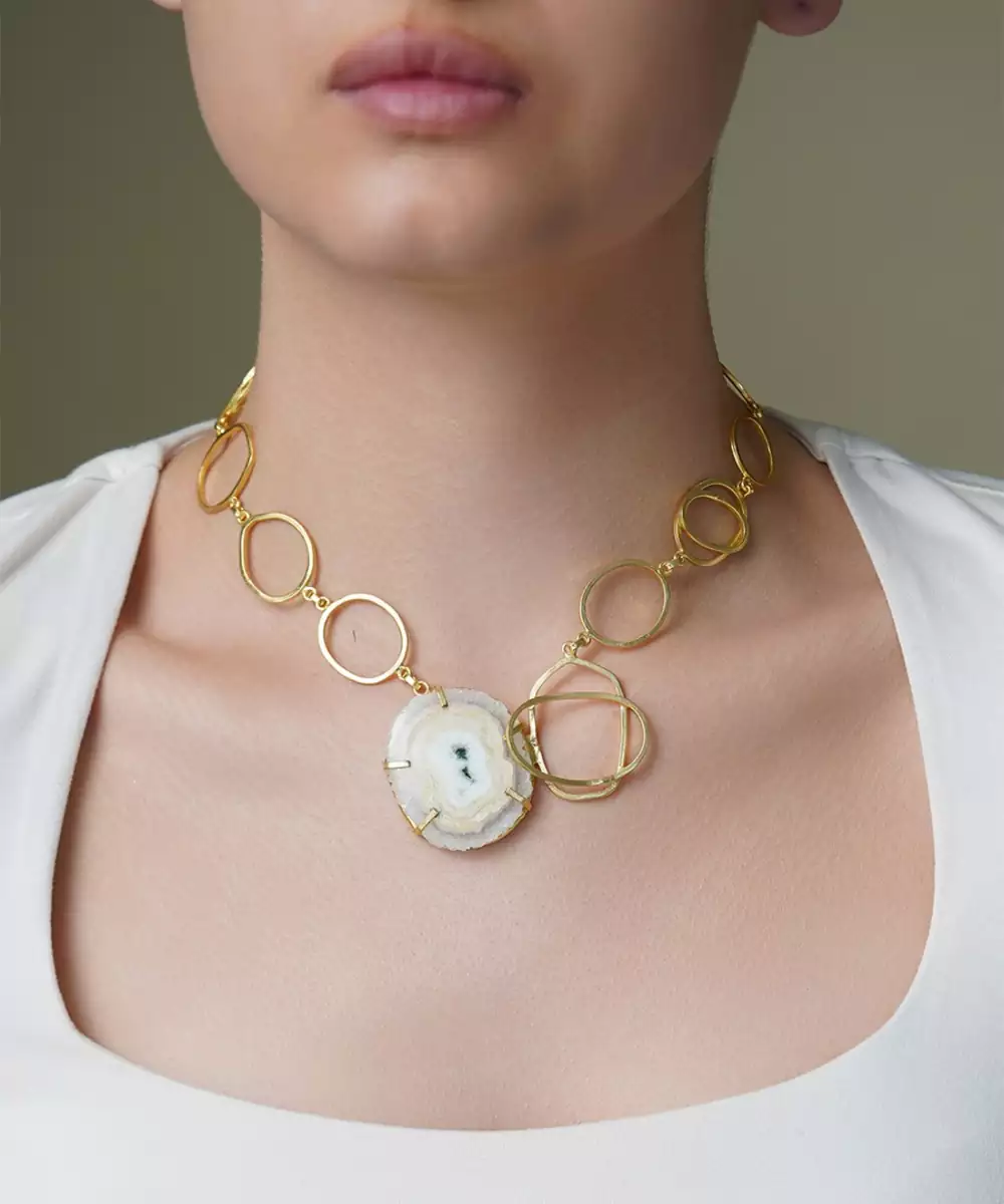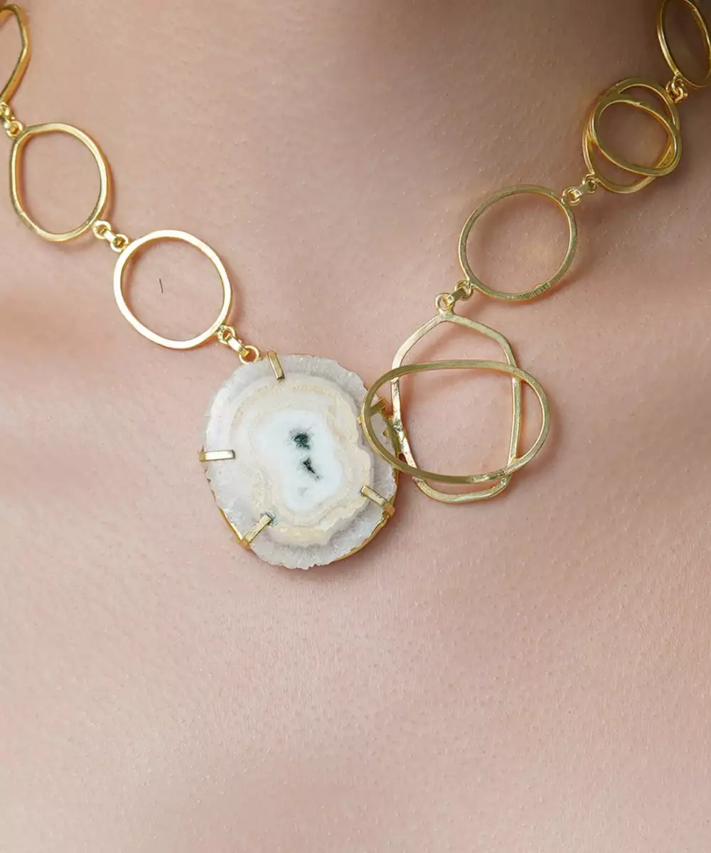 Natural Agate Pendant With Elegant Gold Choker Design. Boho Chic Or Festive Elegance, It's Perfect, Unique, And Ideal. Add A Dramatic Flair Of Timeless Beauty. Color: Gold Material: Gold Plated Components: 1 Necklace