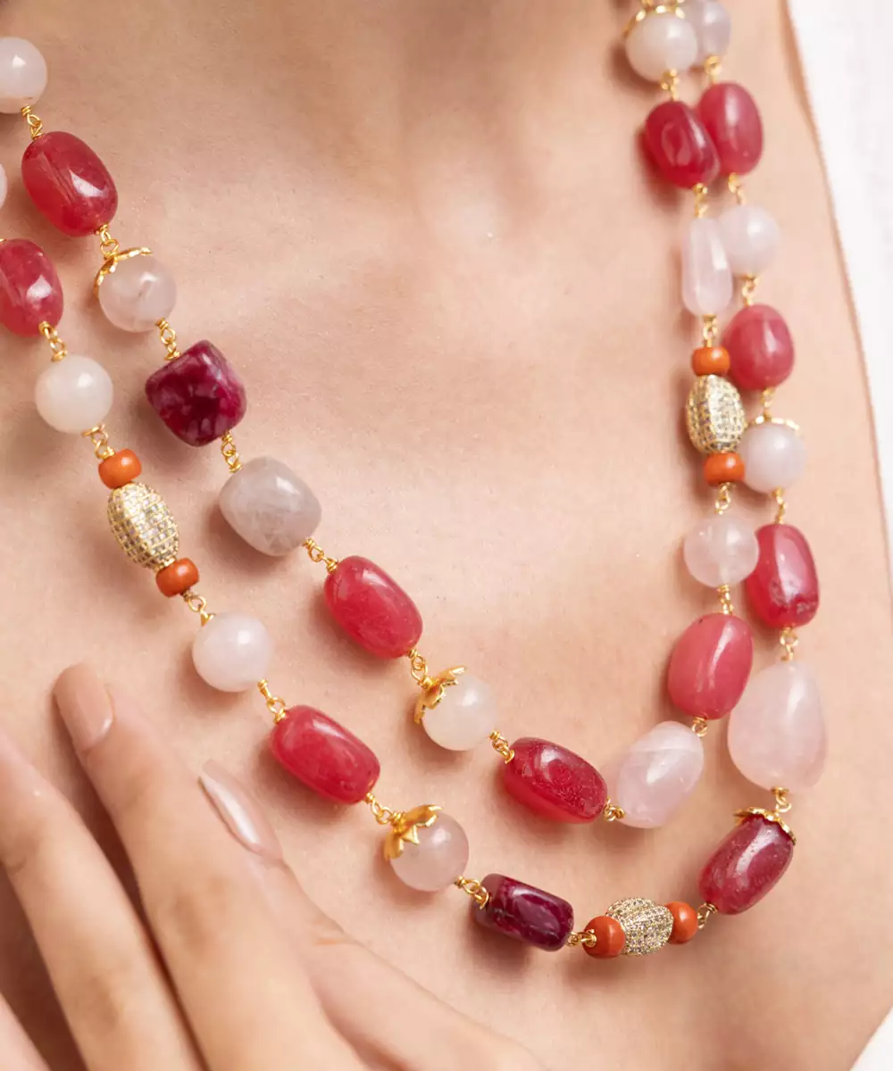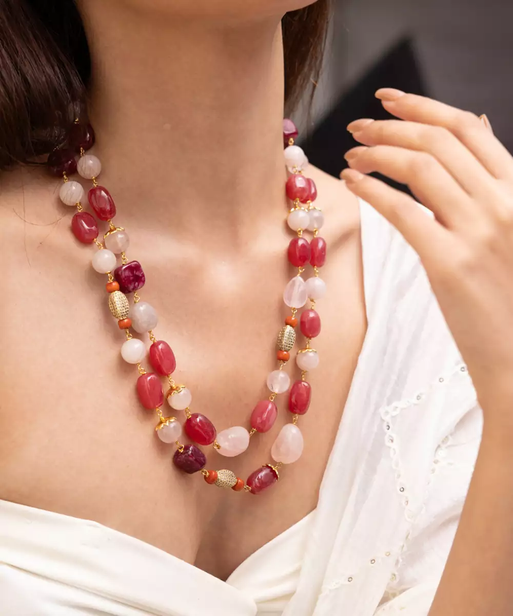 Blending Blush Pink Tones With Luminous Pearls, This Double Strand Necklace Is Feminine, Fresh, And Timeless. A Soft Statement For Festive Luncheons, Pre Wedding Events, Or Pastel Inspired Celebrations.