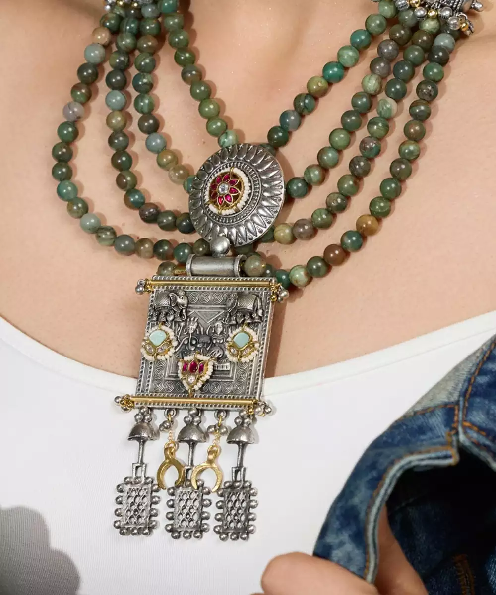 Make A Lasting Impression With This Boho Legacy Pendant Necklace. Adorned With Layered Green Beads, Antique Silver Accents, And A Bold Central Pendant, It Blends Traditional Charm With Artistic Flair—Ideal For Festive, Cultural, Or Boho Chic Ensembles.
