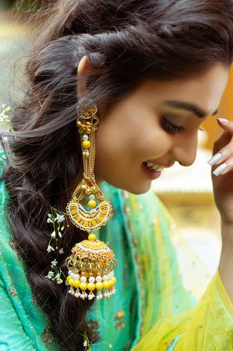 Featuring Hand Embroidered Earrings With Thread,Dabka & Moti In Set.