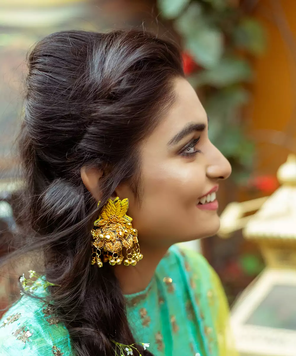 Featuring Hand Embroidered Earrings With Thread,Dabka,Ghungru & Moti In Set.