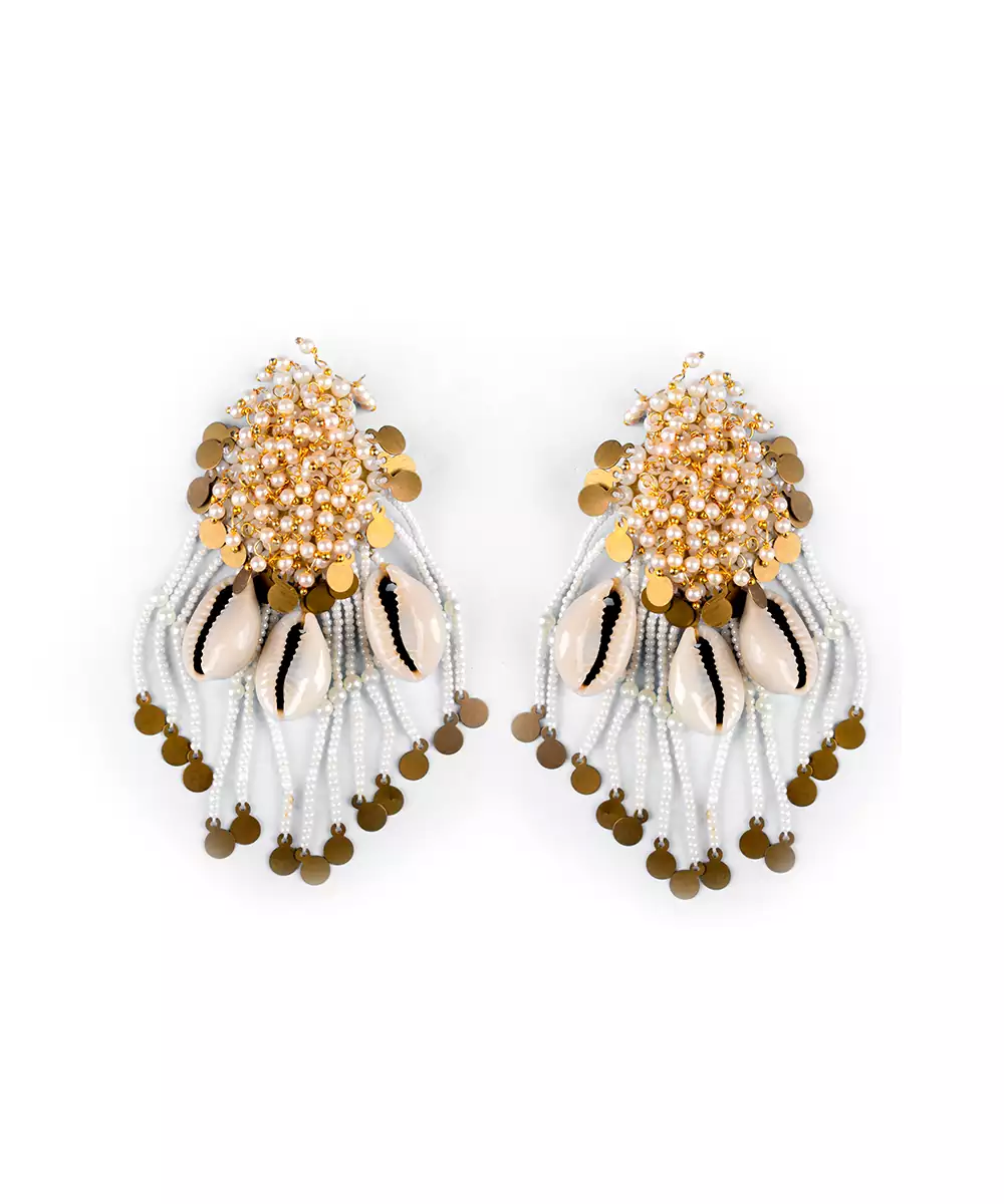 Featuring A Gold & White Finish Earrings With Pearls ,Shells,Chid In Set.