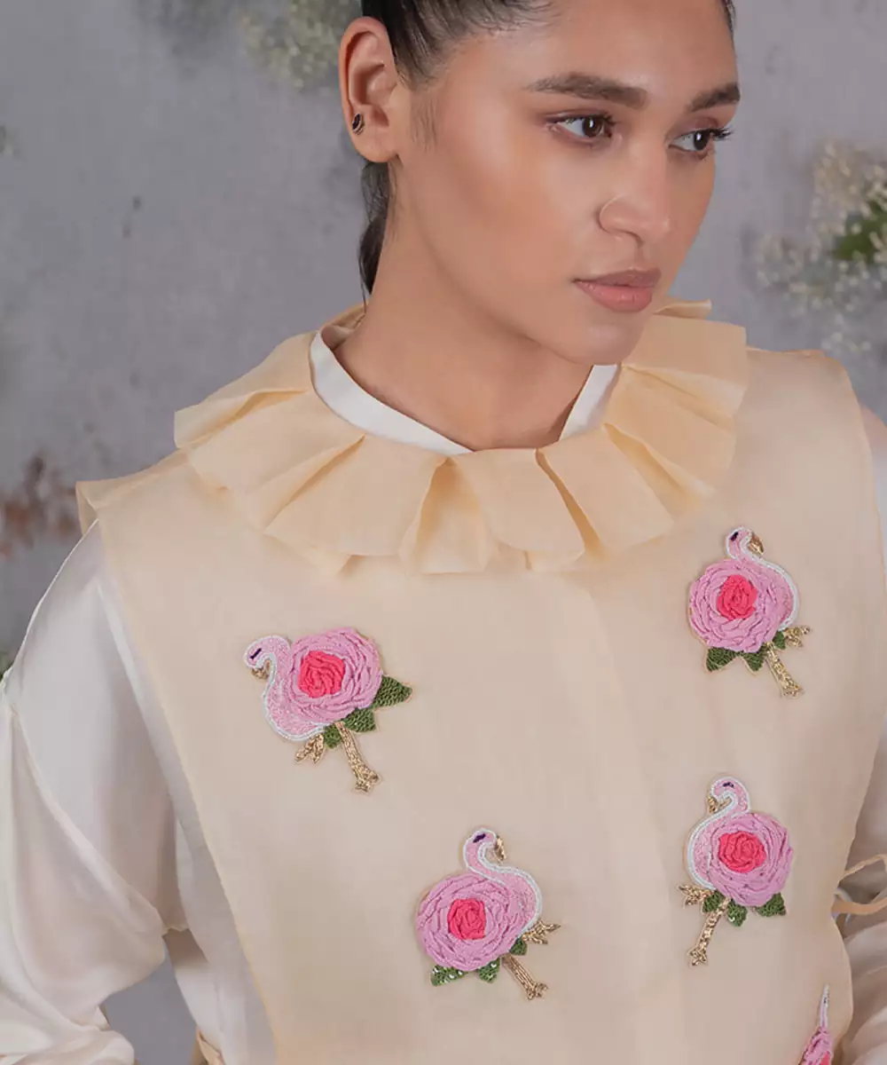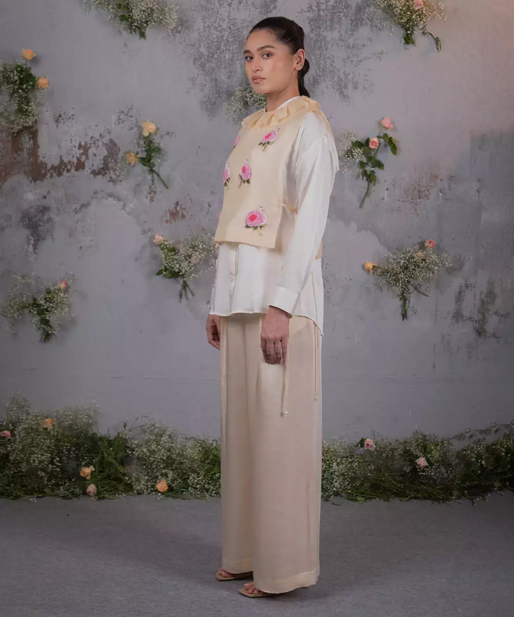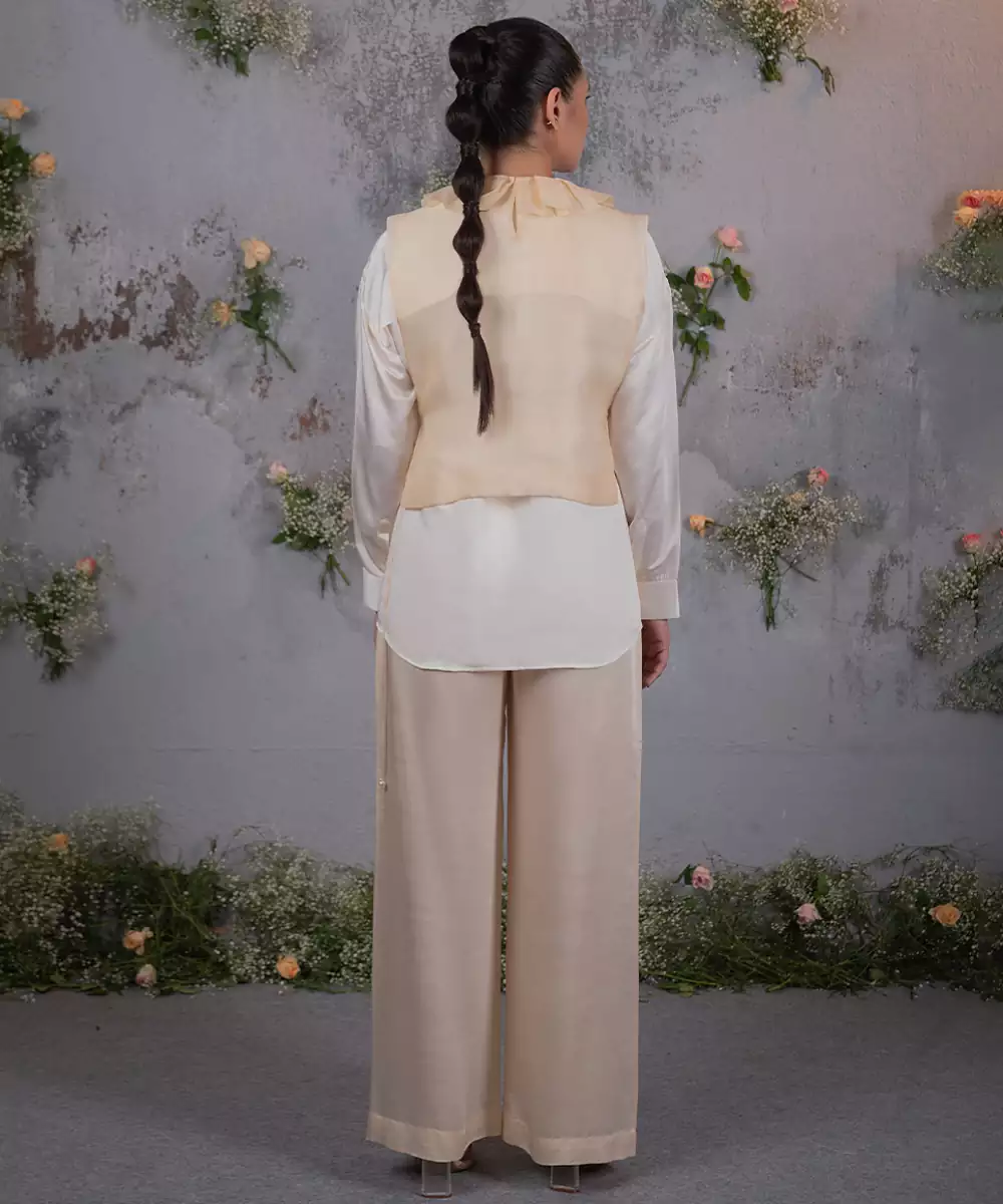 This Beige Embroidered Satin Co Ord Set Exudes Understated Elegance And Modern Charm. Crafted From Lustrous Satin Fabric, It Features Intricate Embroidery That Adds A Refined Touch. Perfect For Festive Occasions And Celebrations, It Offers Graceful Style, Comfort, And Timeless Sophistication.
