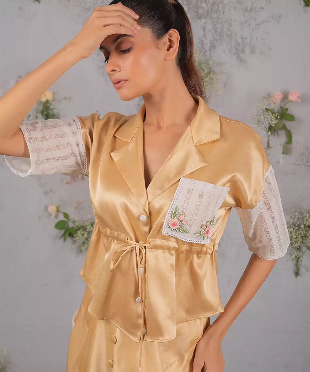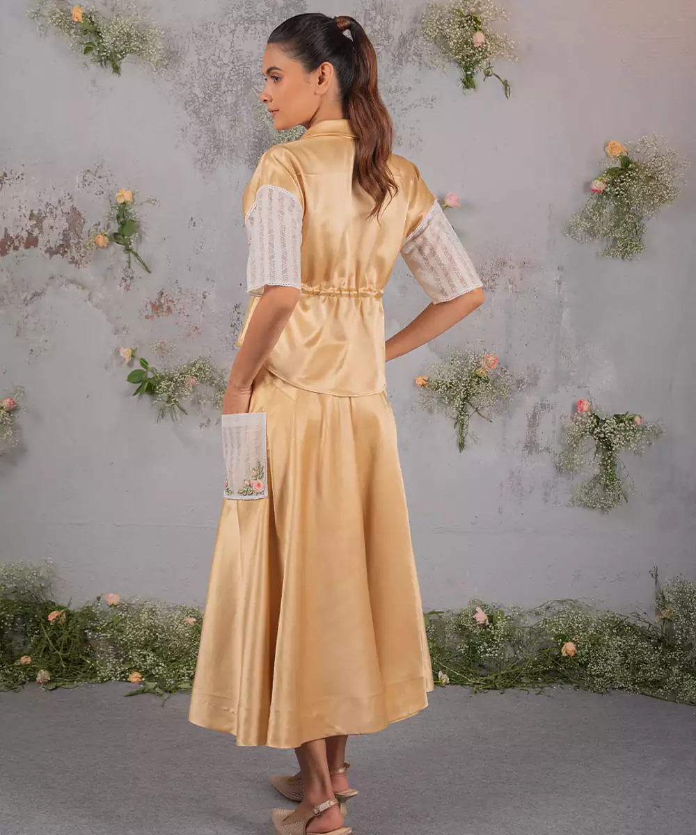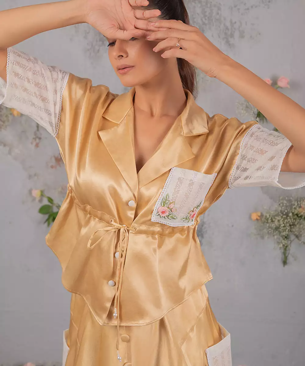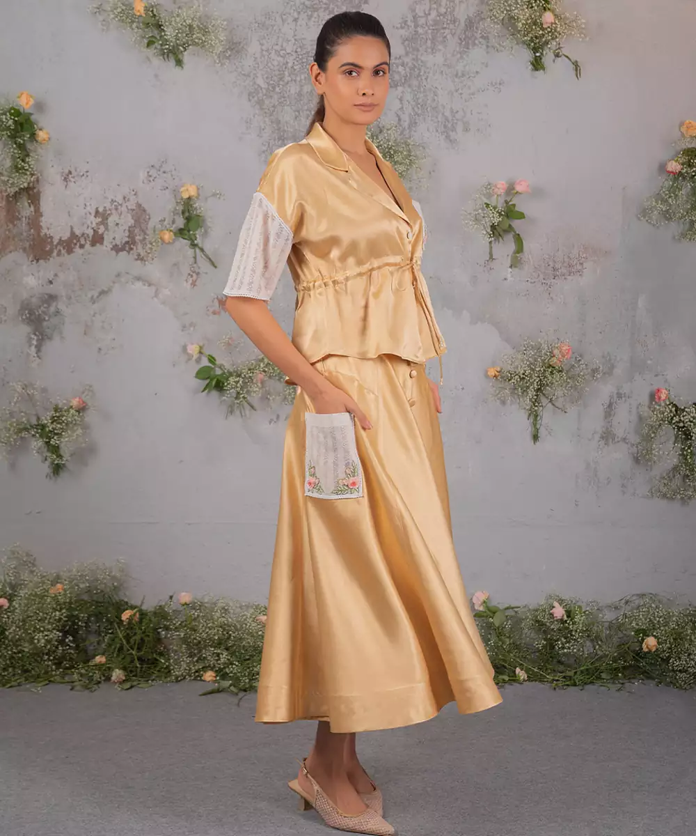 This Gold Embroidered Silk Co Ord Set Exudes Refined Elegance And Festive Charm. Crafted From Luxurious Silk Fabric, It Features Intricate Embroidery That Adds A Graceful, Sophisticated Touch. Perfect For Celebrations And Special Occasions, It Offers A Timeless Blend Of Comfort, Style, And Traditional Appeal.