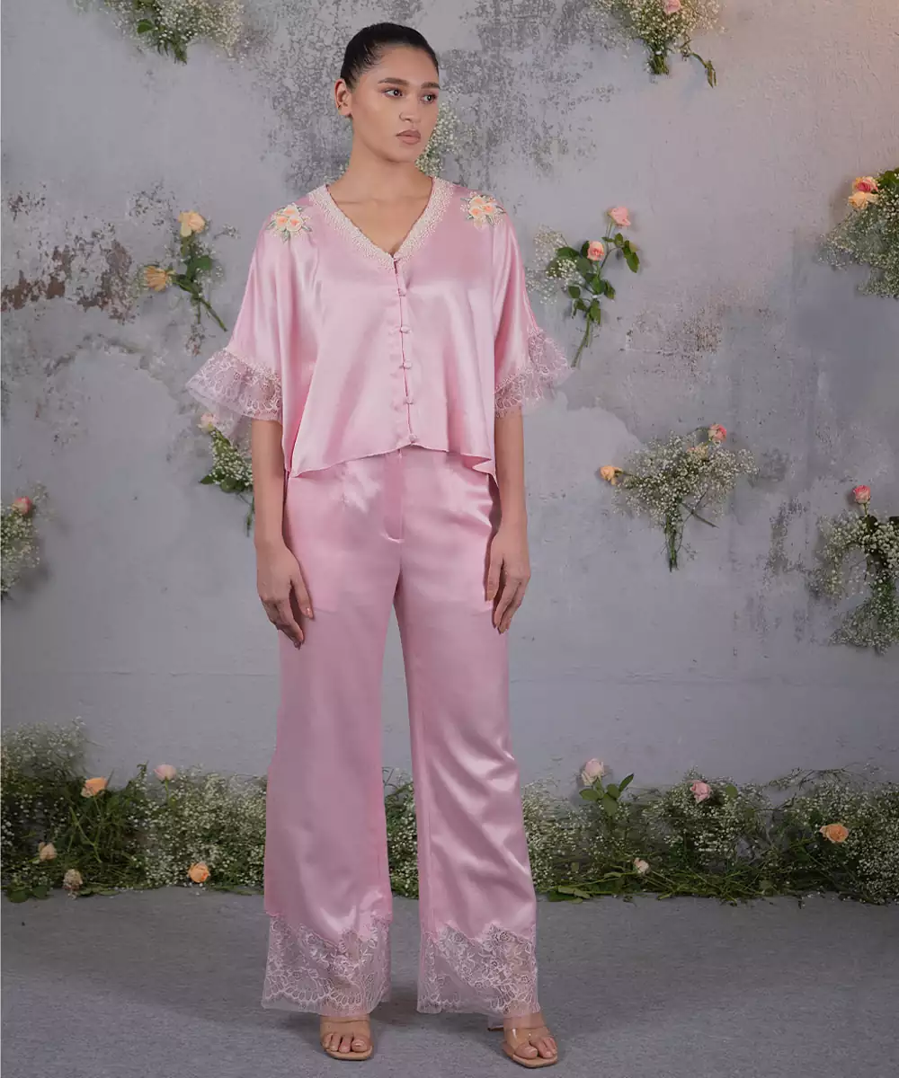 This Pink Embroidered Silk Co Ord Set Exudes Refined Elegance And Festive Charm. Crafted From Luxurious Silk Fabric, It Features Intricate Embroidery That Adds A Graceful, Sophisticated Touch. Perfect For Celebrations And Special Occasions, It Offers A Timeless Blend Of Comfort, Style, And Traditional Appeal.