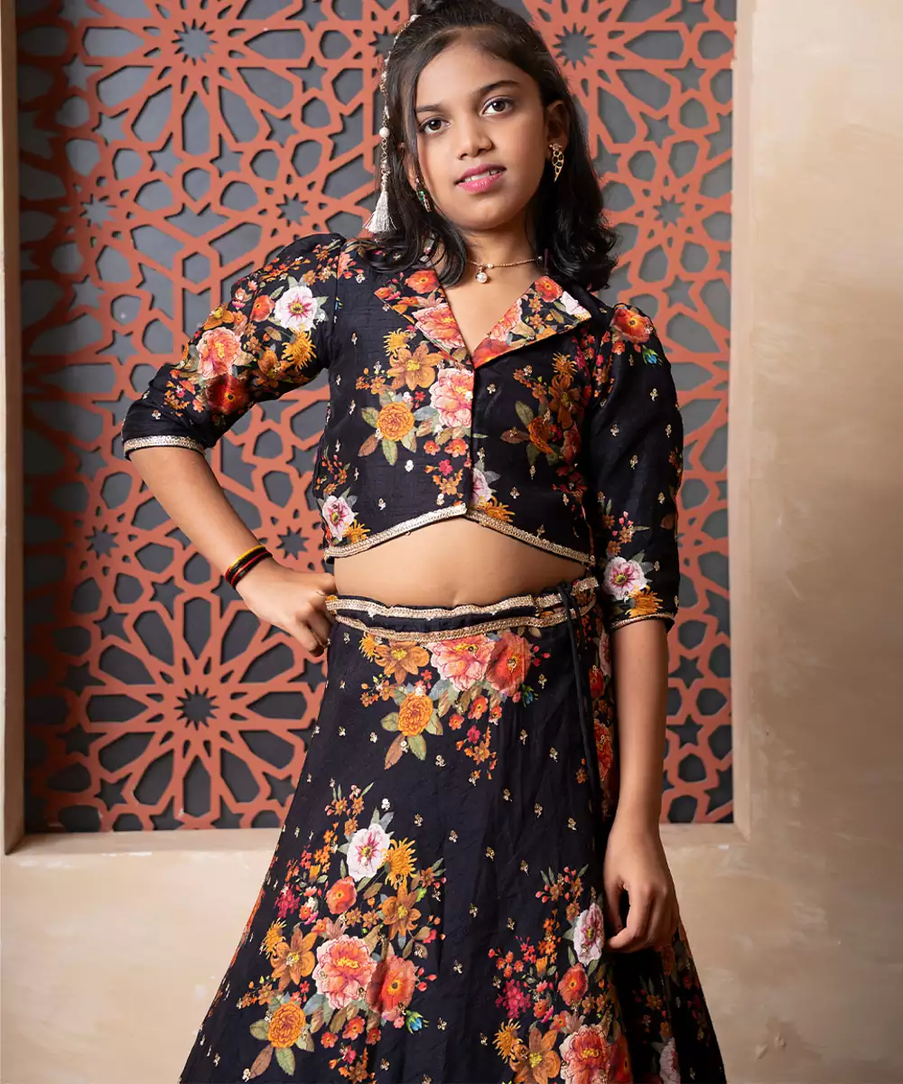 This Black Embroidered Silk Lehenga Set Radiates Vibrant Elegance And Festive Charm. Crafted From Luxurious Silk, It Features Intricate Multicolor Embroidery That Adds Richness And A Regal Touch. Perfect For Weddings And Grand Celebrations, It Offers A Graceful Silhouette, Luxurious Texture, And Timeless Ethnic Sophistication.