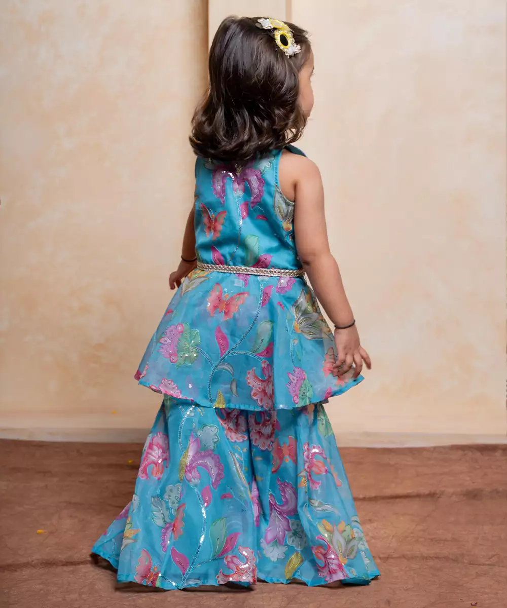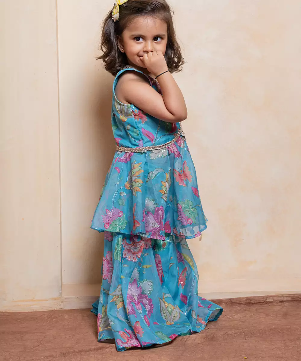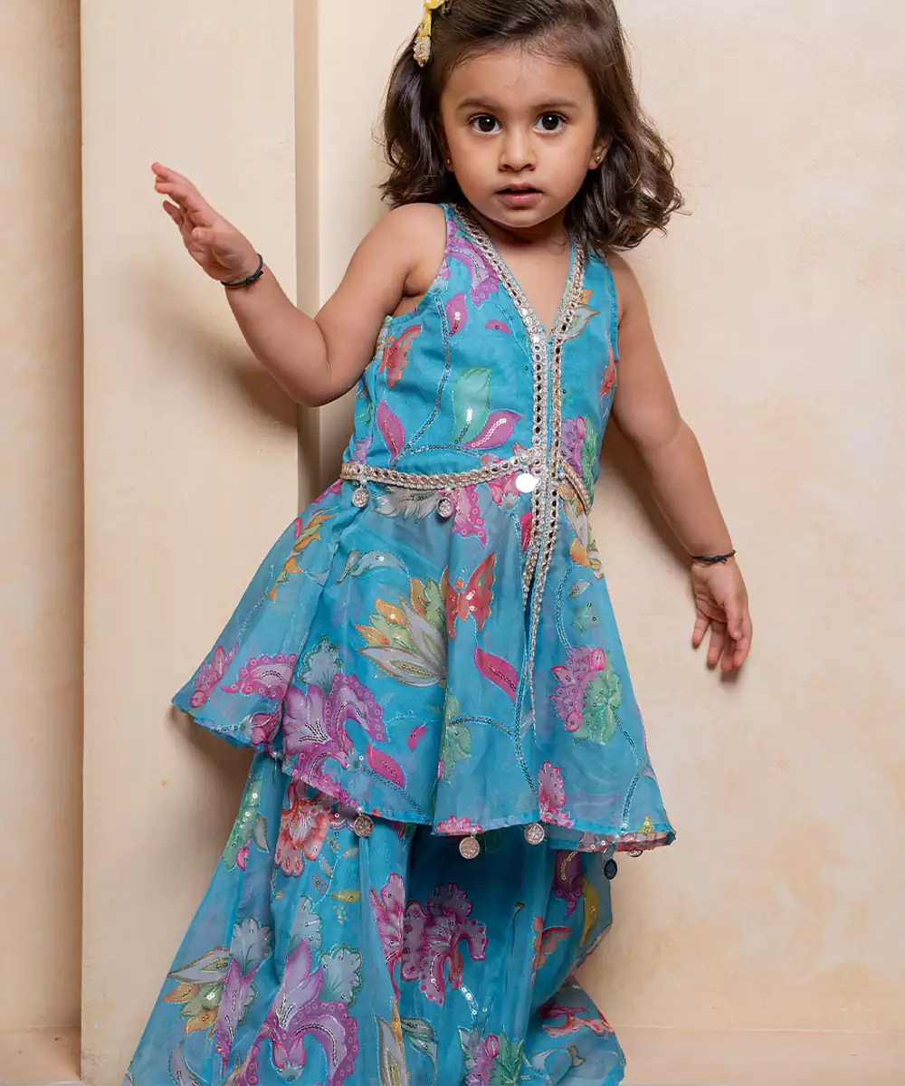 A Contemporary And Comfortable Choice, This Blue Printed Santoon Co Ord Set Features Matching Top And Bottom Pieces Made From Smooth, Slightly Lustrous Santoon Fabric. The Printed Design Adds Visual Interest, While The Coordinating Set Provides A Polished, Effortless Look For Both Casual And Semi Formal Wear