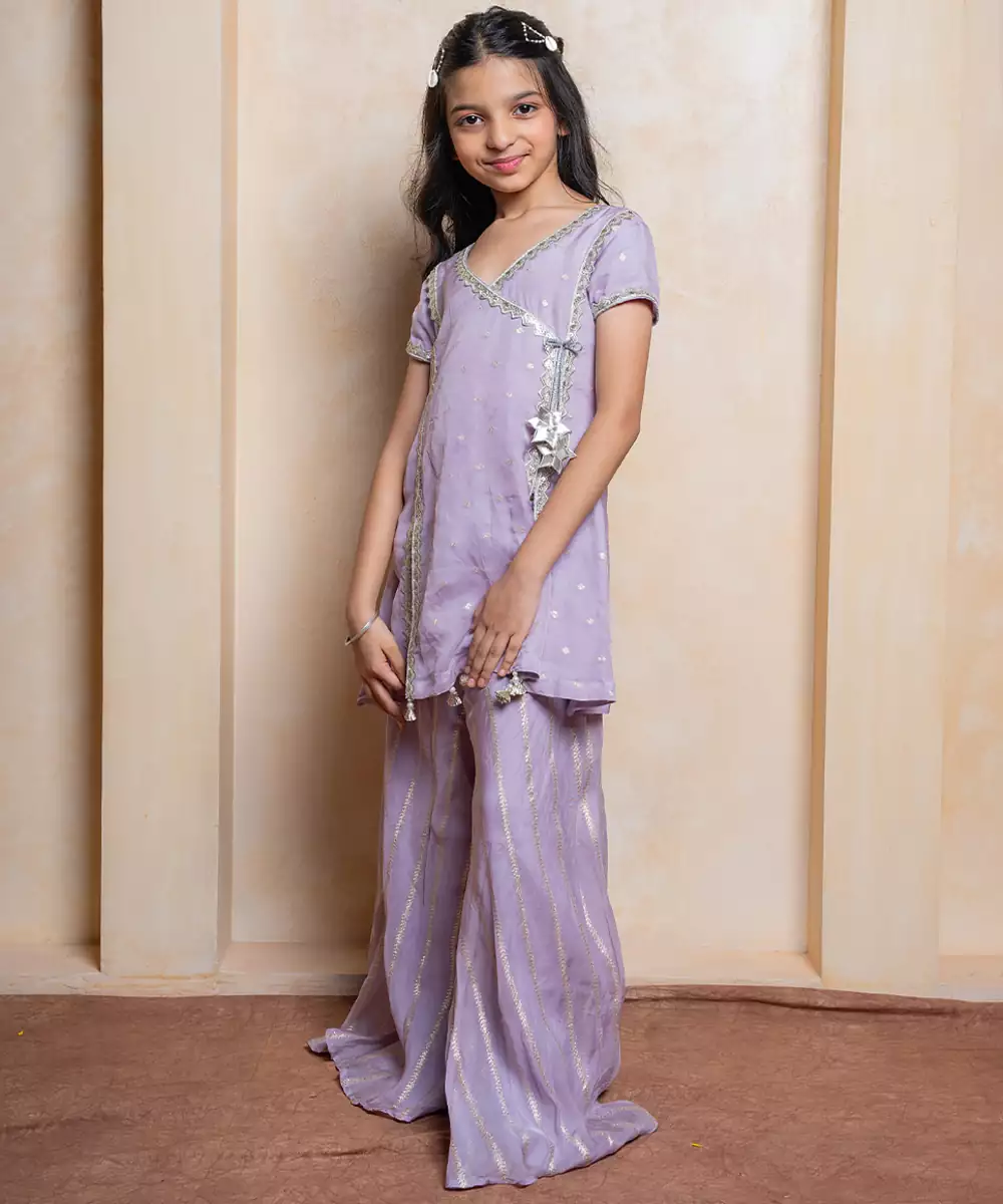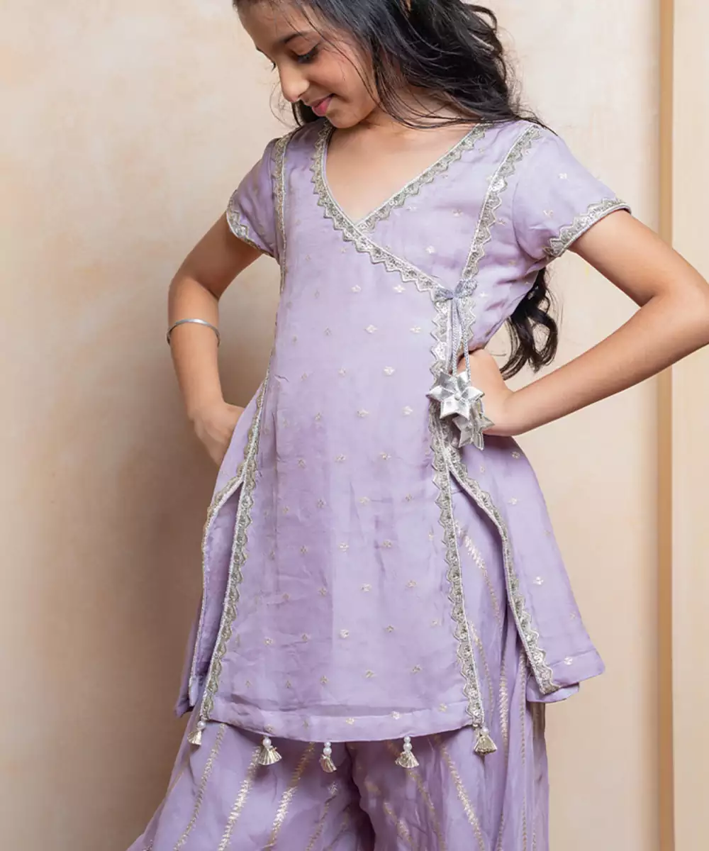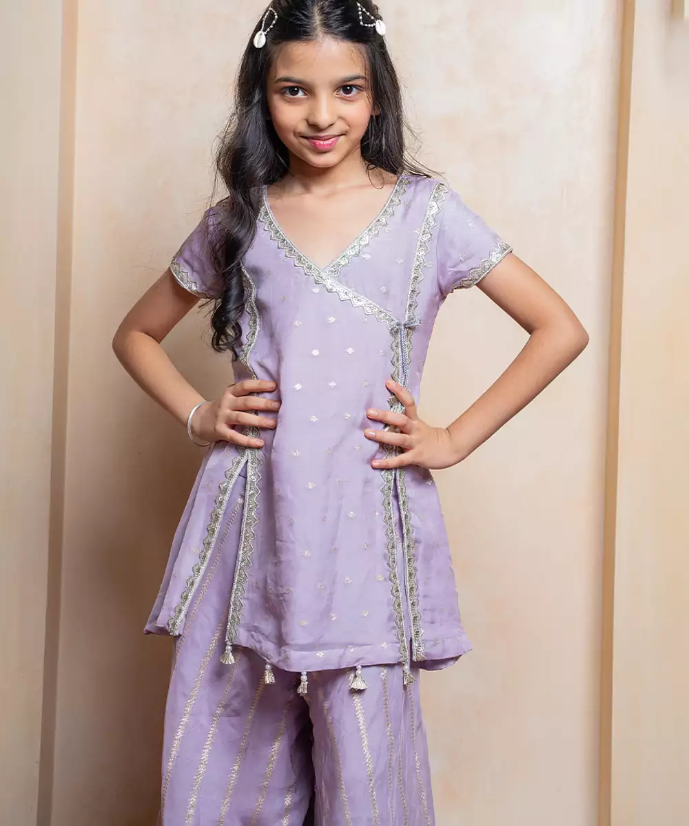 A Beautifully Delicate And Sophisticated Ensemble, This Lavender Organza Kurta Set Is Enhanced With Tasteful Embroidery. The Sheer, Crisp Texture Of The Organza Fabric Gives The Kurta A Light, Structured, And Ethereal Drape, While The Embroidery Adds Intricate Detail And A Refined, Traditional Finish. This Matching Set Is A Graceful Choice For Daytime Or Semi Formal Events.