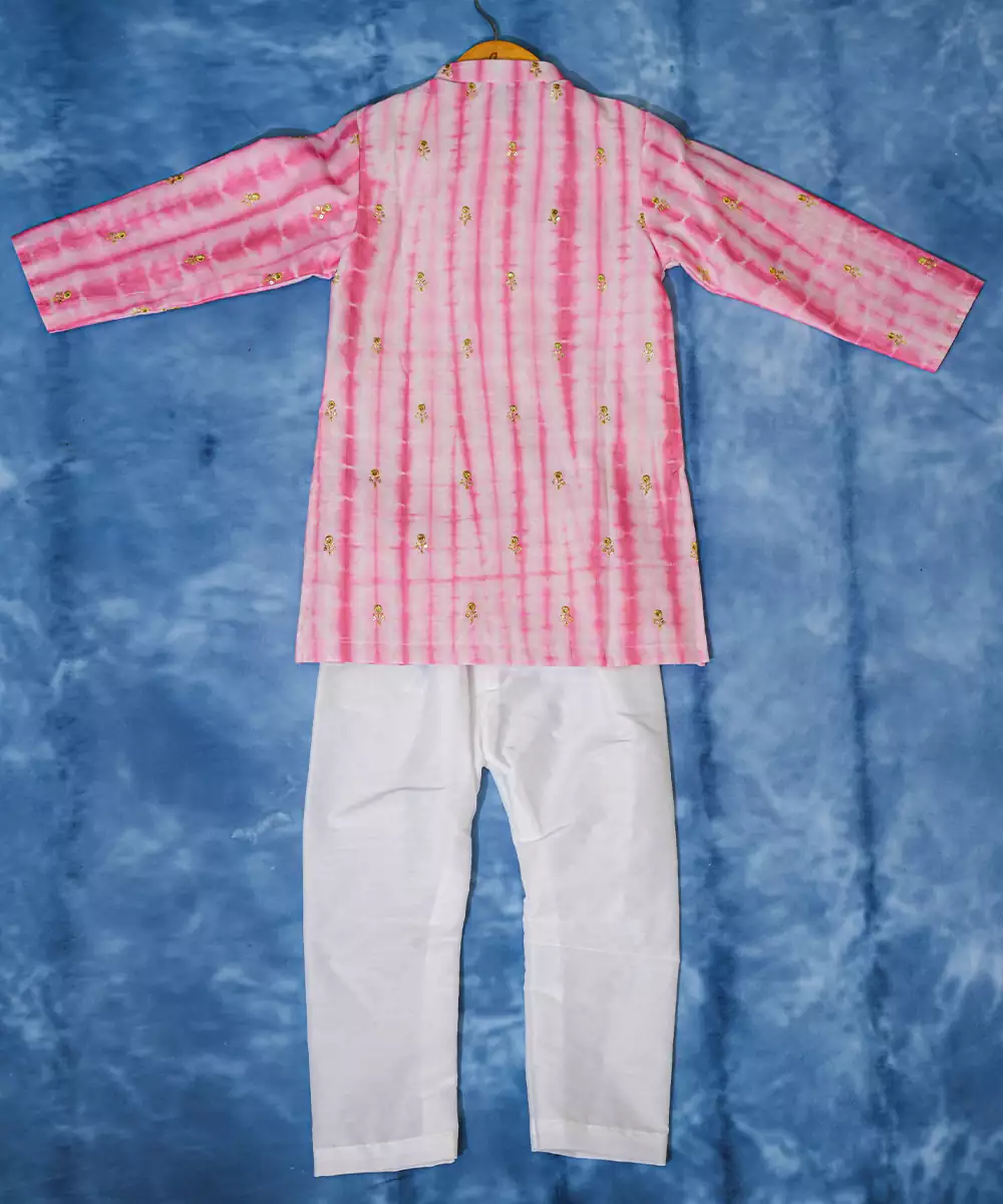 This Pink Embroidered Chanderi Silk Kurta Pyjama Set Radiates Festive Elegance And Refined Charm. Crafted From Lightweight, Lustrous Chanderi Silk, It Features Intricate Embroidery That Adds A Traditional, Sophisticated Touch. Perfect For Celebrations And Special Occasions, It Offers Comfort, A Graceful Silhouette, And Timeless Ethnic Appeal.