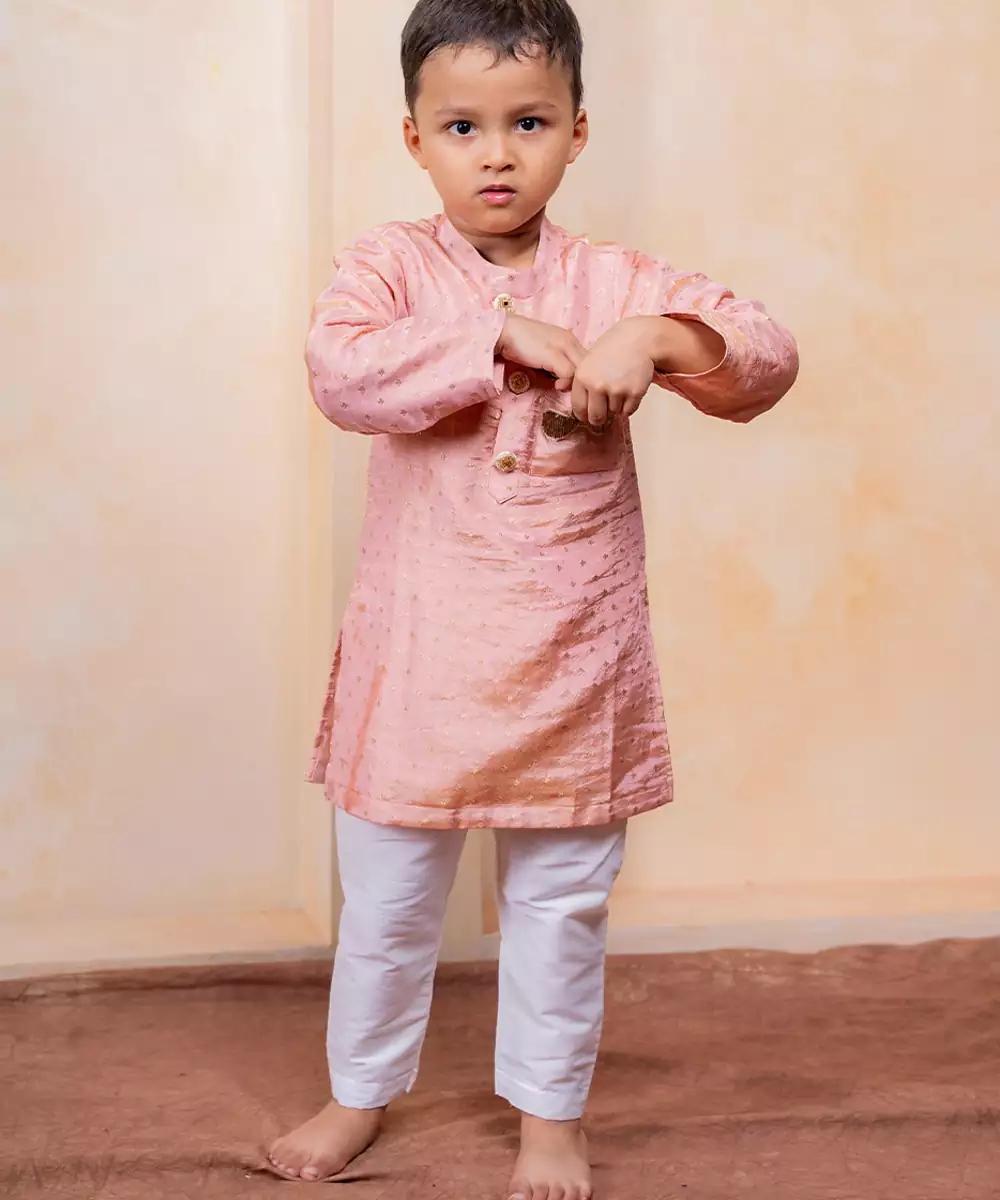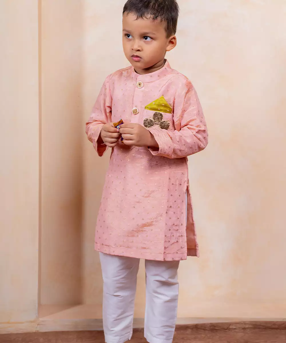This Pink Embroidered Silk Kurta Pyjama Set Blends Festive Elegance With Refined Tradition. Crafted From Luxurious Silk, It Features Intricate Embroidery That Adds A Rich, Graceful Touch. Perfect For Celebrations And Special Occasions, It Offers A Comfortable Fit, Polished Look, And Timeless Ethnic Charm.