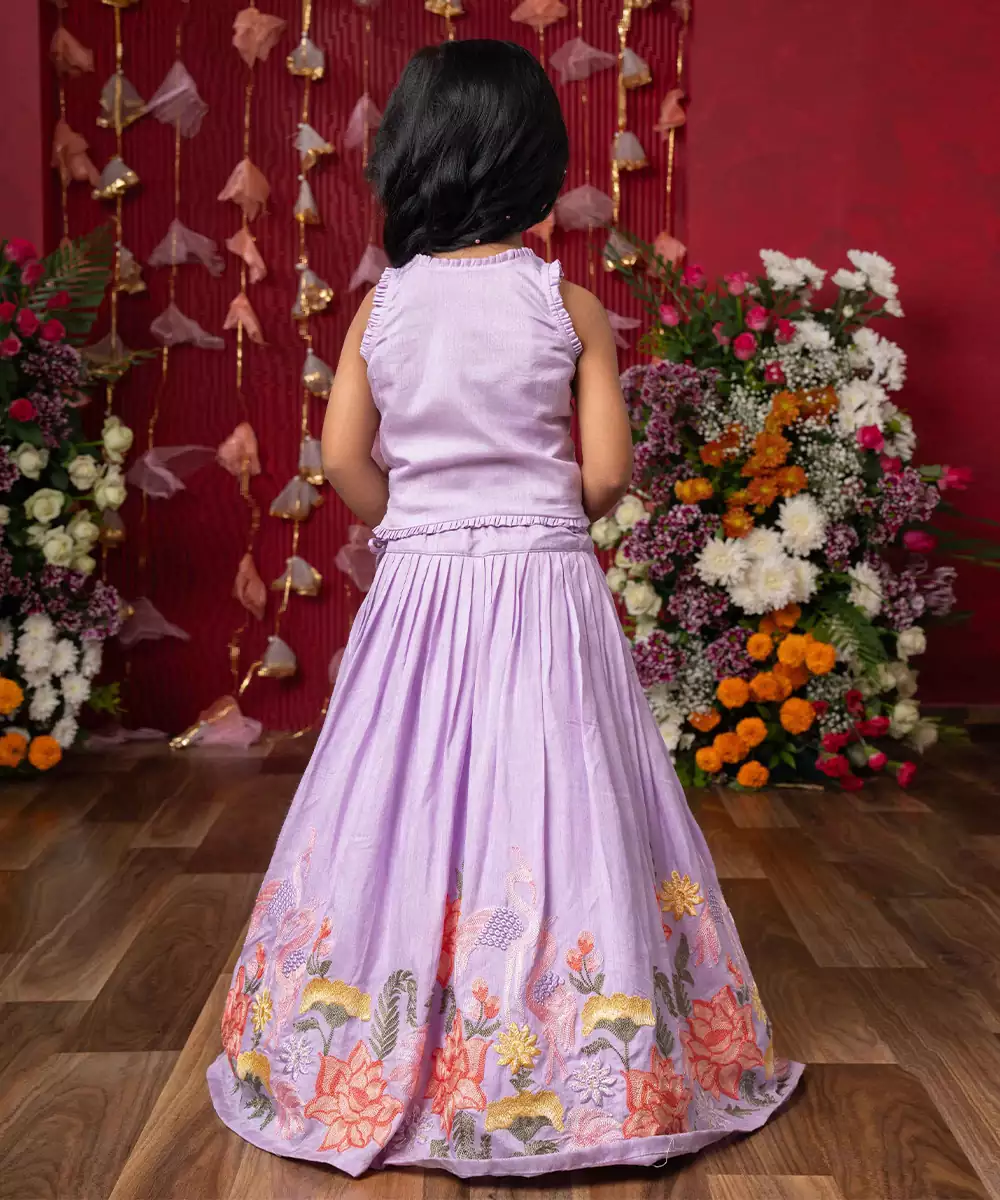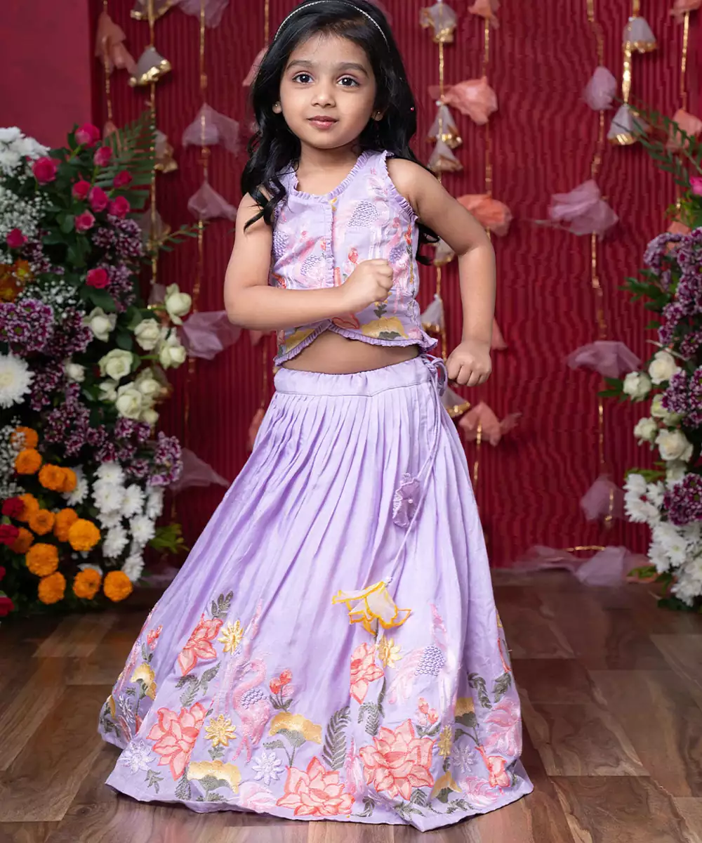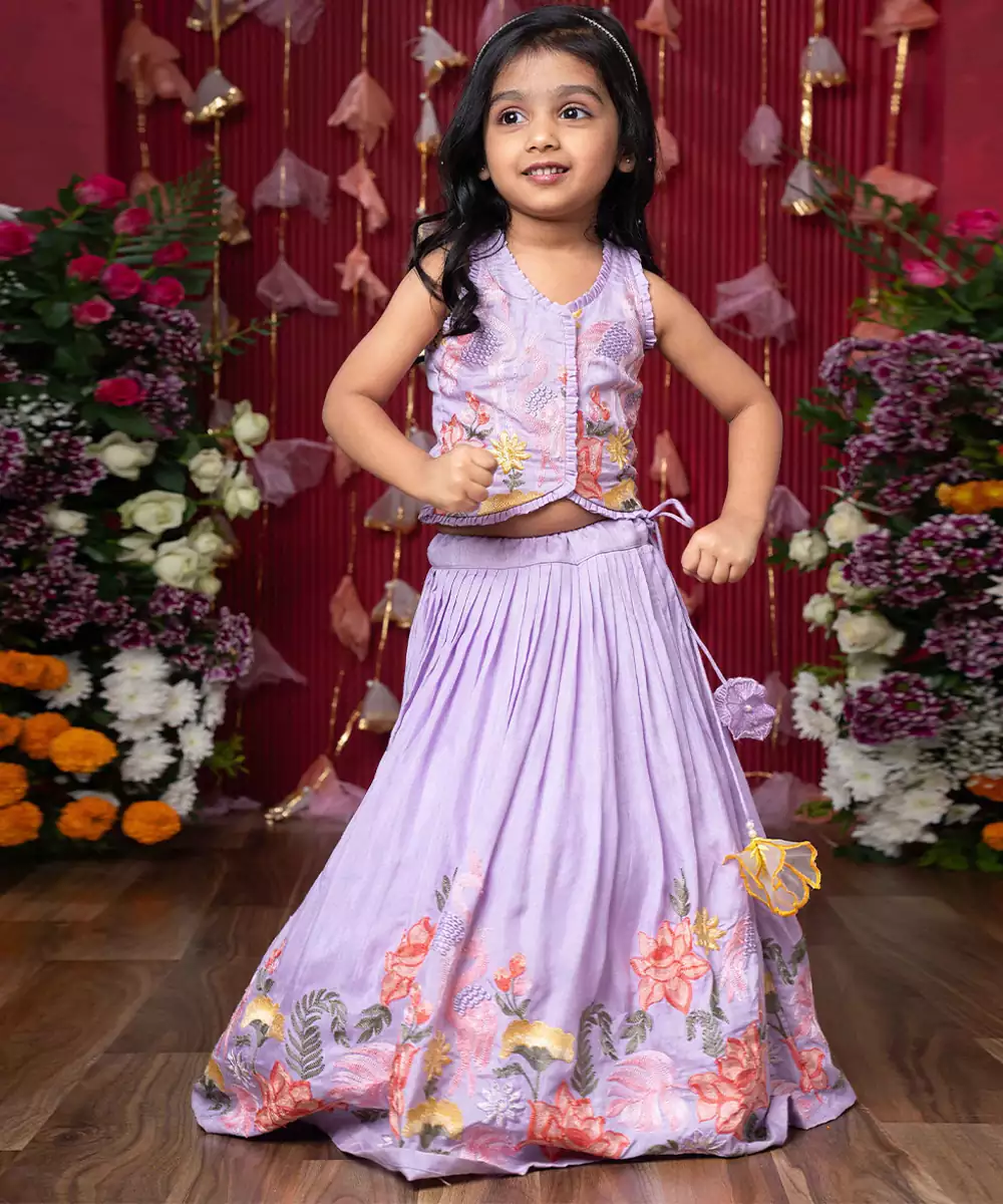 This Purple Embroidered Silk Lehenga Set Radiates Royal Elegance And Festive Charm. Crafted From Luxurious Silk, It Features Intricate Embroidery That Adds A Rich, Refined Touch. Perfect For Weddings And Grand Celebrations, It Offers A Graceful Silhouette, Luxurious Feel, And Timeless Ethnic Sophistication.