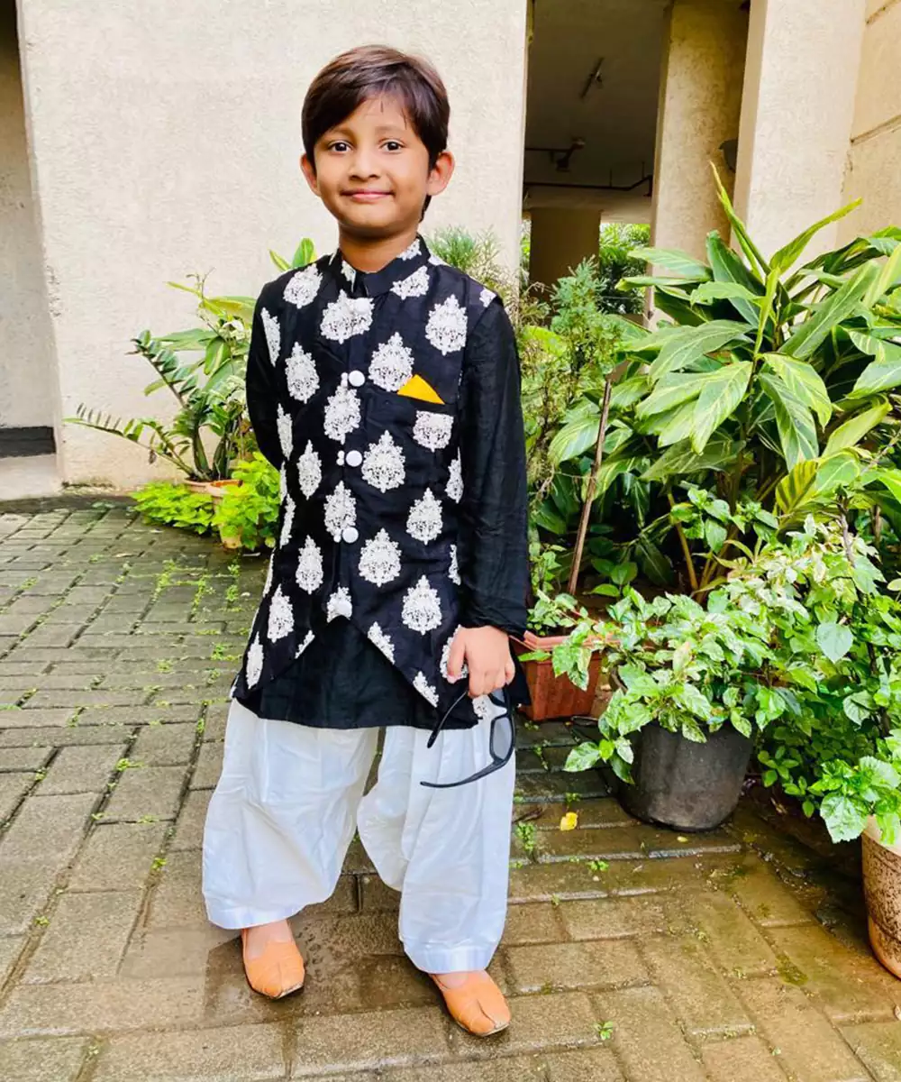 Oxidised Gold Garara Set With Velvet Dupatta Shawl