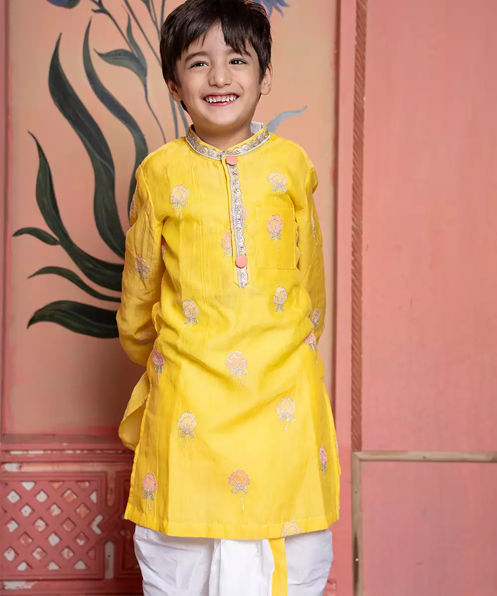 This Yellow Embroidered Chanderi Kurta Pyjama Set Radiates Festive Elegance And Refined Charm. Crafted From Lightweight, Lustrous Chanderi Fabric, It Features Intricate Embroidery That Adds A Graceful, Traditional Touch. Perfect For Celebrations And Special Occasions, It Offers Comfort, Sophistication, And Timeless Ethnic Appeal.