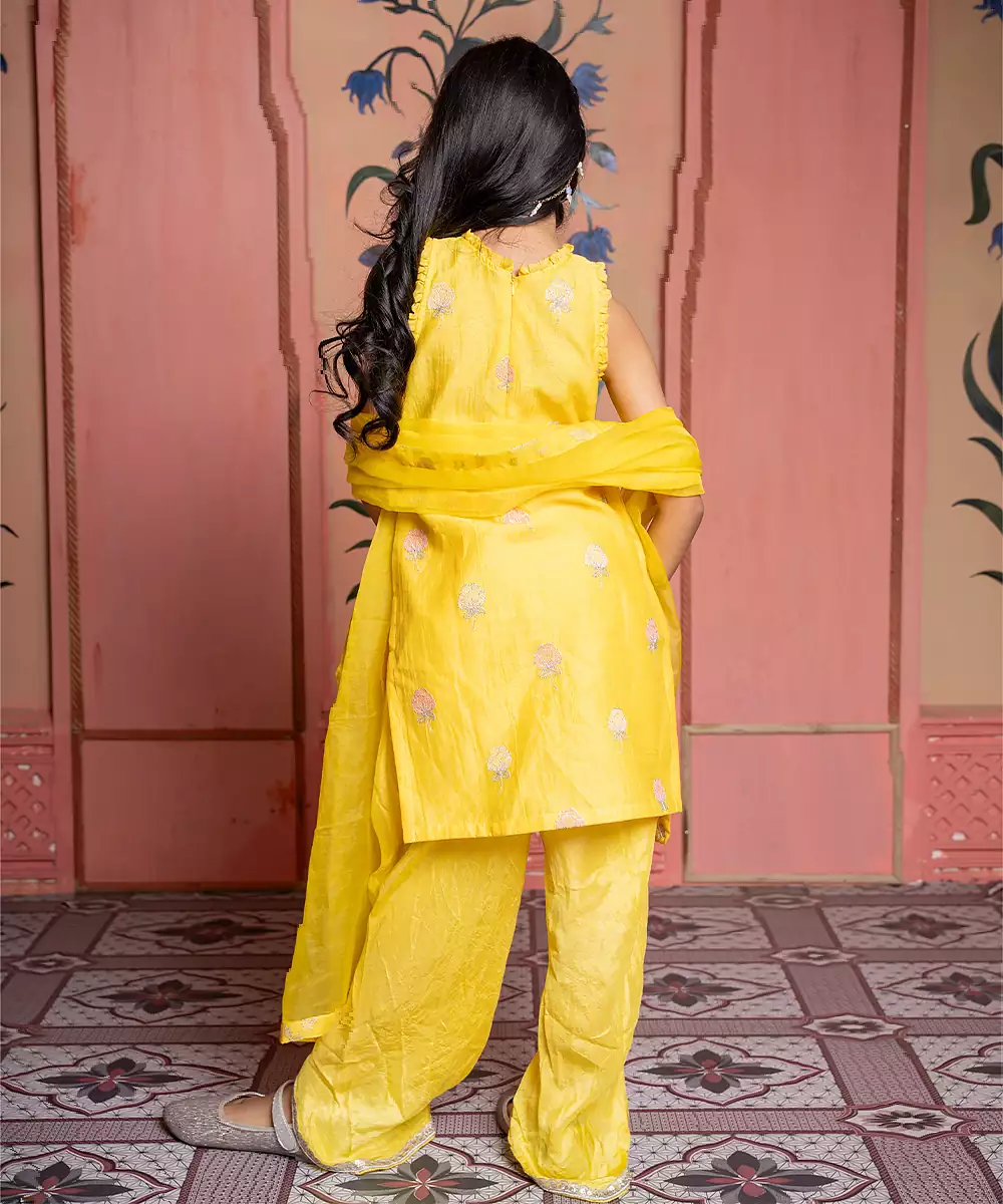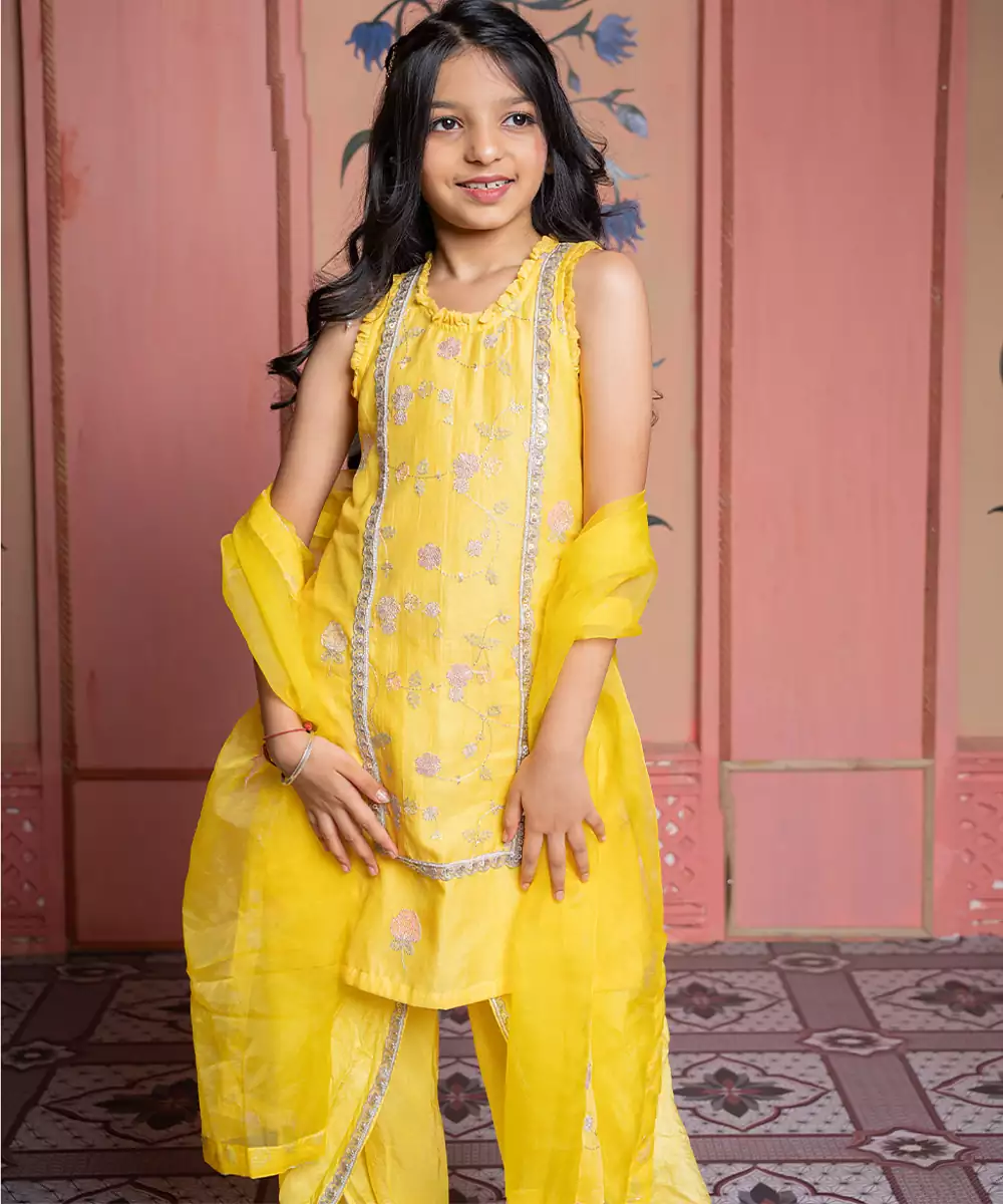 This Yellow Embroidered Chanderi Kurta Set Glows With Festive Elegance And Graceful Charm. Crafted From Lightweight, Lustrous Chanderi Fabric, It Features Intricate Embroidery That Adds A Refined Touch. Perfect For Celebrations And Special Occasions, It Offers Comfort, A Flattering Silhouette, And Timeless Ethnic Appeal.