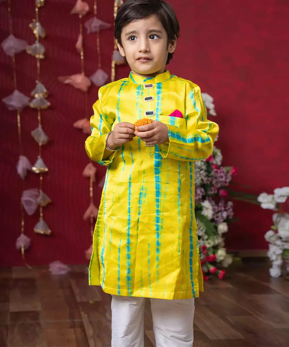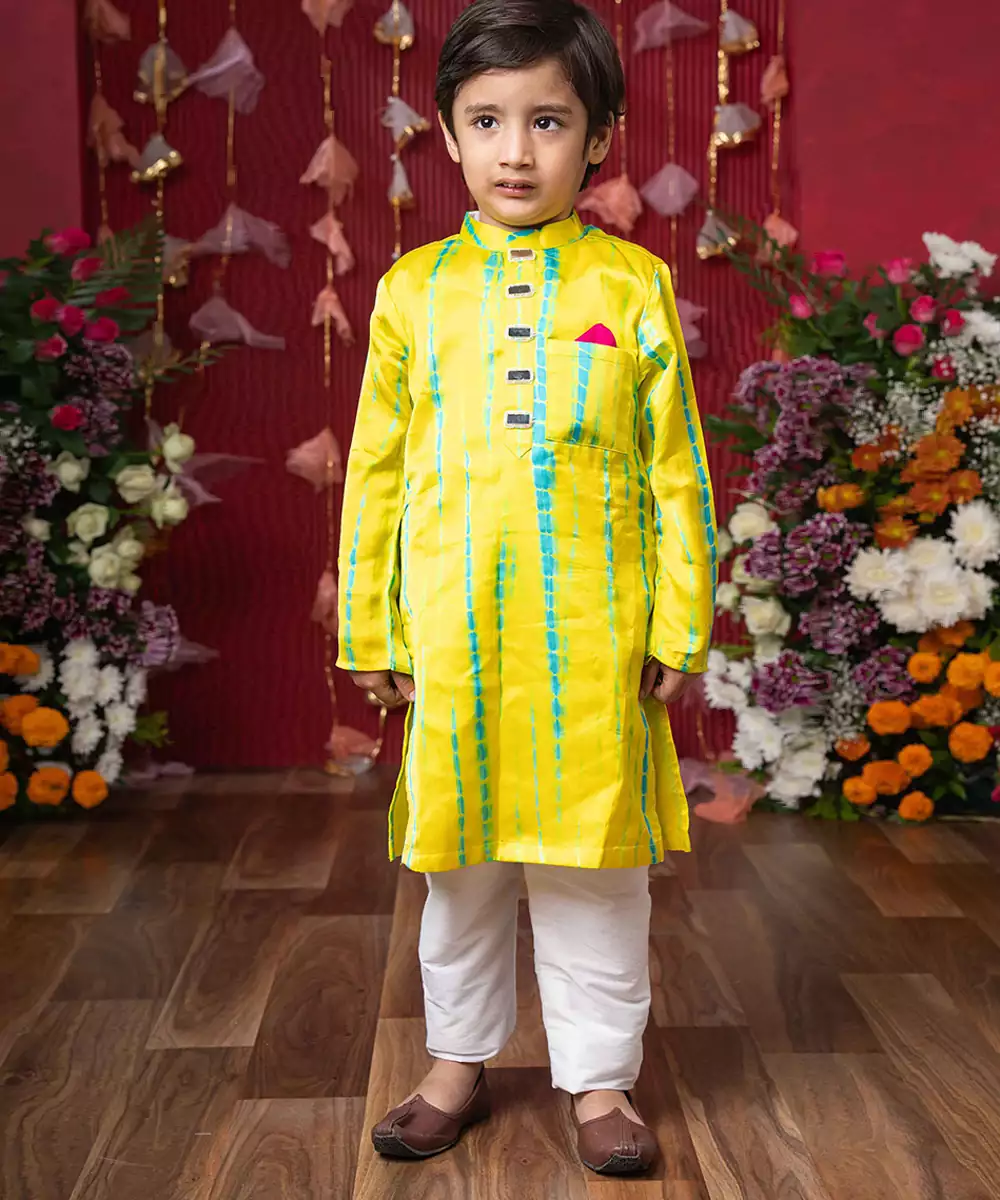 This Yellow Embroidered Satin Kurta Pyjama Set Exudes Cheerful Elegance And Festive Charm. Crafted From Smooth, Lustrous Satin, It Features Intricate Embroidery That Adds A Refined, Traditional Touch. Perfect For Weddings And Special Occasions, It Offers A Comfortable Fit, Polished Look, And Timeless Ethnic Appeal.